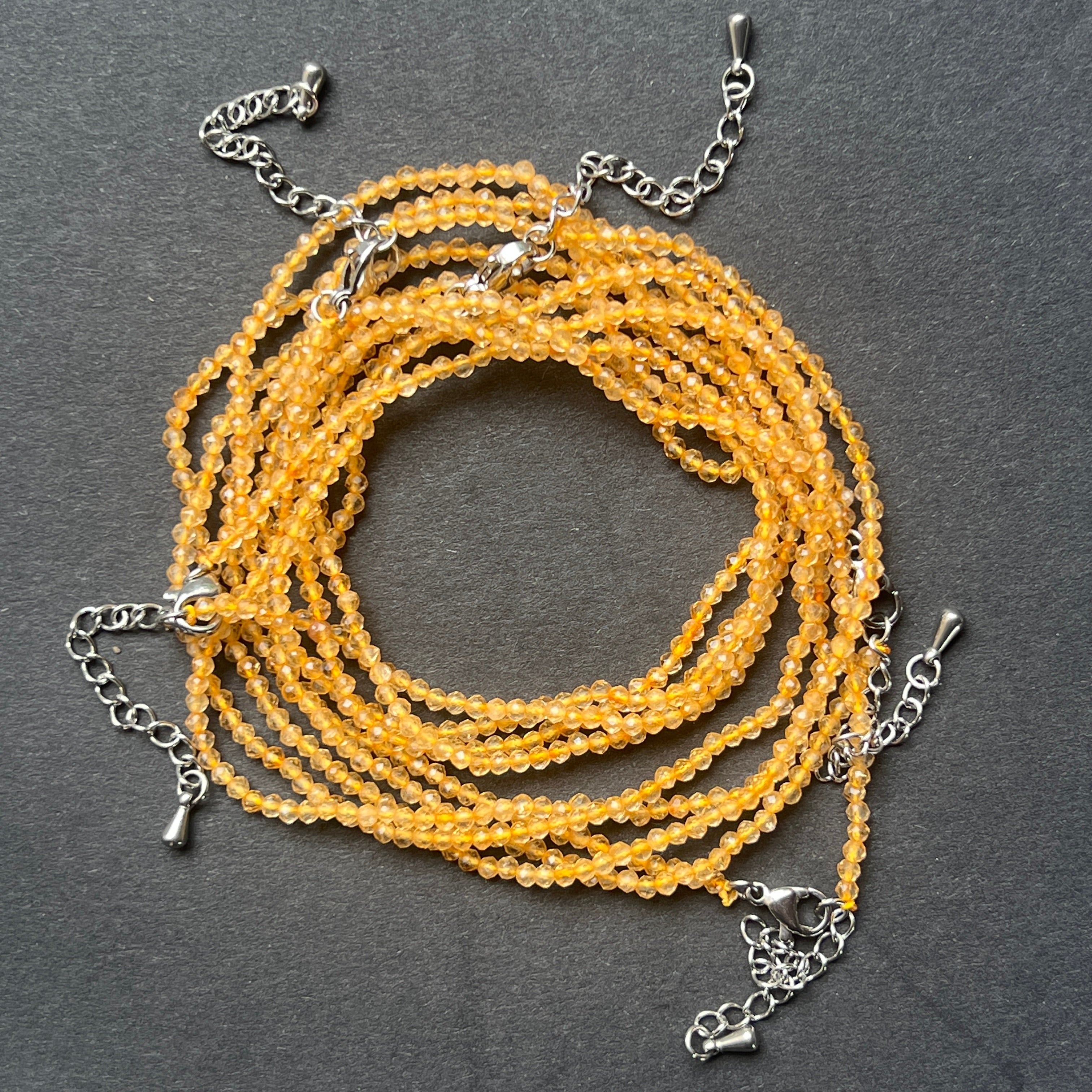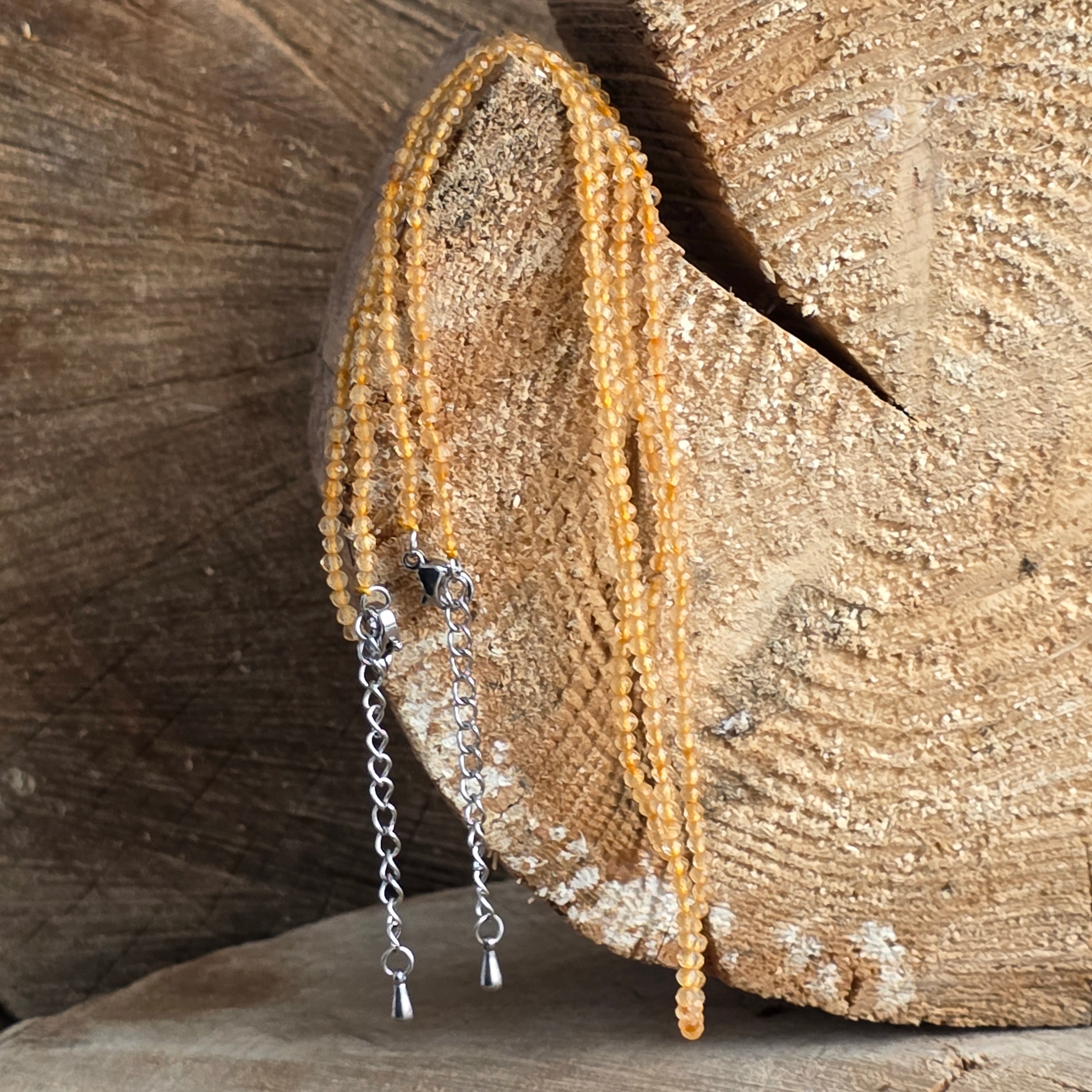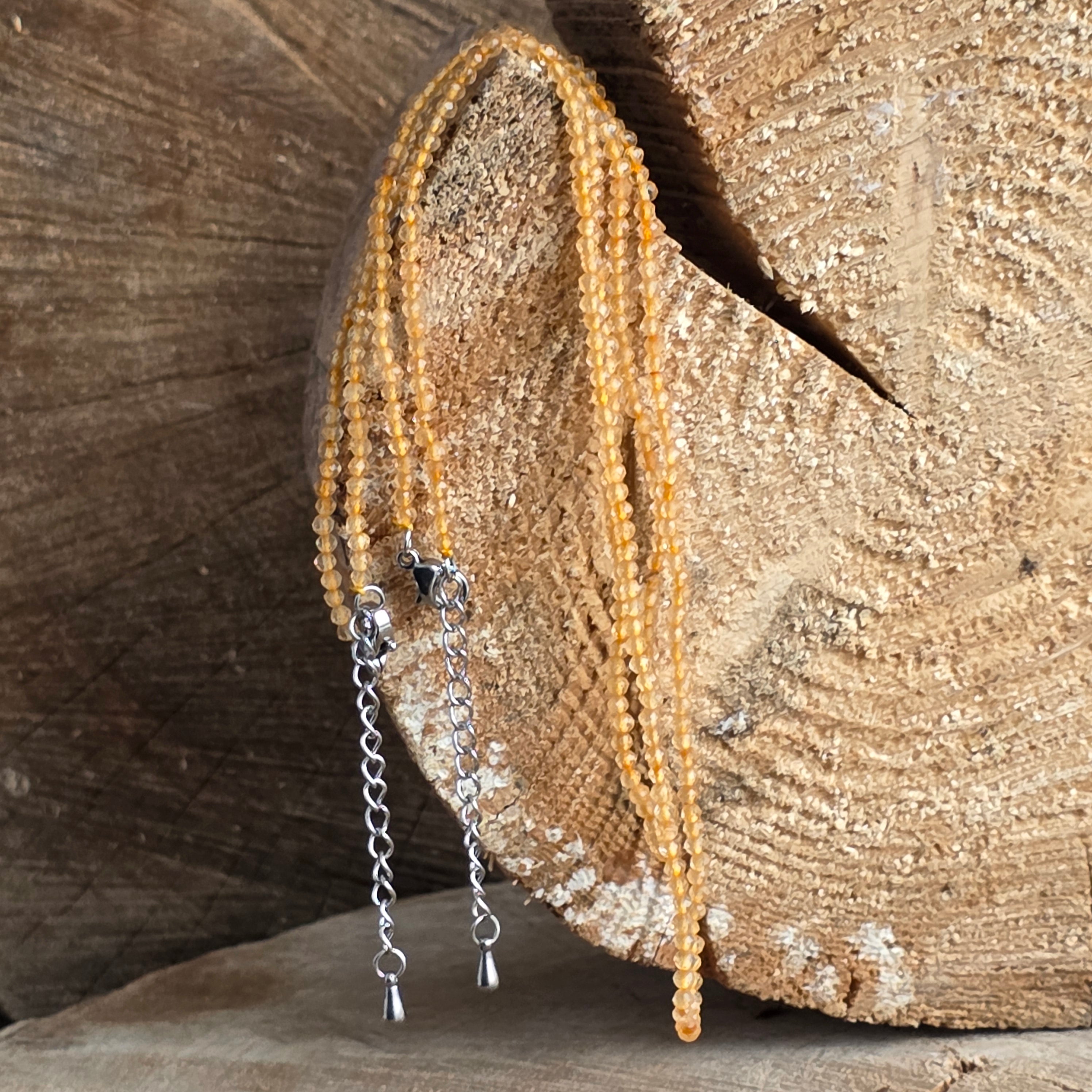 Колие с цитрин, топчета 2 мм, размер: 38 + 5 см (удължаване на верижката)