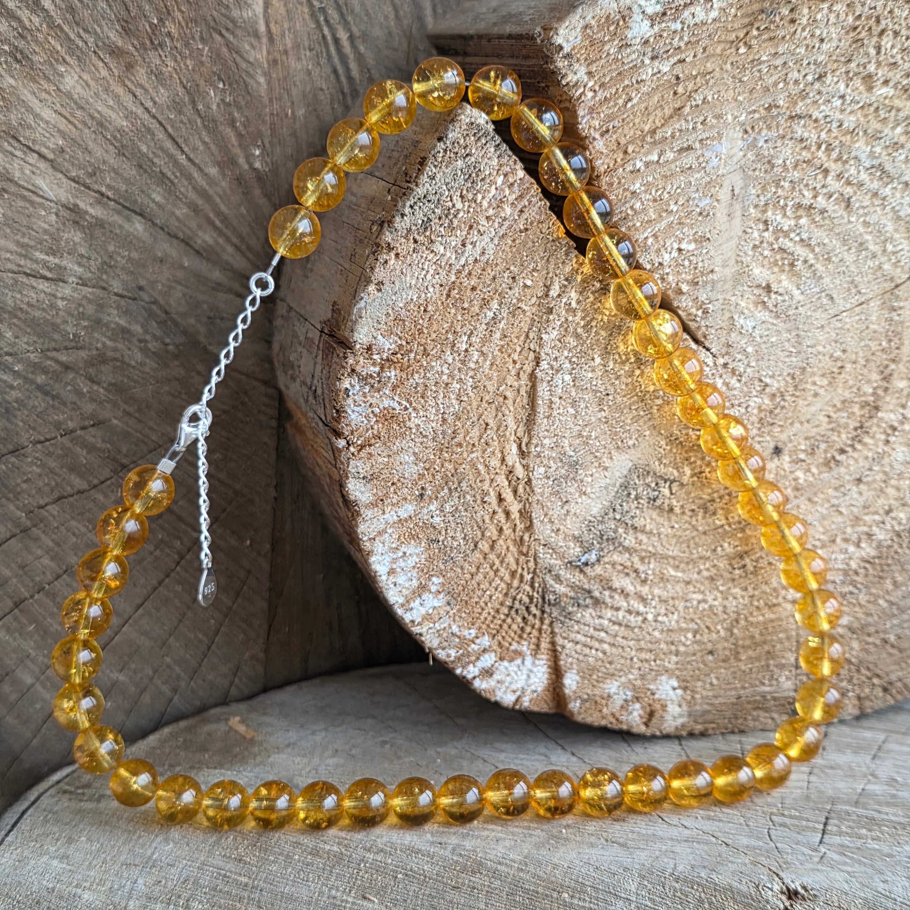 Колие, което улавя светлината - просто. Изработено от естествен цитрин, това колие излъчва топлина, радост и яснота. Не просто бижу, а постоянно напомняне за оптимизъм и вътрешна сила.