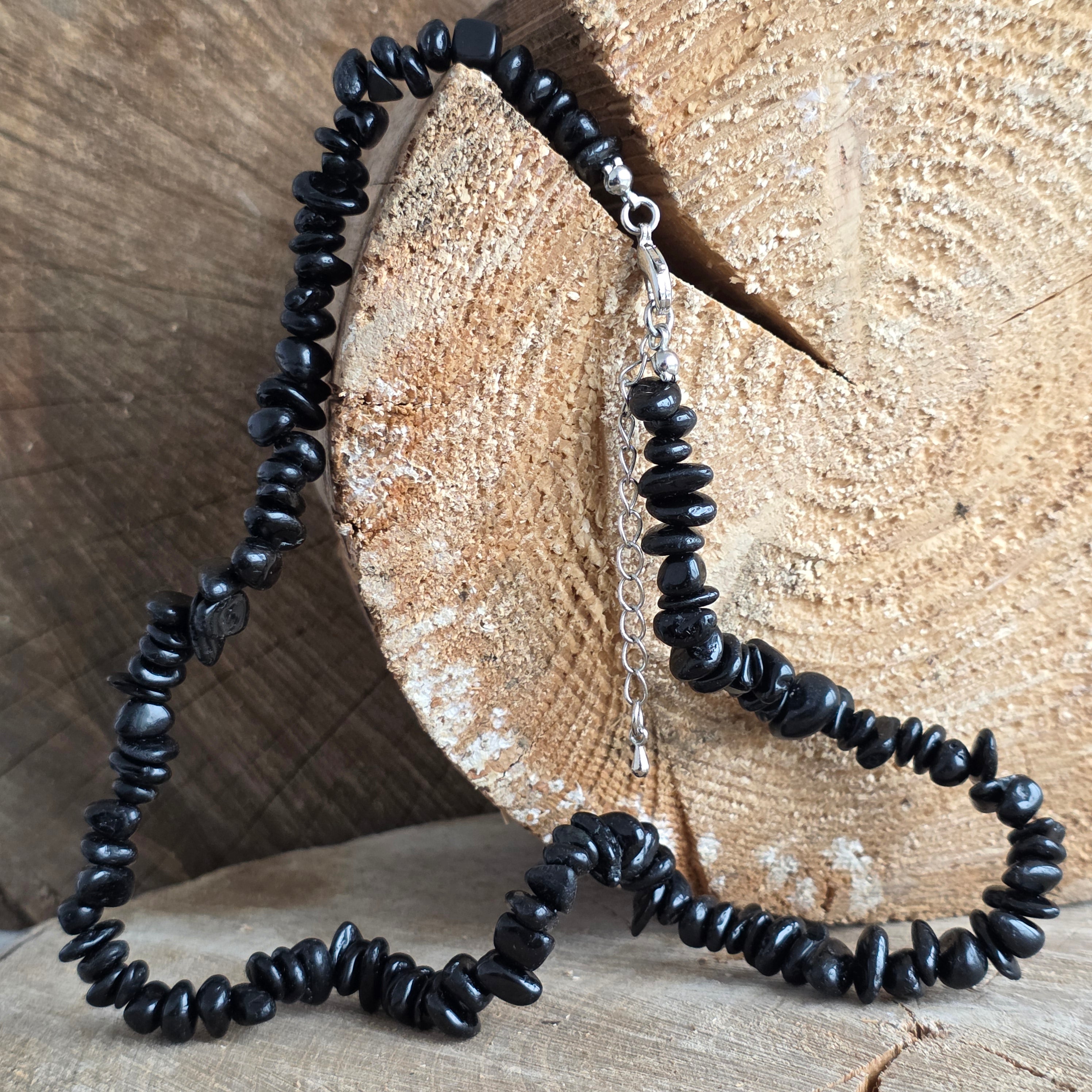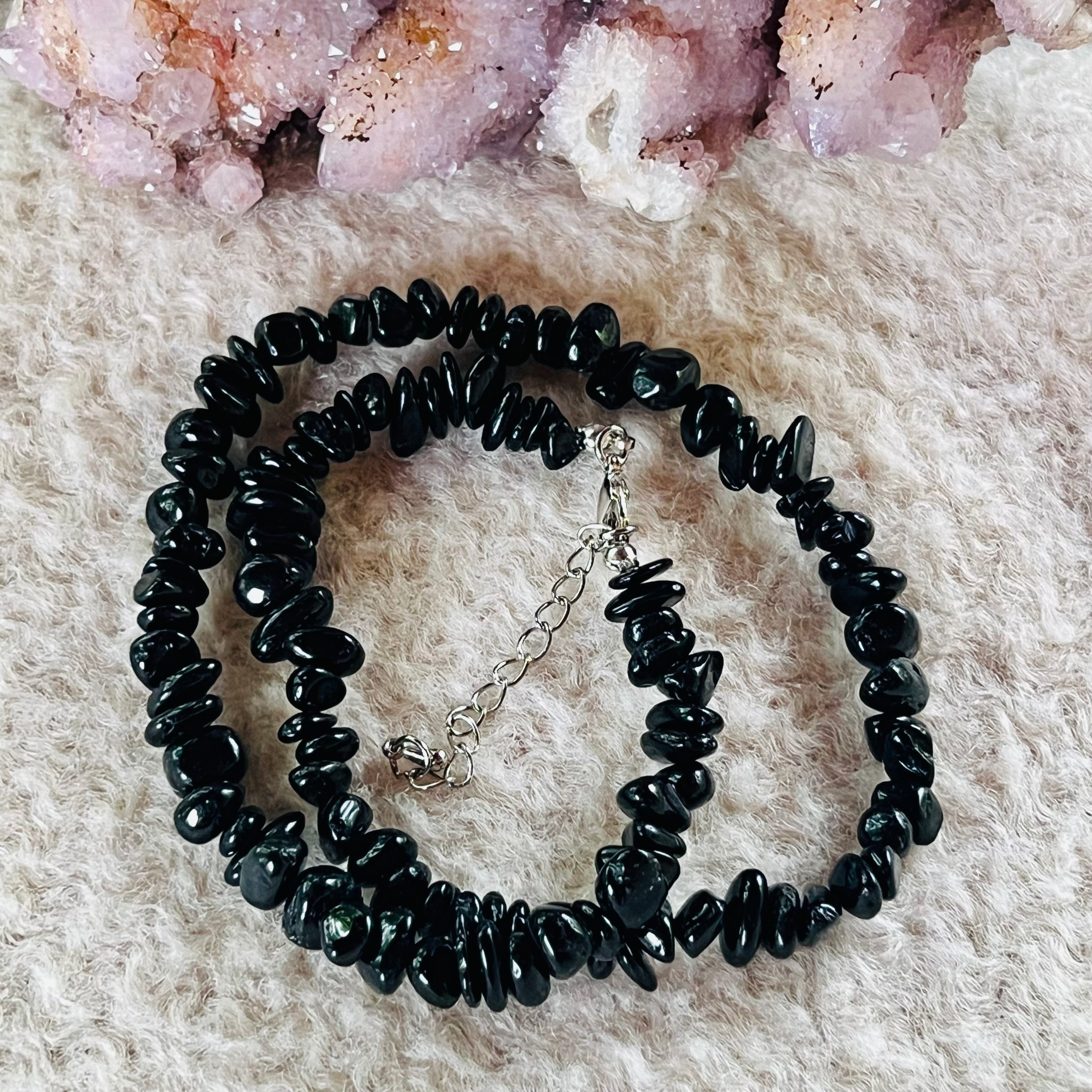 Колие с черен турмалин на чипсове, приблизителна дължина 45 см