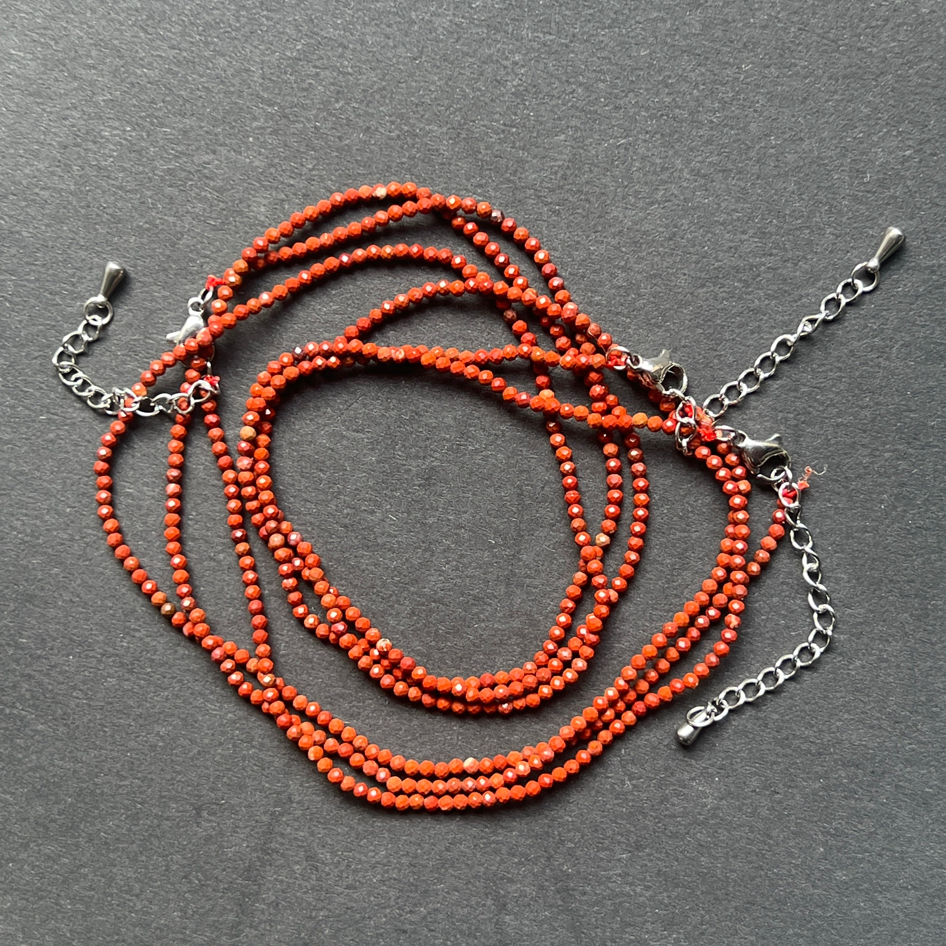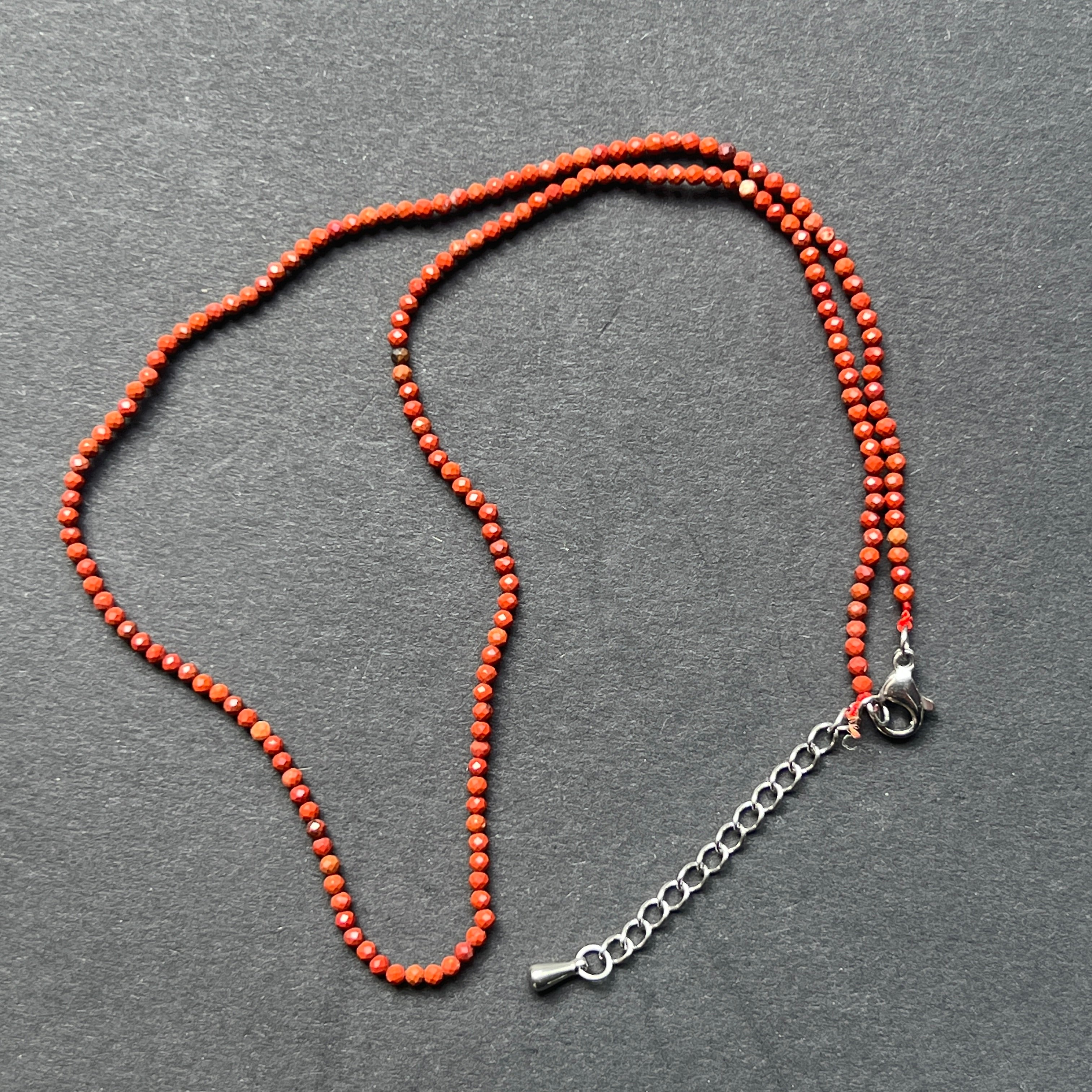 Колие Червен Яспис, мъниста 2 мм, размер: 38 + 5 см (удължителна верижка)