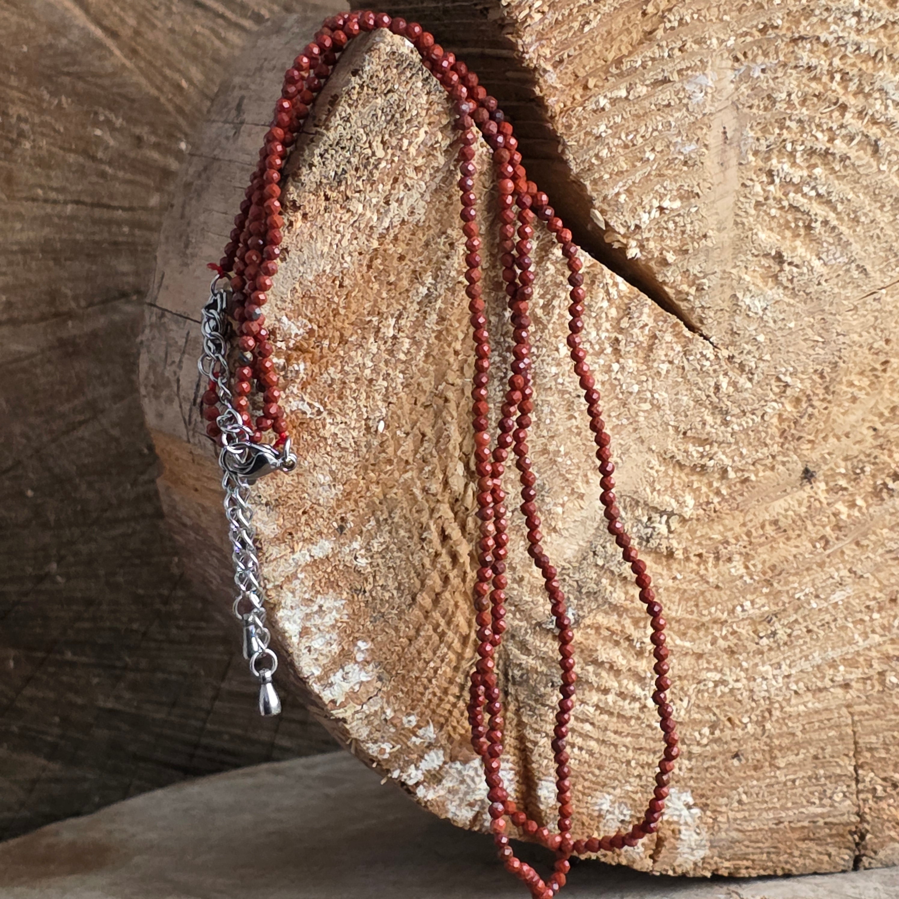 Колие Червен Яспис, мъниста 2 мм