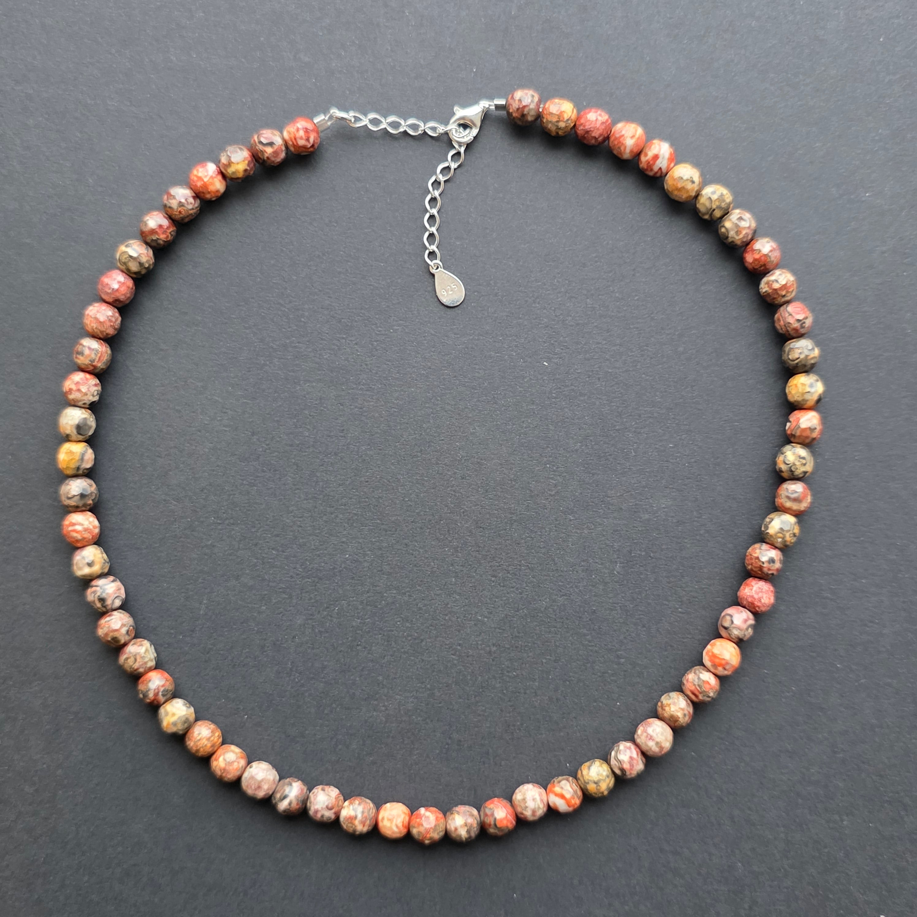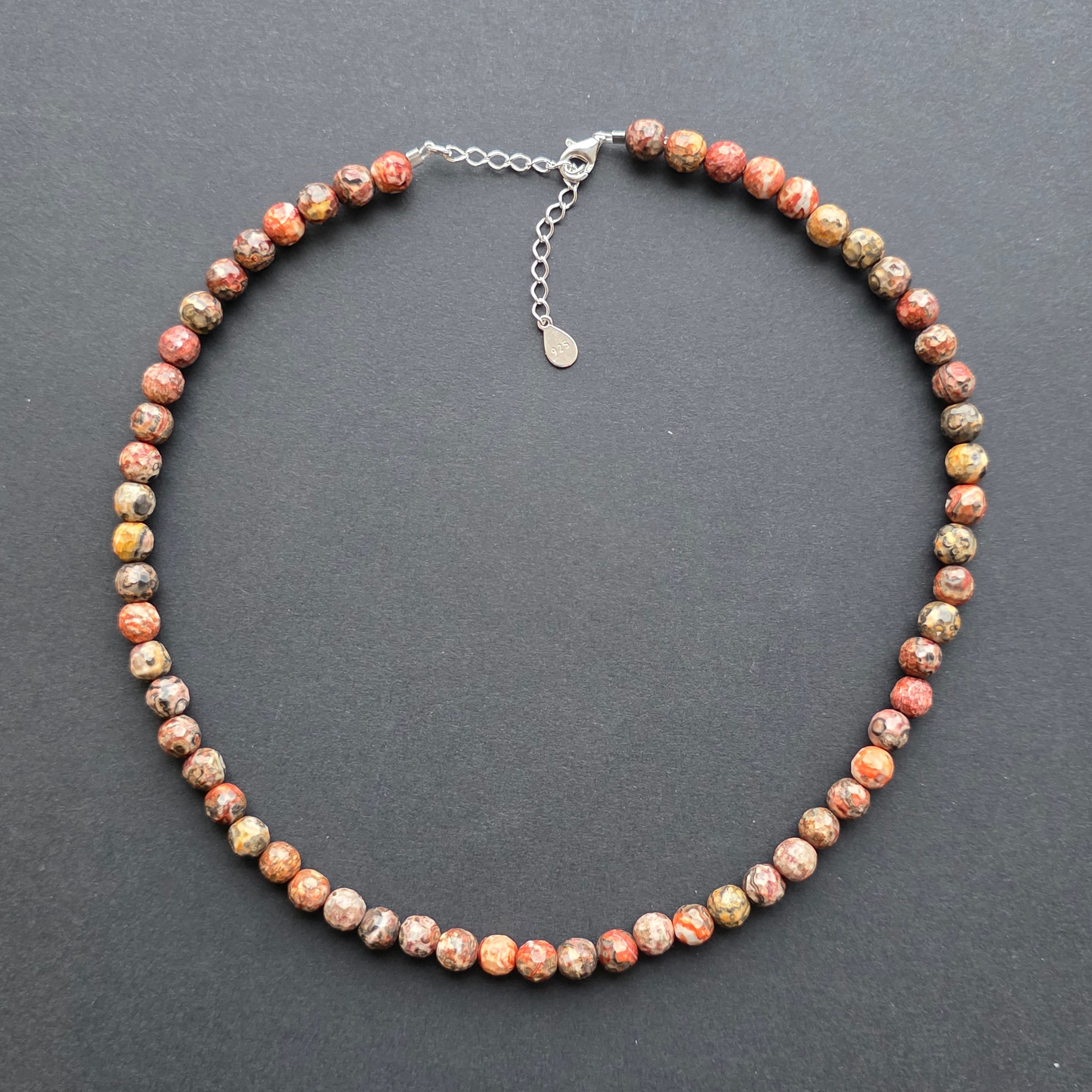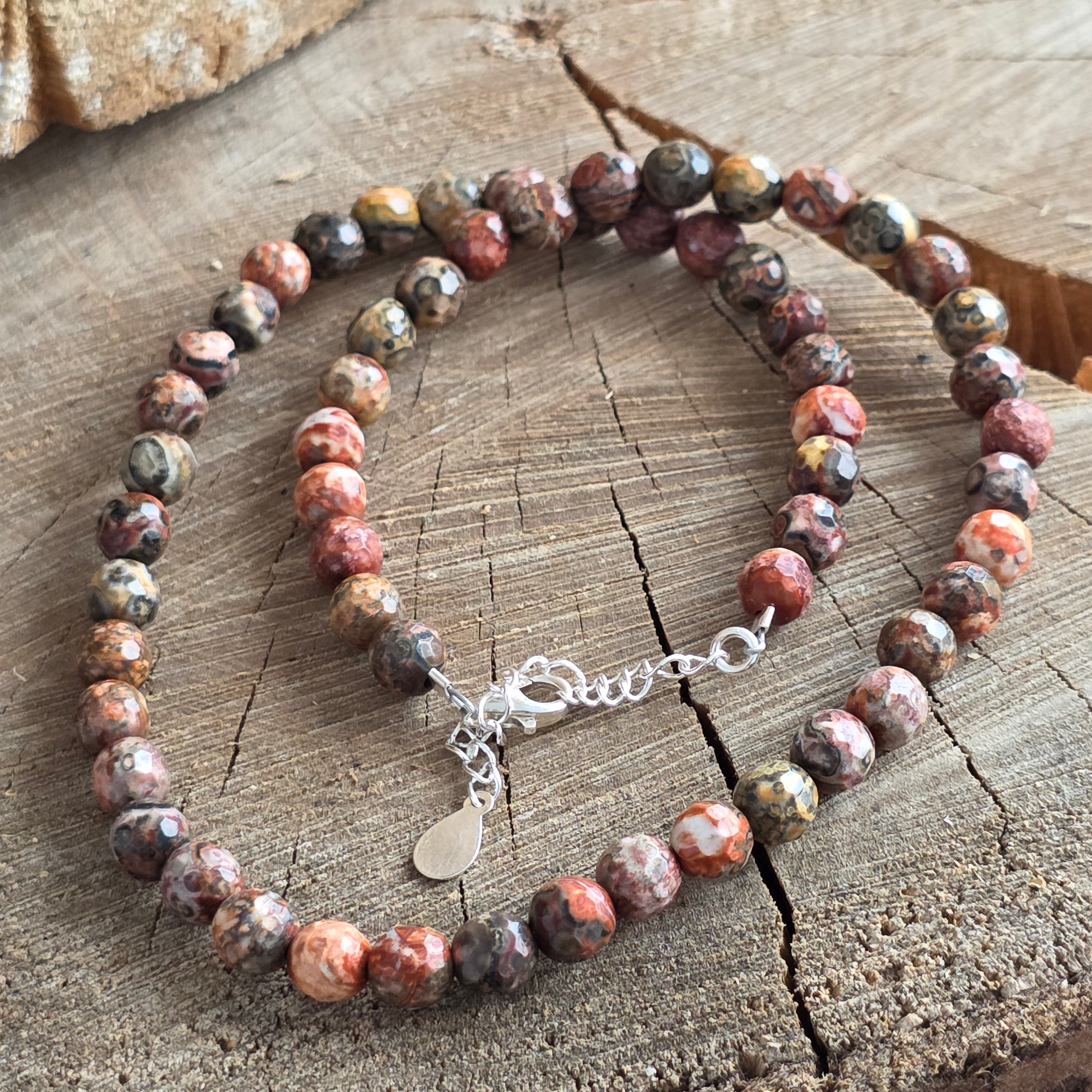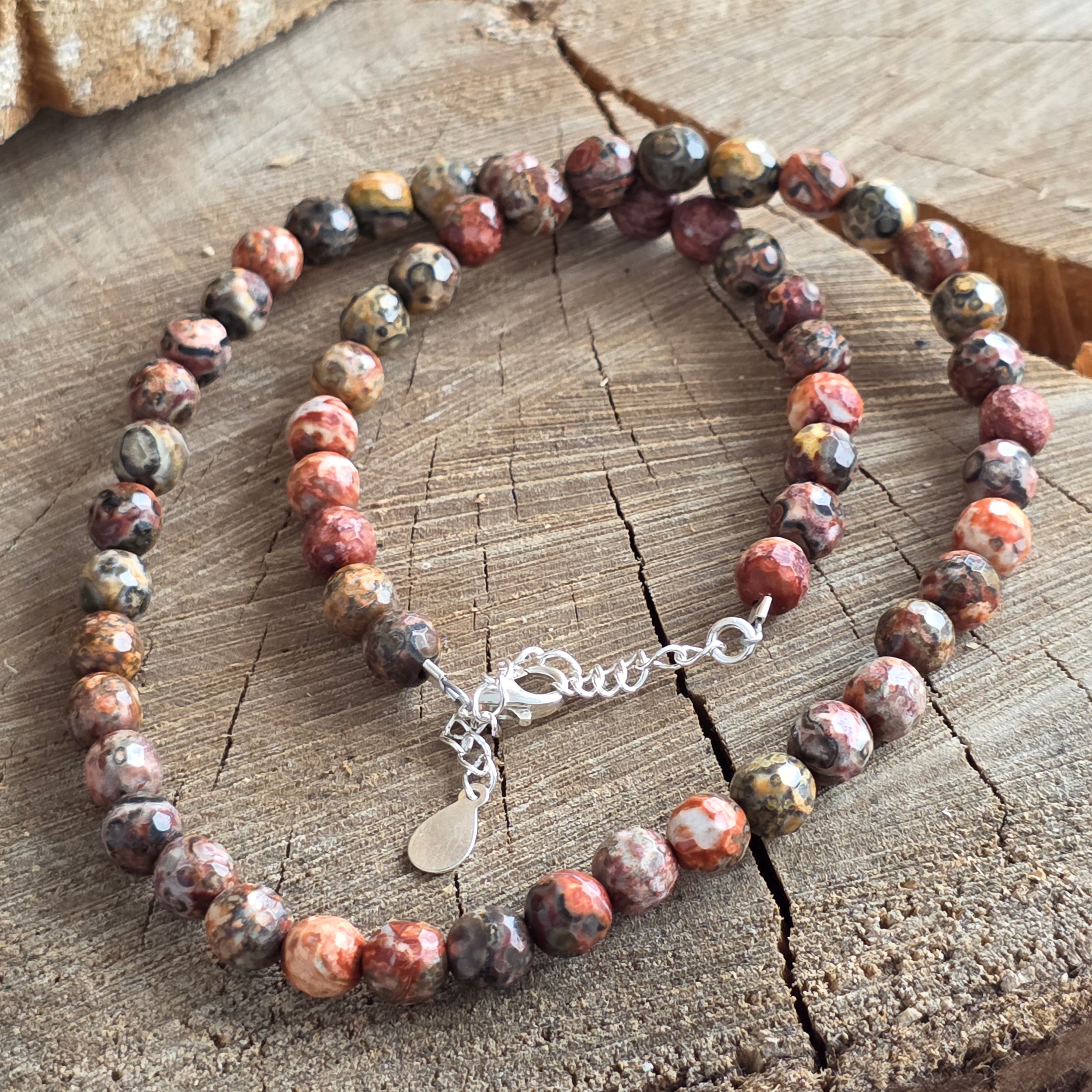 Колие, което излъчва меката сила на земята и дискретната благородност на дивата природа. Естественият фасетиран яспис леопард 6 мм завладява с комбинацията от земни цветове и органични форми, които изглеждат рисувани от времето. Неговите фини фасети деликатно отразяват светлината, придавайки на бижутерията топла и автентична елегантност, перфектна за тези, които обичат естествената красота.