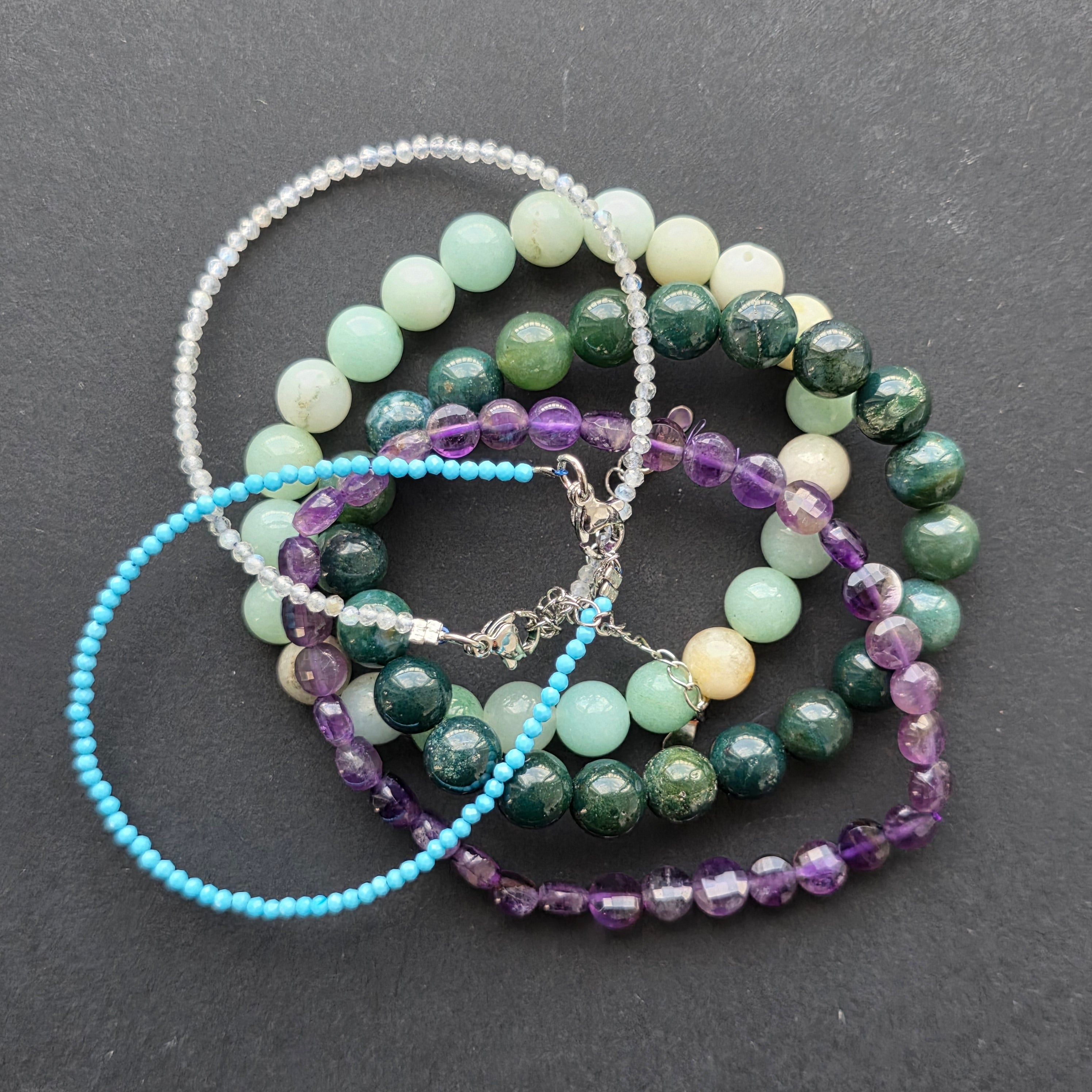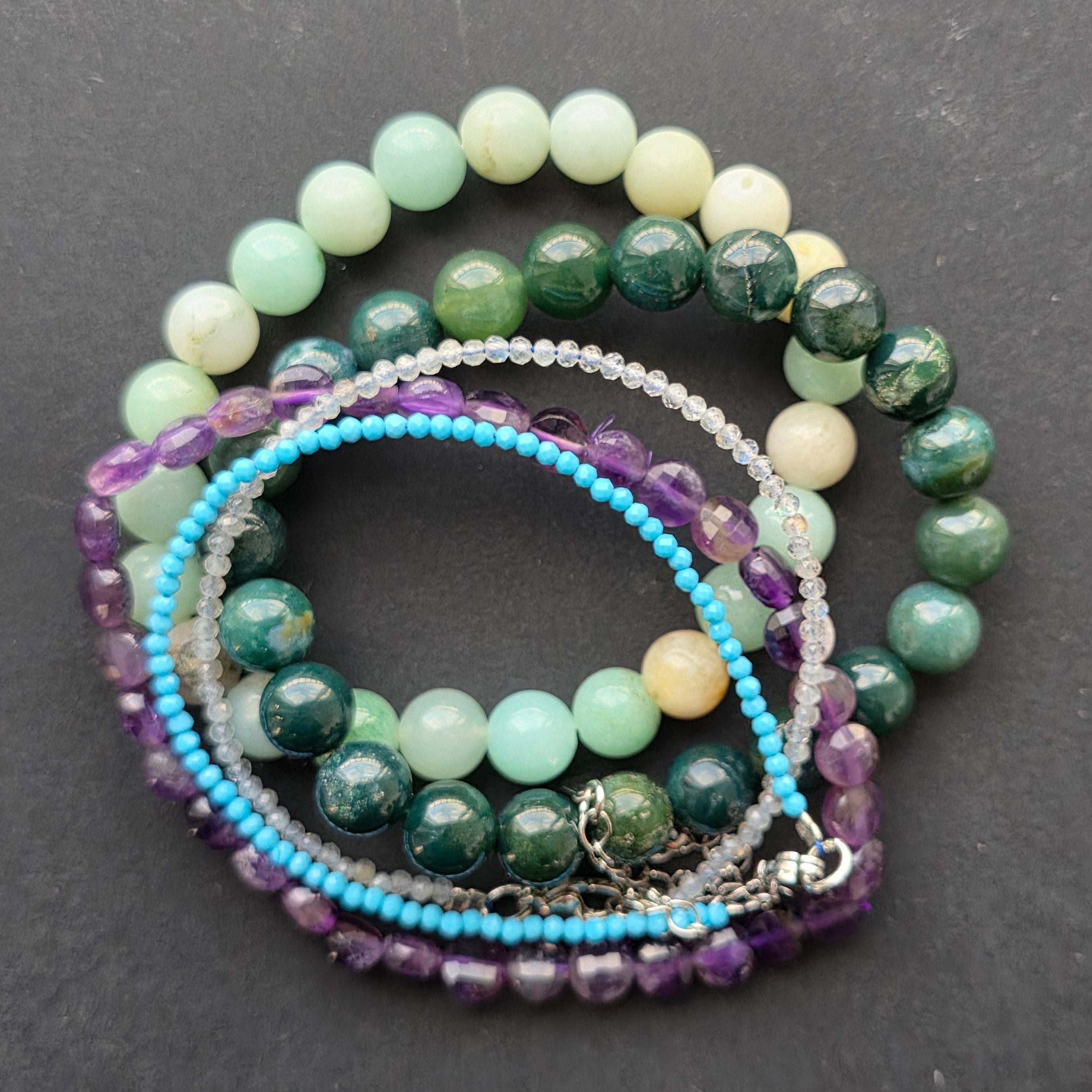 Този комплект е създаден за жената Водолей — свободен дух, иновативна, визионер и винаги с крачка пред времето. Тя живее в вибрациите на новите идеи, в енергията на големите вдъхновения и в дълбокото желание за автентичност. Камъните в този комплект са подбрани, за да зарадват интуицията ѝ, да усилят оригиналността ѝ и да успокоят ума ѝ, когато идеите се редуват твърде бързо.