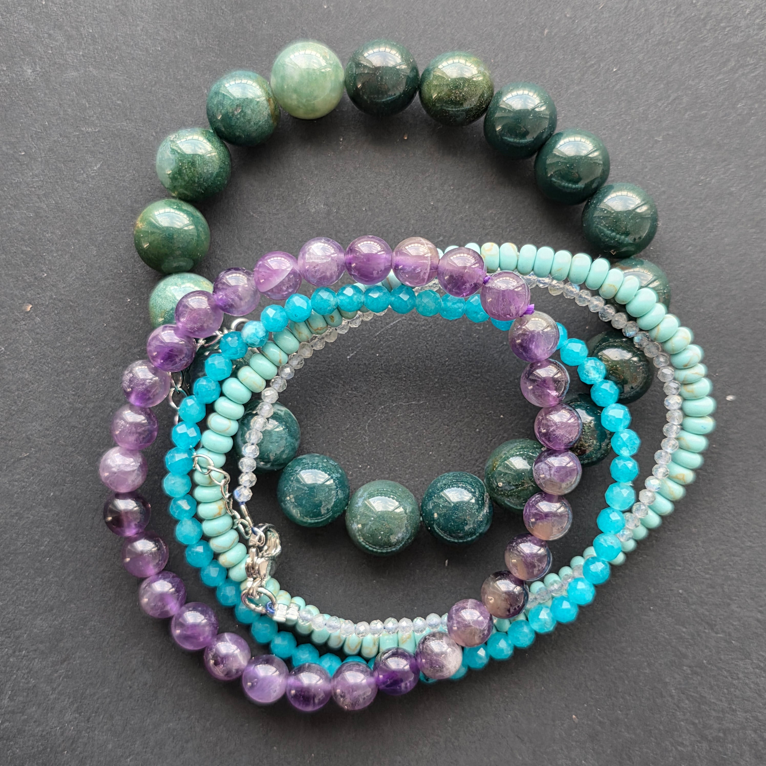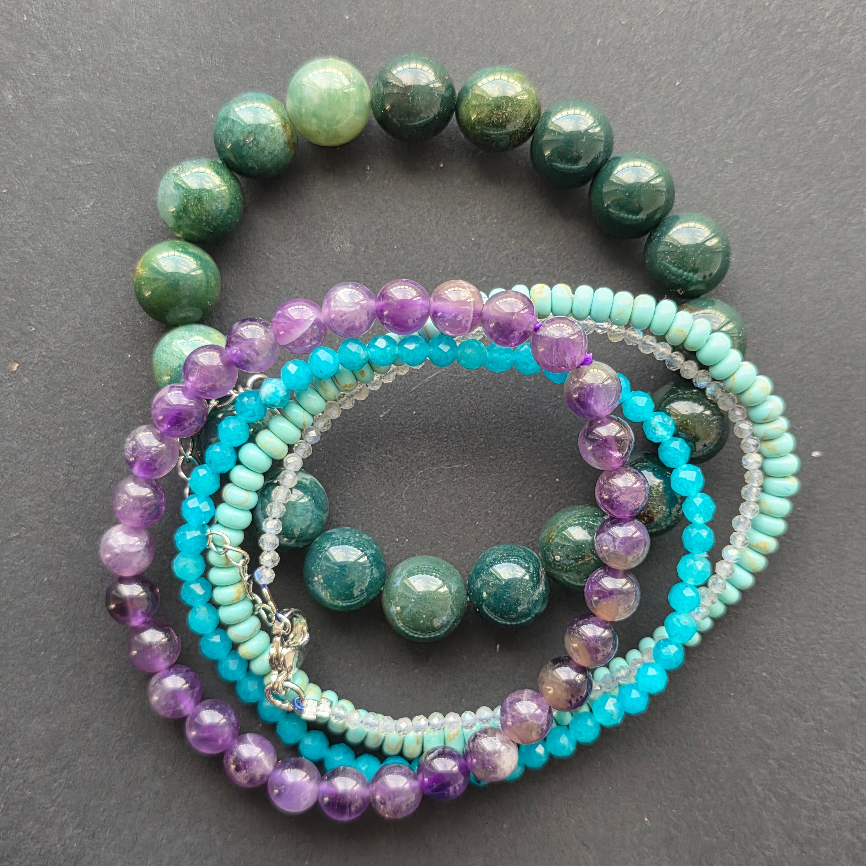 Този комплект е създаден за Жената Водолей — оригинална, непредсказуема, интуитивна и пълна с идеи, които надхвърлят обичайното. Тя живее в вибрацията на свободата, обича автентичността и излъчва особена енергия, трудно за игнориране. Камъните, избрани в този комплект, се сливат перфектно с нейната визионерска природа и с изследователския дух на този въздушен знак.