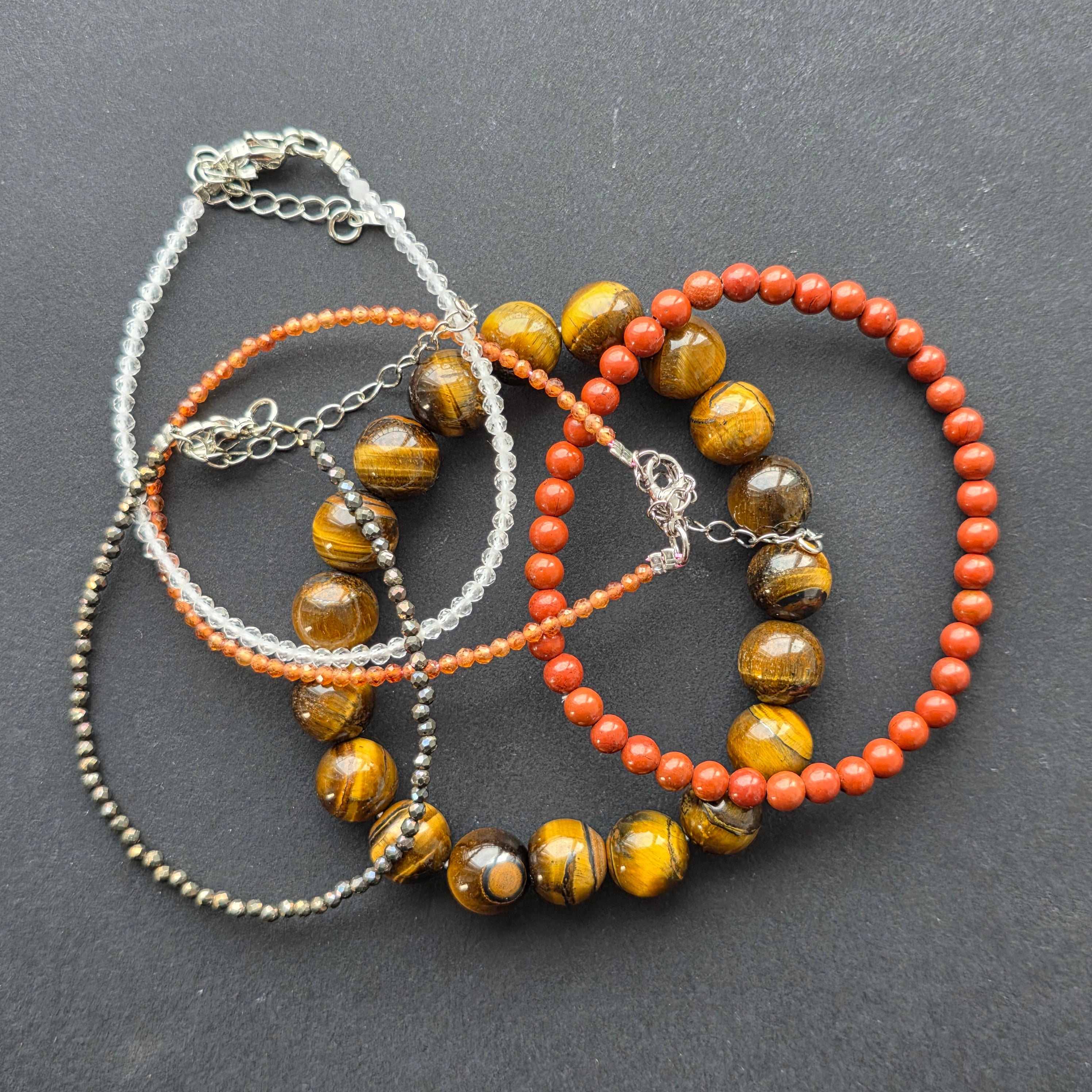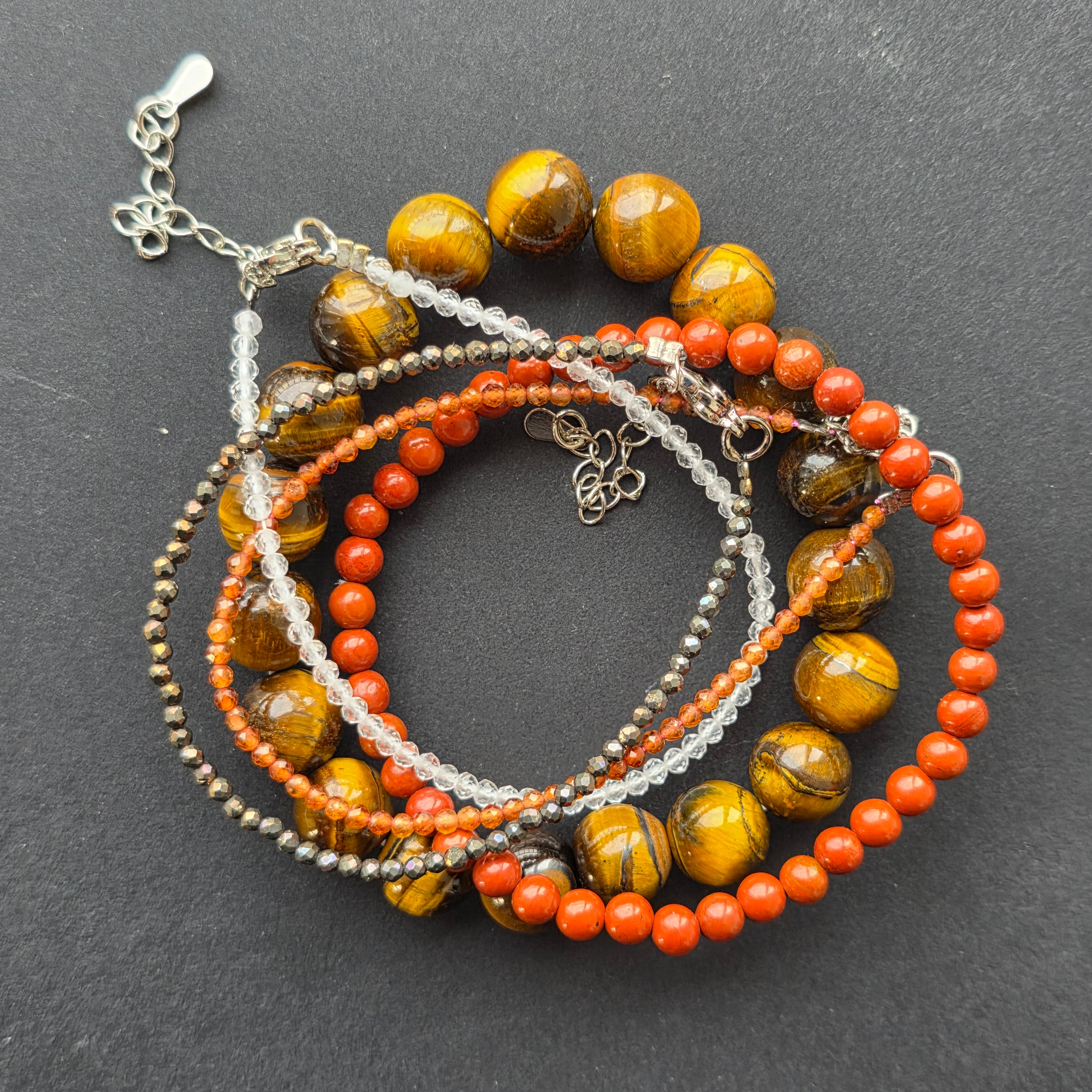 Този комплект е създаден за жената Лъв — слънчева, магнетична, силна и жизнена. Тя има присъствие, което осветява стаята, кураж, който вдъхновява и топло сърце, което обича щедро. Подбраните камъни в този комплект я подкрепят да проявява личната си сила, увереност, креативност и естествен блясък.