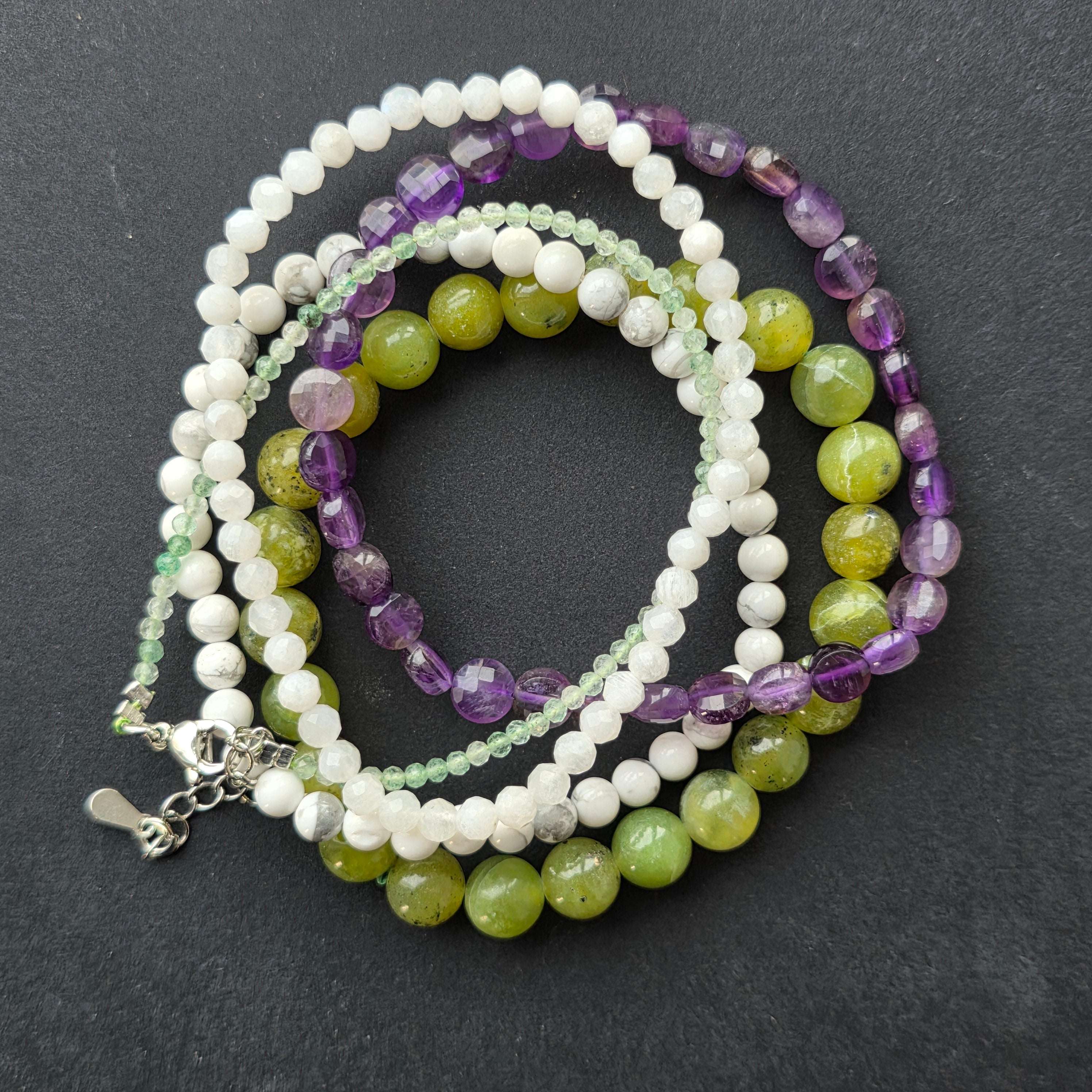 Аметистът с фасетирани дискове от 6 мм предлага умствена яснота и дълбок мир, като ѝ помага да организира емоциите си и да намери центъра си в моменти на напрежение.