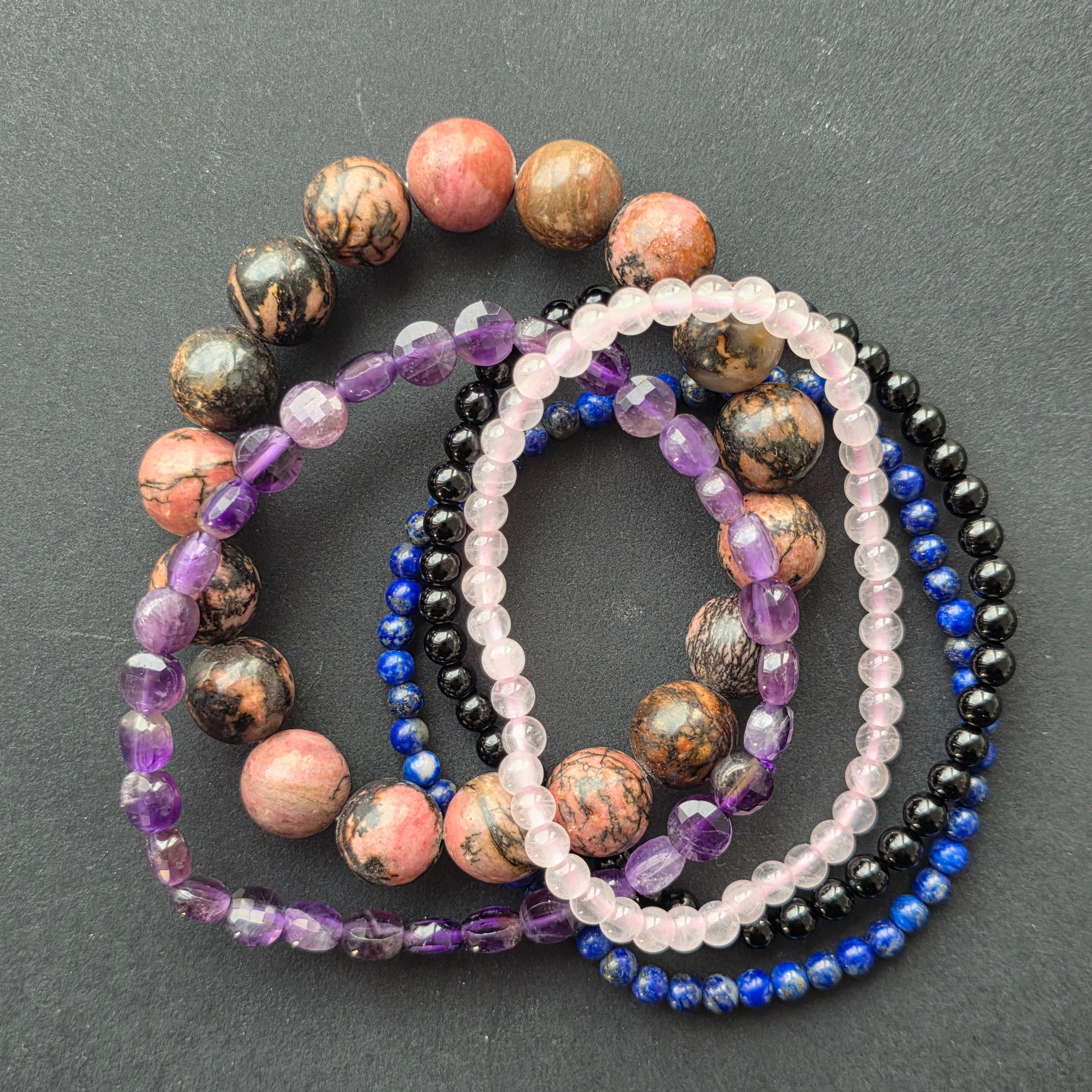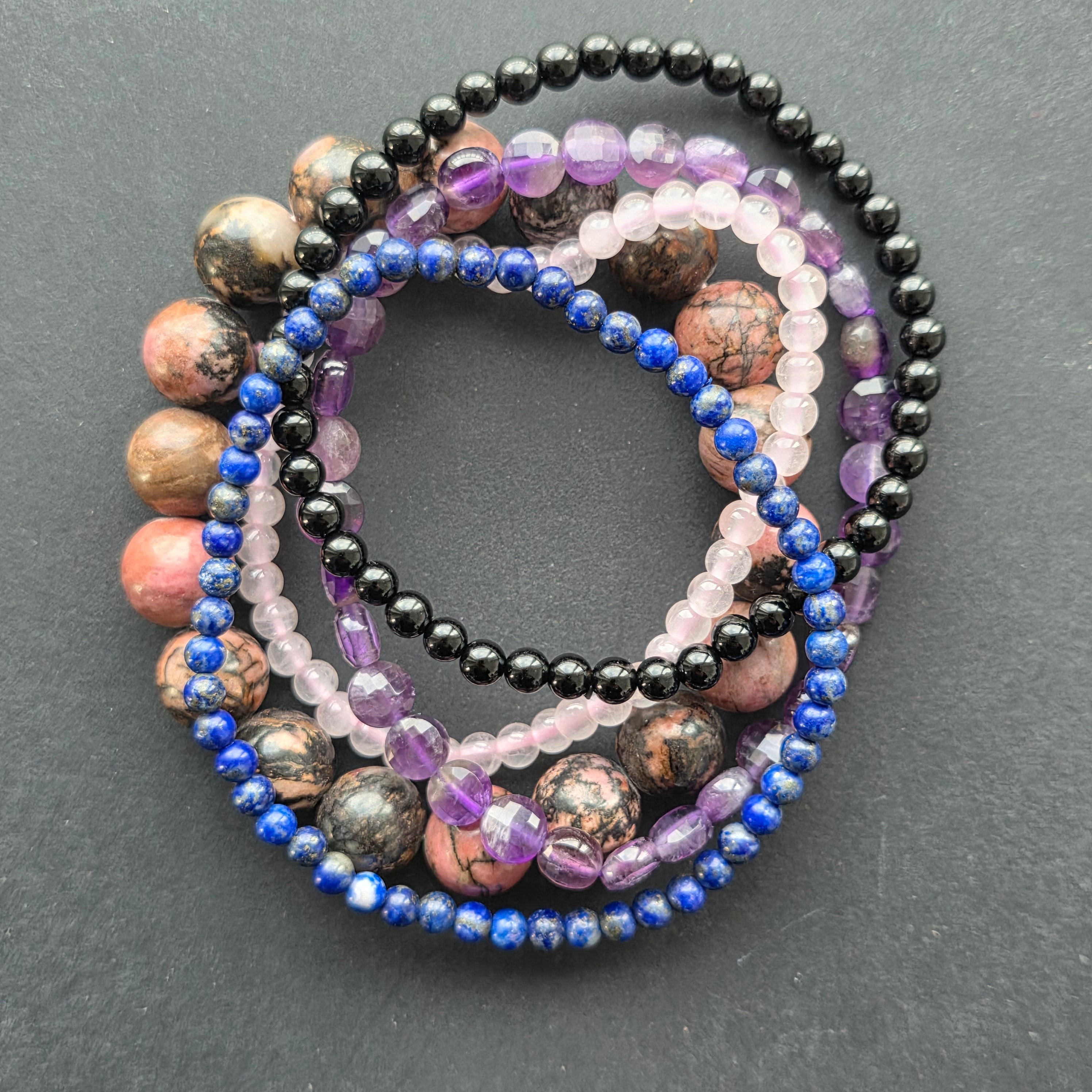 Черния оникс от 4 мм допълва комплекта със стабилност, защита и заземяване — съществена вибрация за някой, който изгражда живота си с търпение и структура.