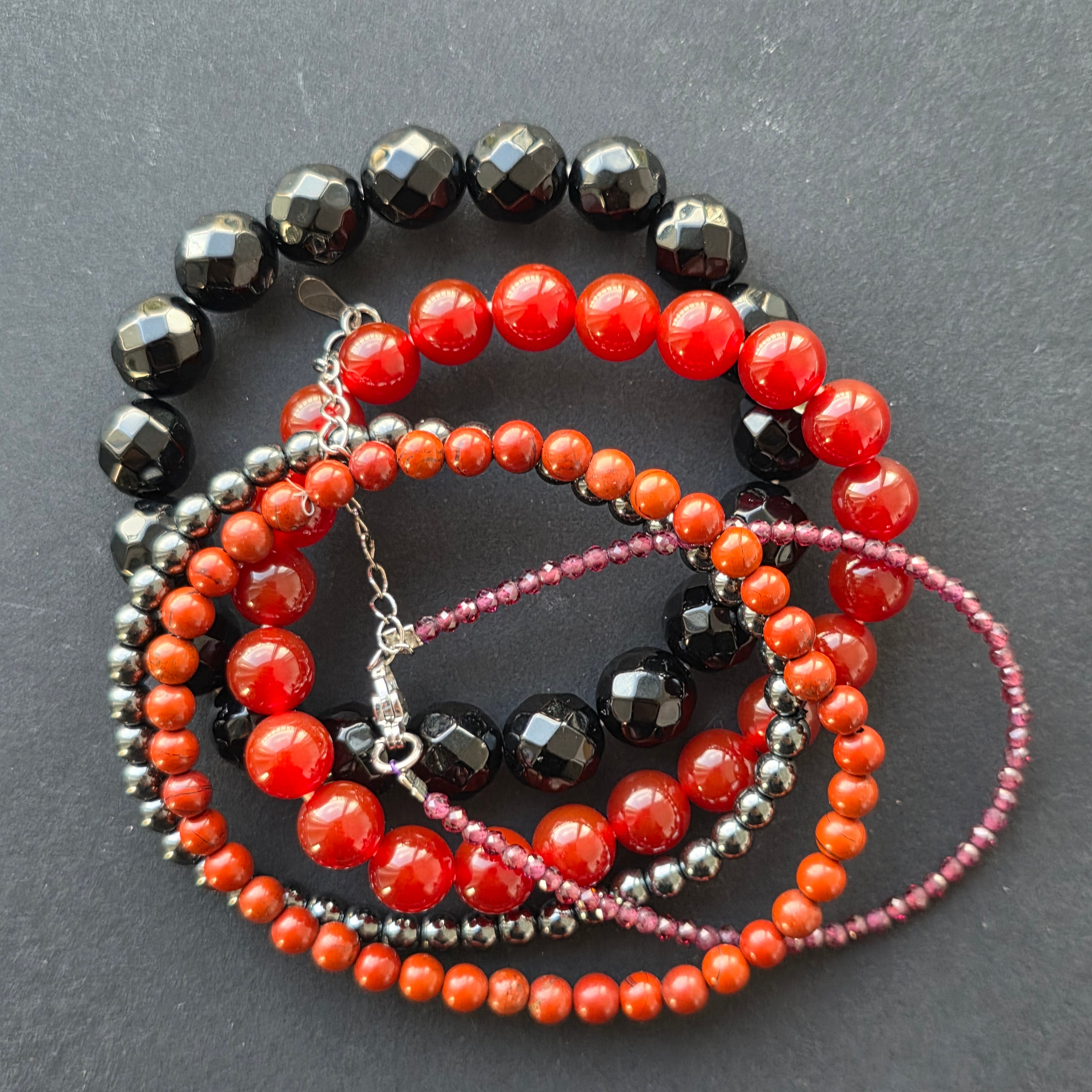 Този комплект е създаден за жената Скорпион — интензивна, загадъчна, дълбока и водена от вътрешна сила, която малцина могат да разберат. Тя живее с страст, обича с лоялност и непрекъснато се преобразява, издигайки се от собствената си светлина и тъмнина. Камъните в този комплект са подбрани, за да отразяват нейния магнетизъм, интуиция и способност за регенерация.