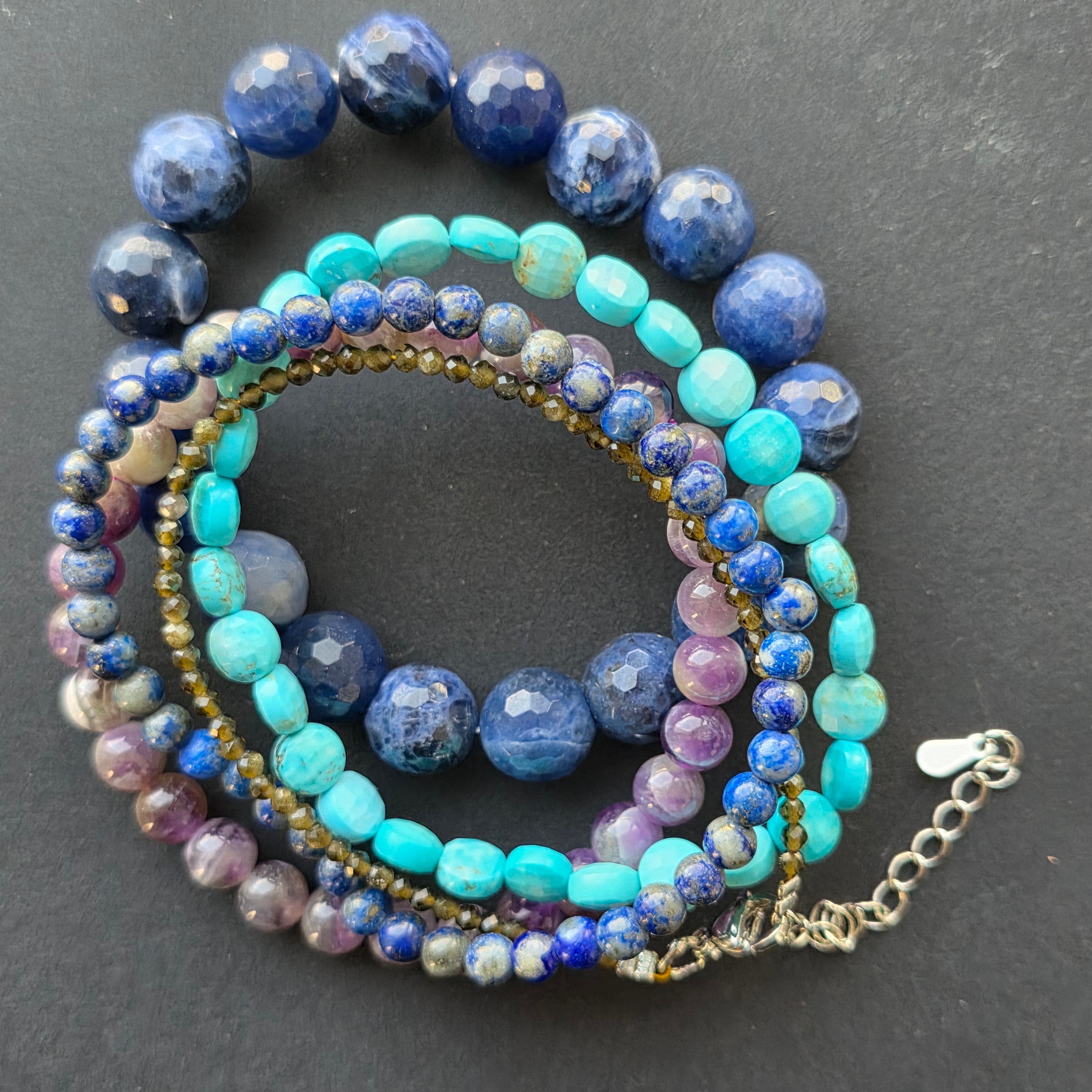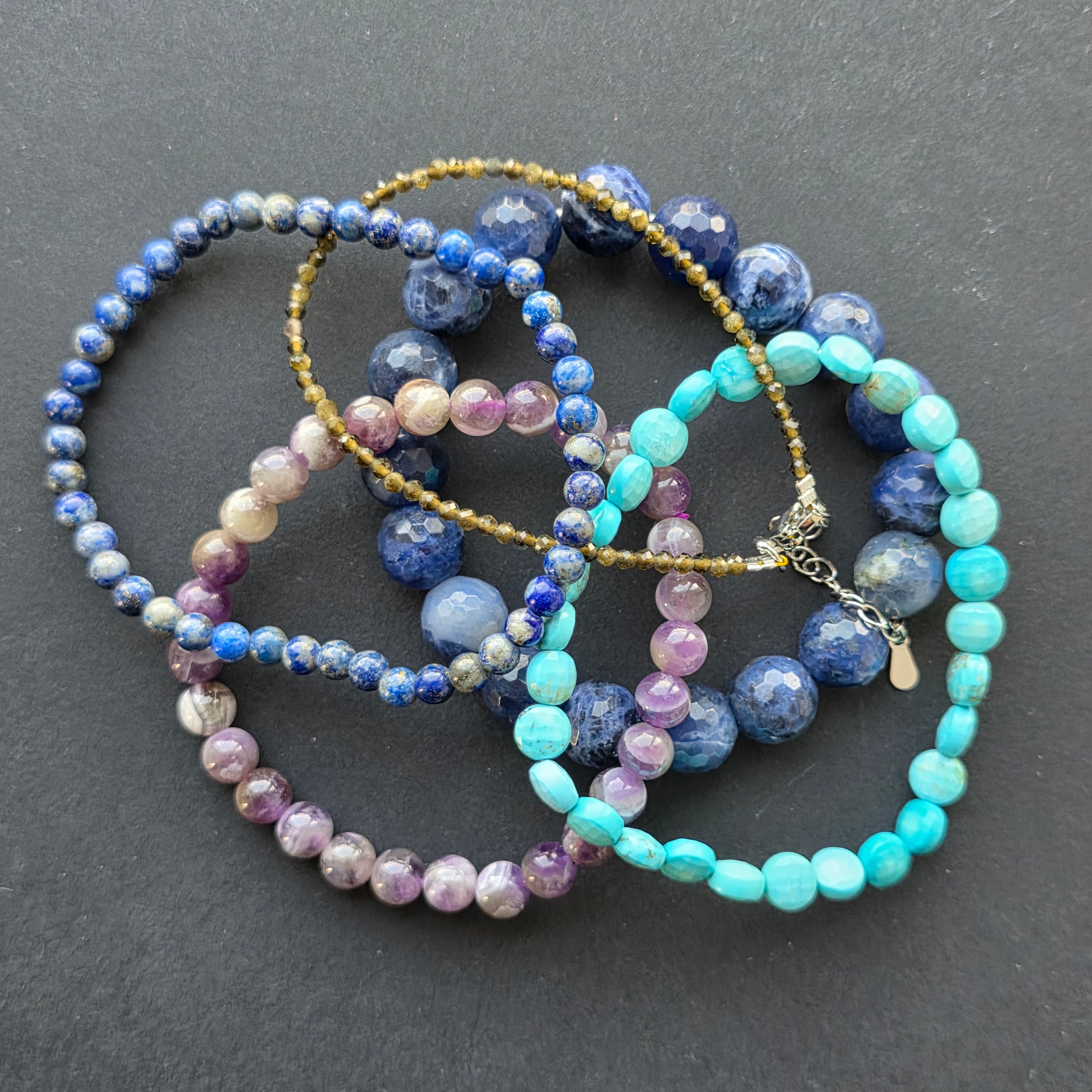 Син хаулят във форми на дискове от 4 мм осигурява вдъхновение, спокойствие и лека вибрация, балансирайки нейния динамичен ритъм и отвореност към нови преживявания.