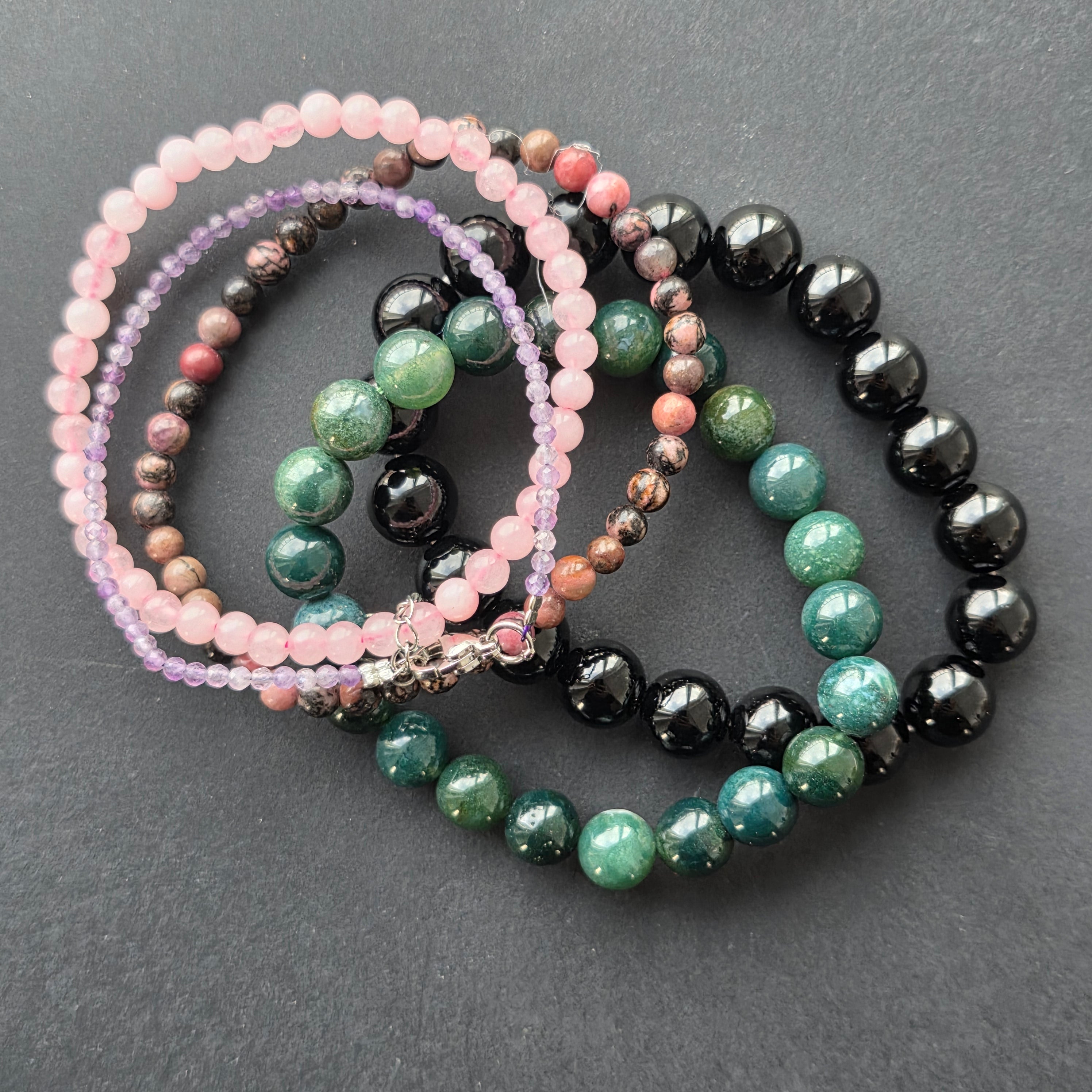 Този комплект е създаден за жената Телец — дълбока, спокойна, чувствена и заземена в красотата на света. Тя притежава тиха сила, вътрешна стабилност, която вдъхновява, и рядка способност да превръща всичко, което докосне, в хармония. Камъните в този комплект са подбрани, за да усилят нейната деликатност, емоционален баланс и връзка с природата.