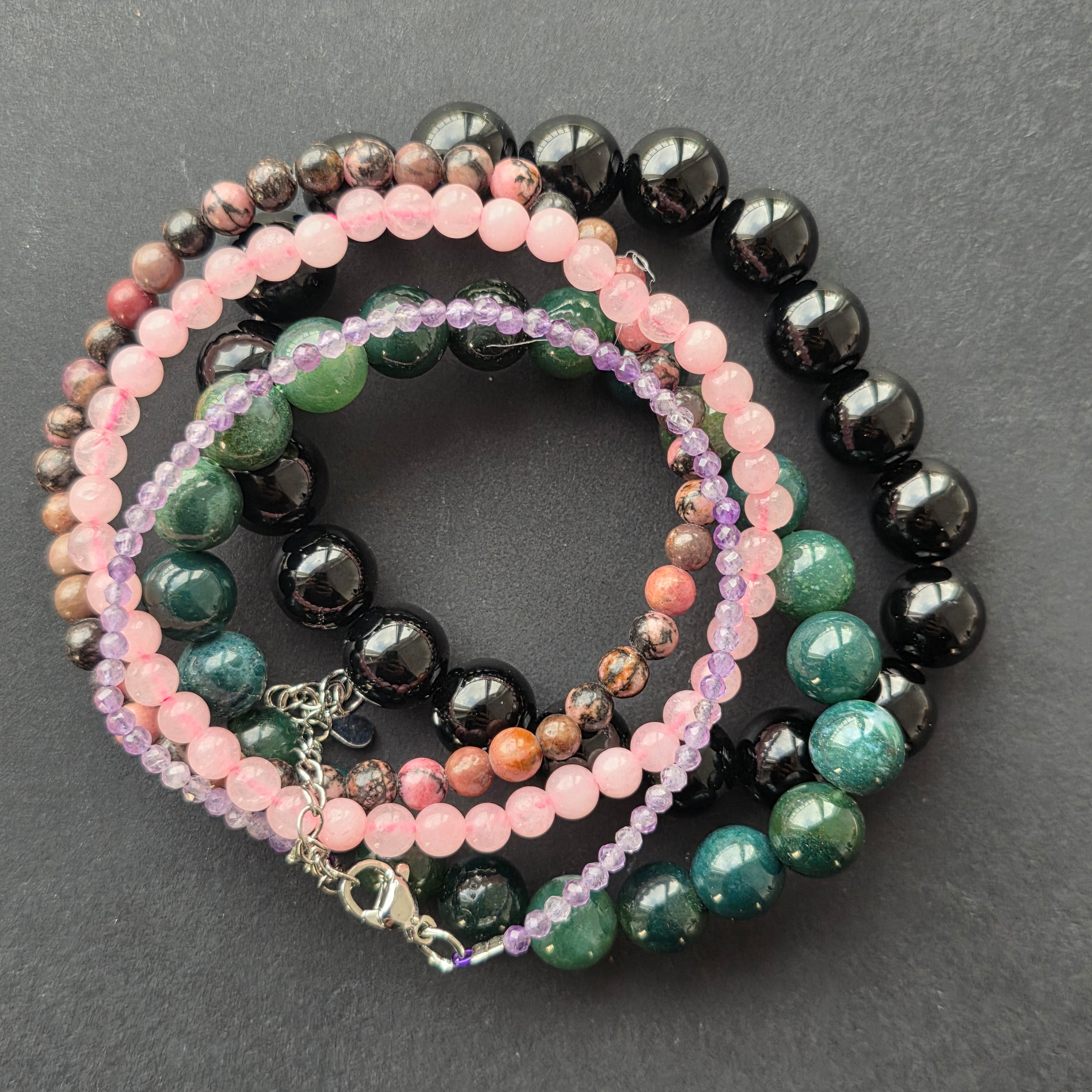 Аметистът 2 мм фасетиран предлага спокойствие, яснота и психическо равновесие, допълвайки комплекта с мекa и изящна енергия.