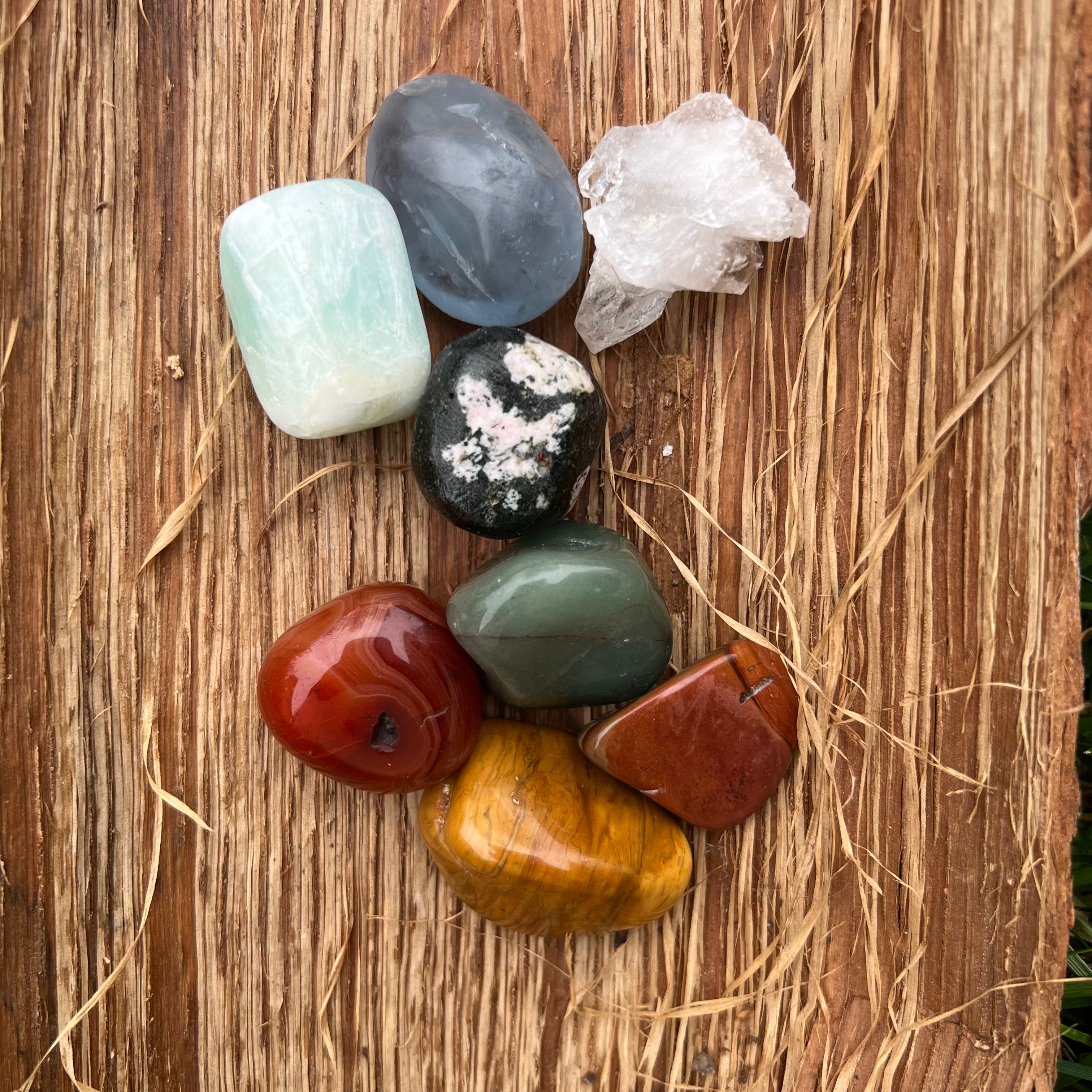 Ревюта – Комплект кристали за 7 чакри IAM, 9 полускъпоценни камъка 3-4 см