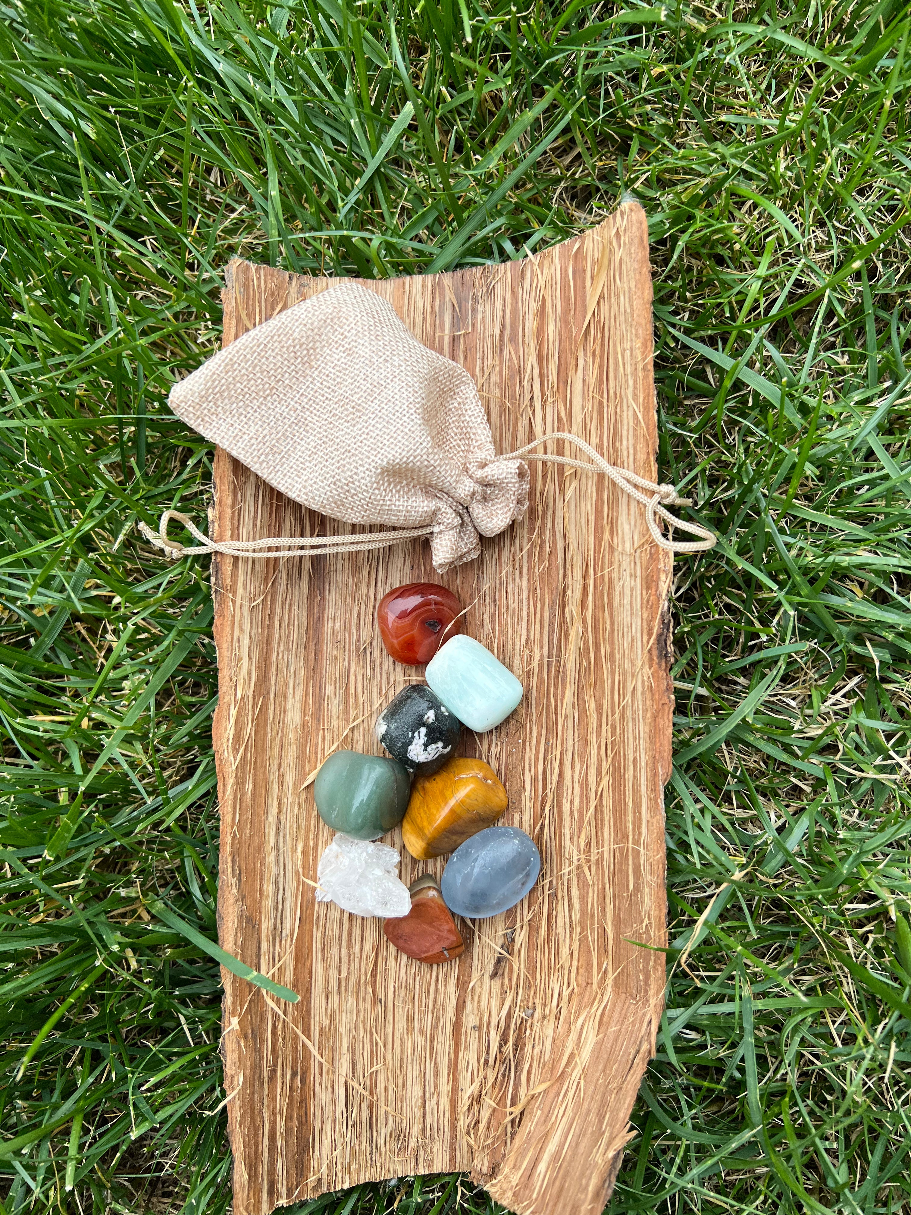 Комплект кристали за 7 чакри IAM, 9 полускъпоценни камъка 3-4 см