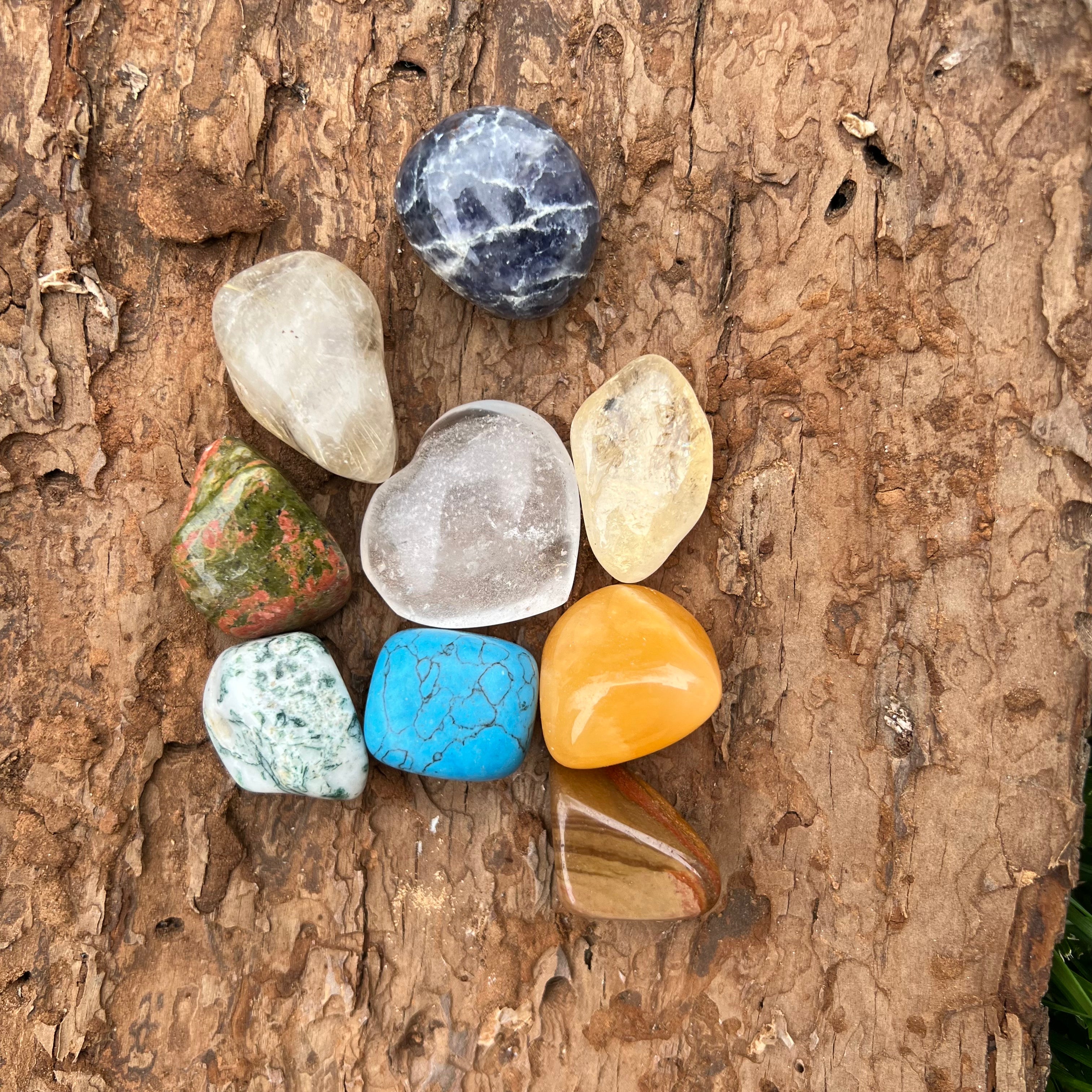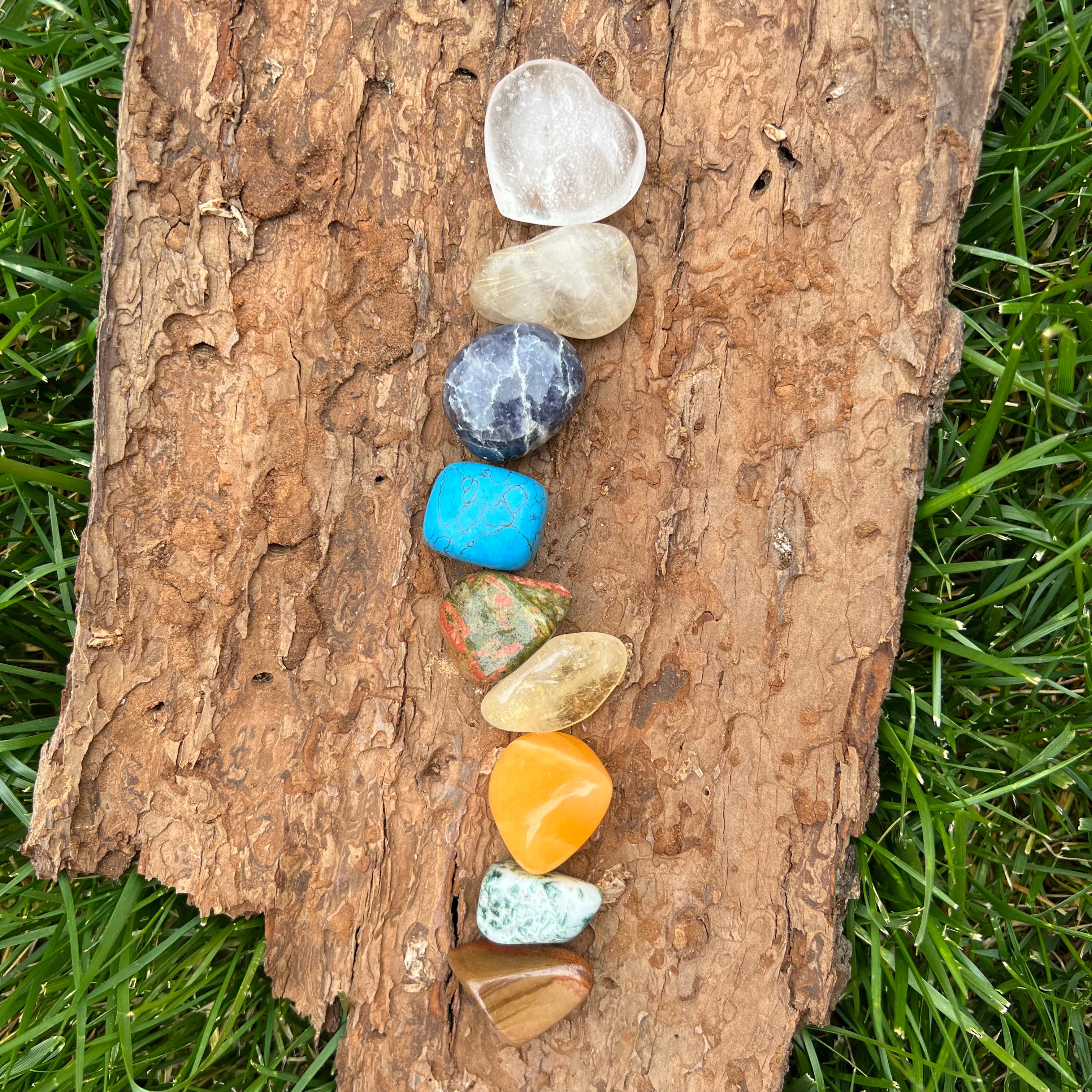Ревюта – Комплект кристали 7 чакри LOVE, 9 полускъпоценни камъни 3-4 см