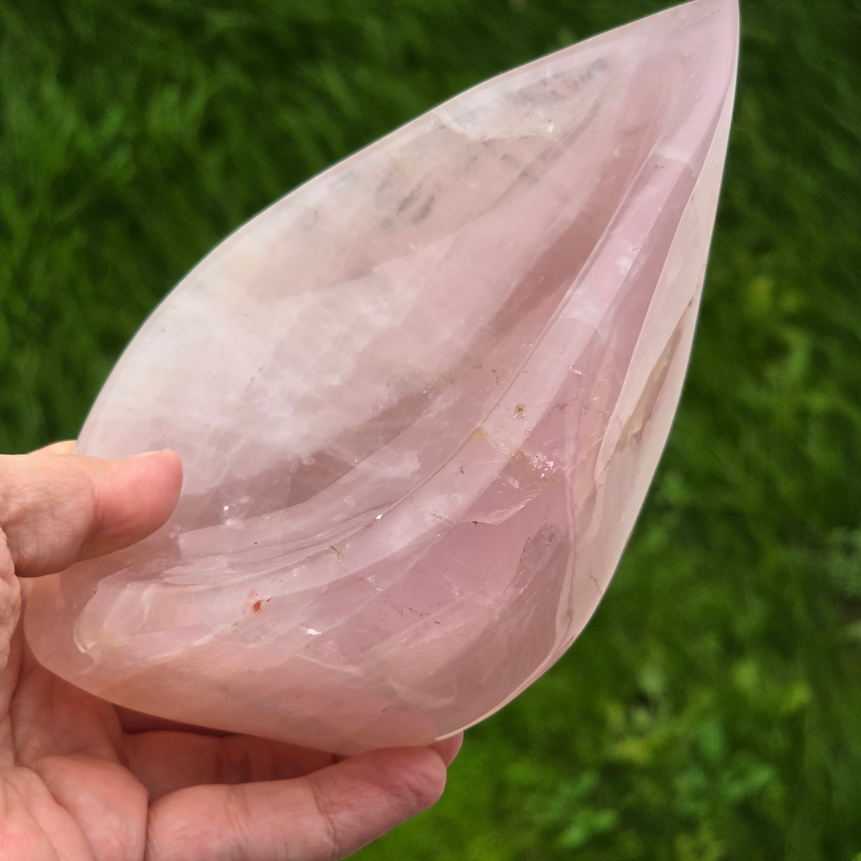 Купичката от Розов кварц модел Leaf е деликатен и топъл предмет, ръчно изсечен в органична форма, която напомня за лист, току-що докоснат от светлината. Розовият кварц, с нежен нюанс на венчелистче, носи спокойна, нежна и леко светла вибрация, превръщайки всяко кътче на дома в по-топло, приветливо и хармонично пространство.