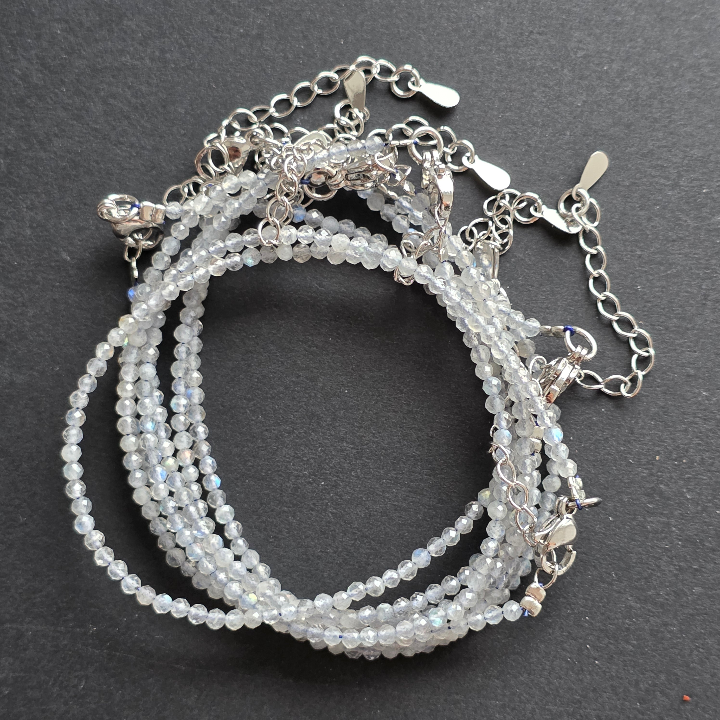 Описание - Лабрадоритна гривна 2 мм регулируема