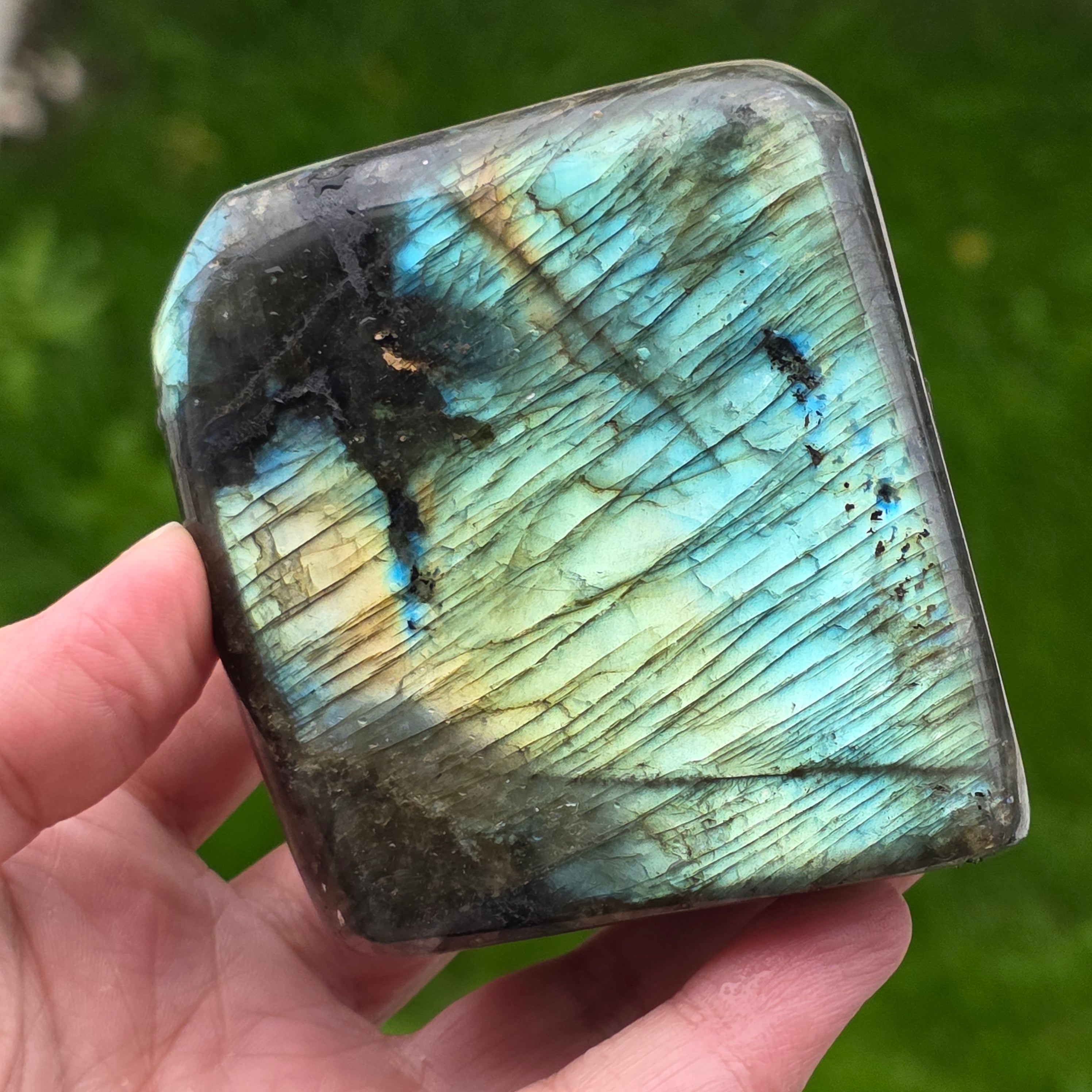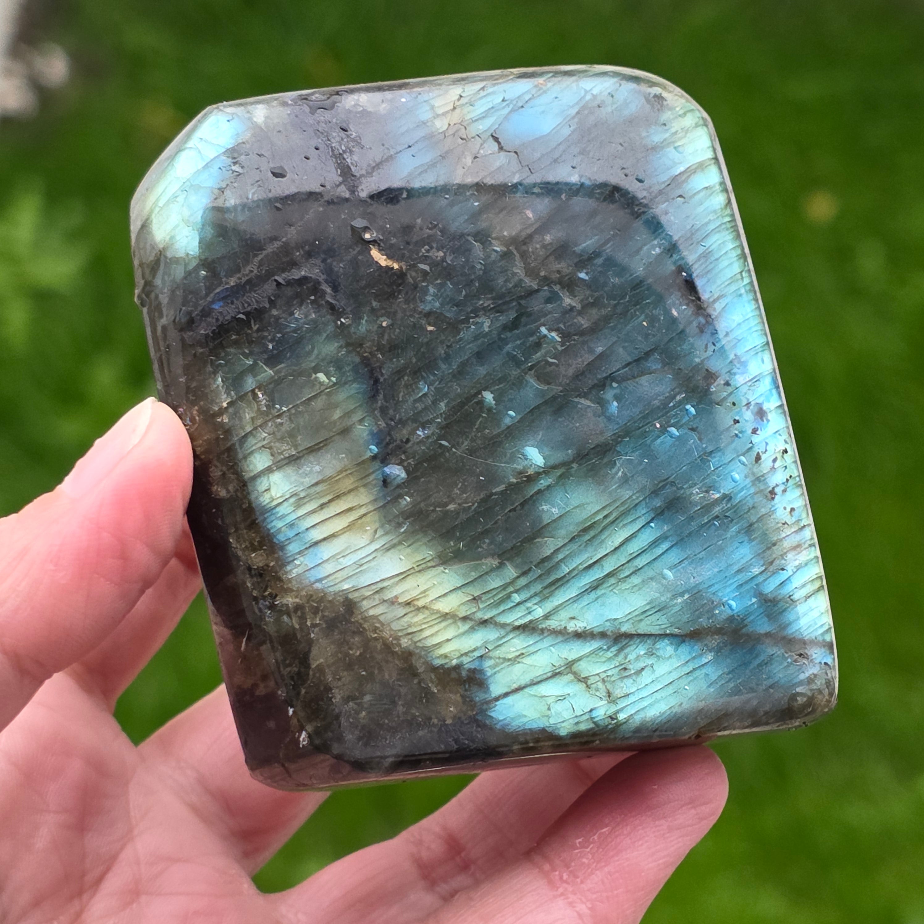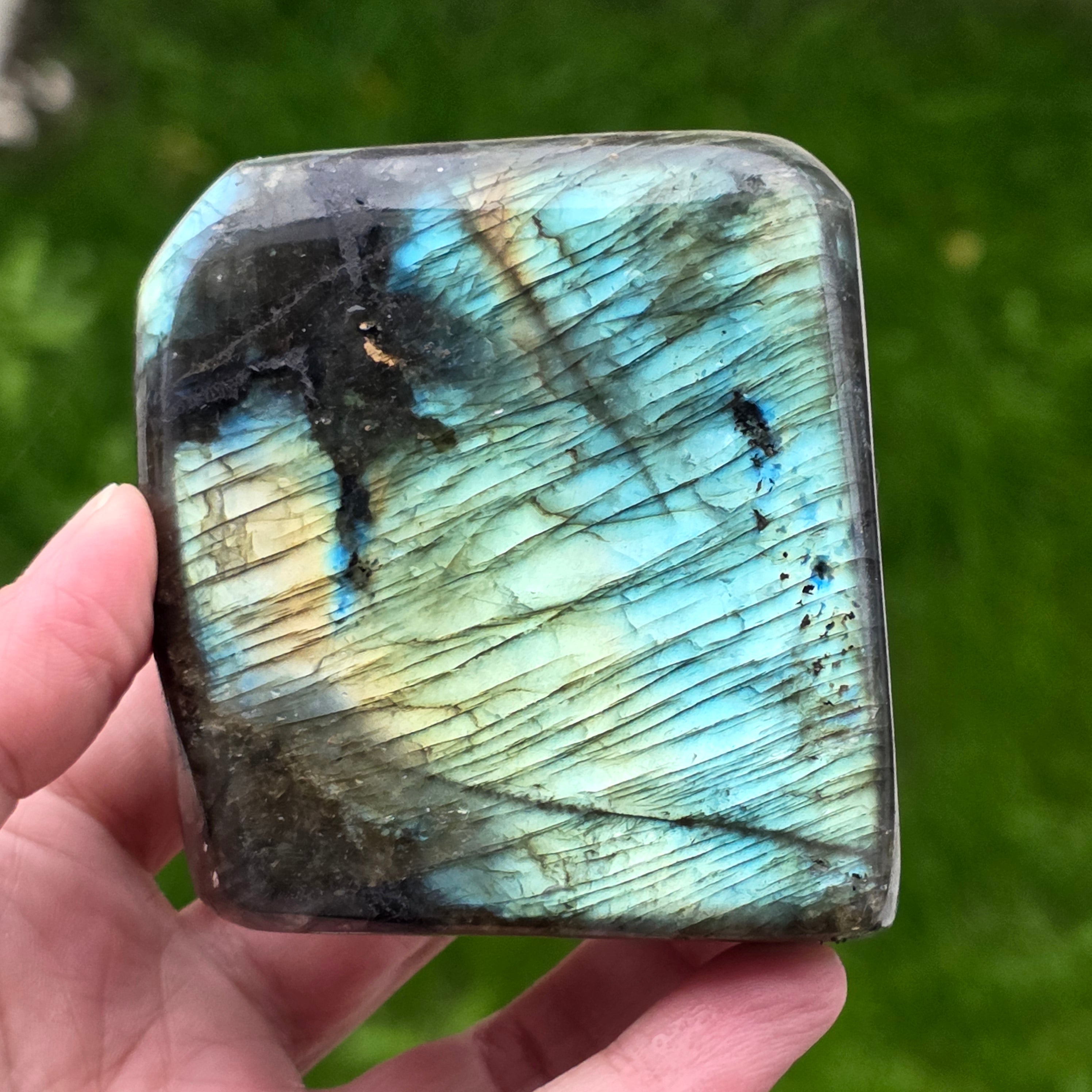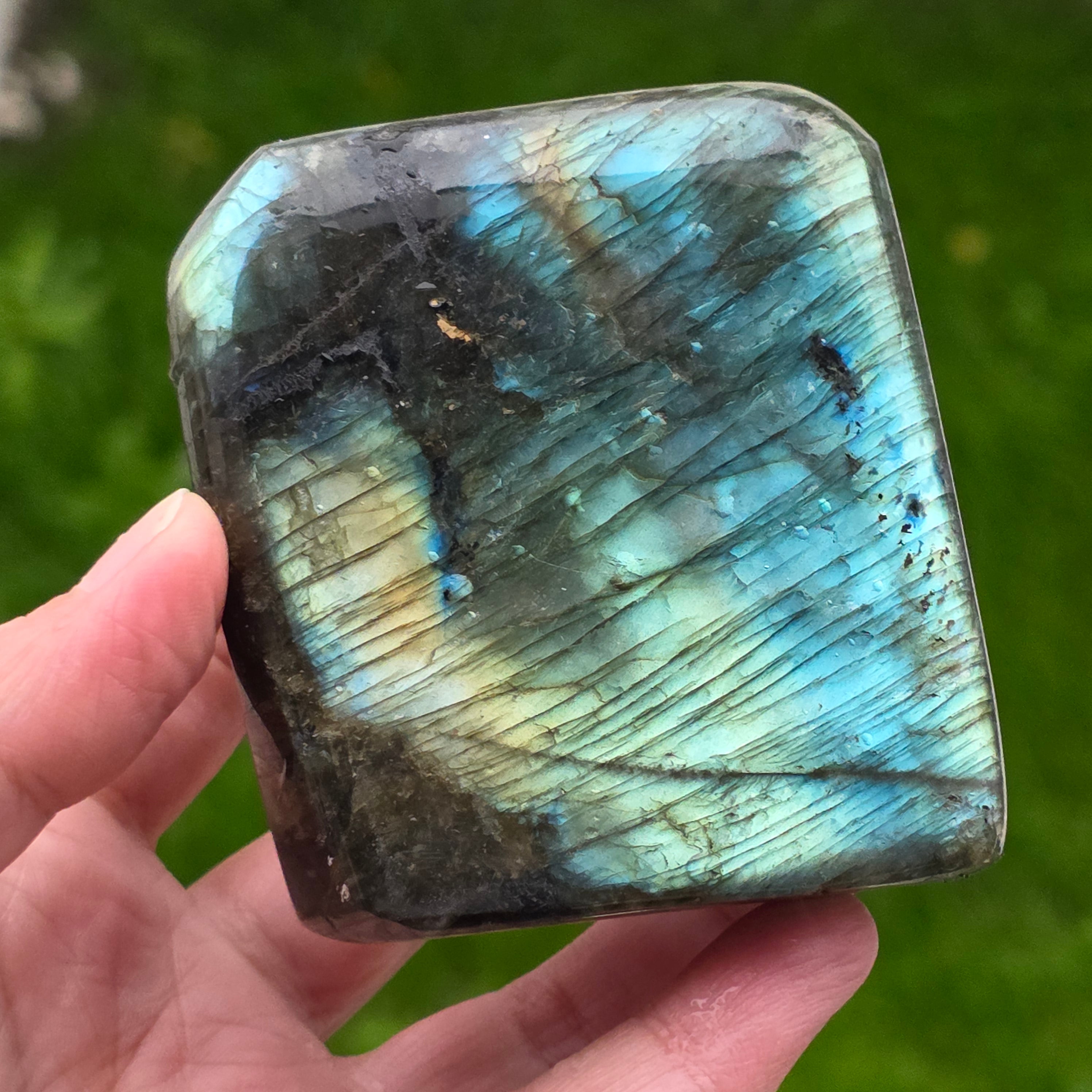 Лабрадоритът се счита за камък на ясновидството и интуицията, той е съществен камък в колекцията. Тя действа като защитен щит, помага ни да си спомним колко сме силни.