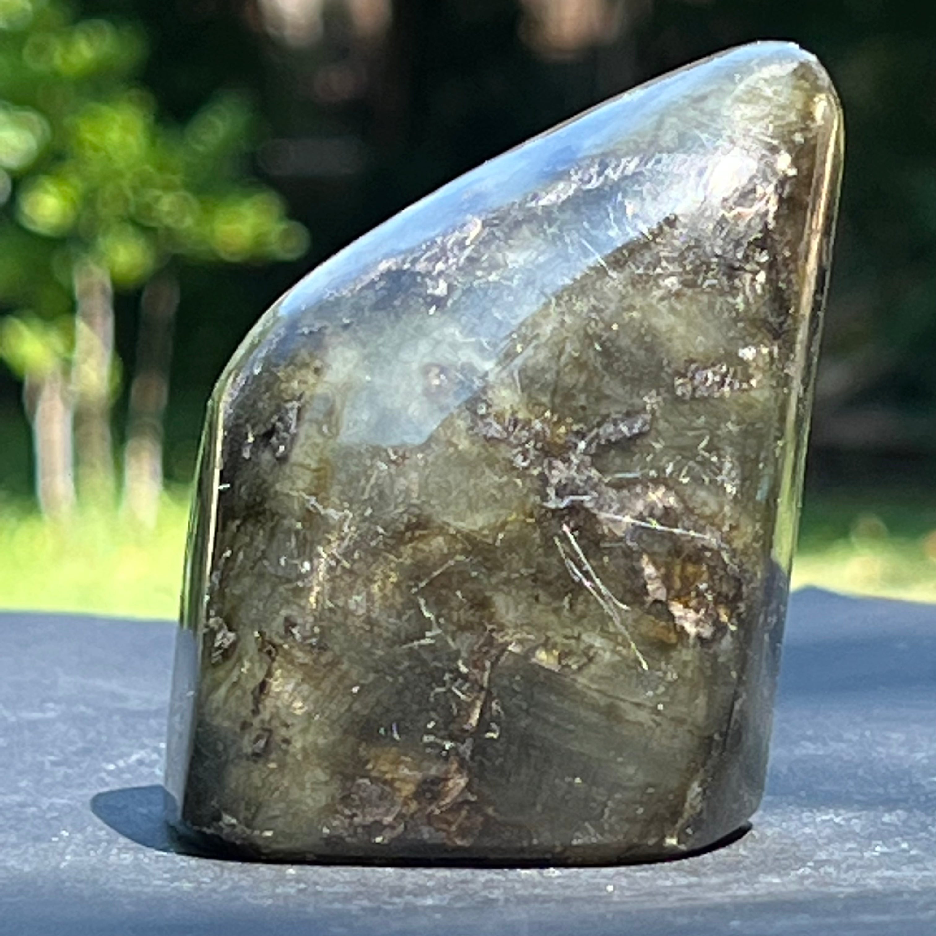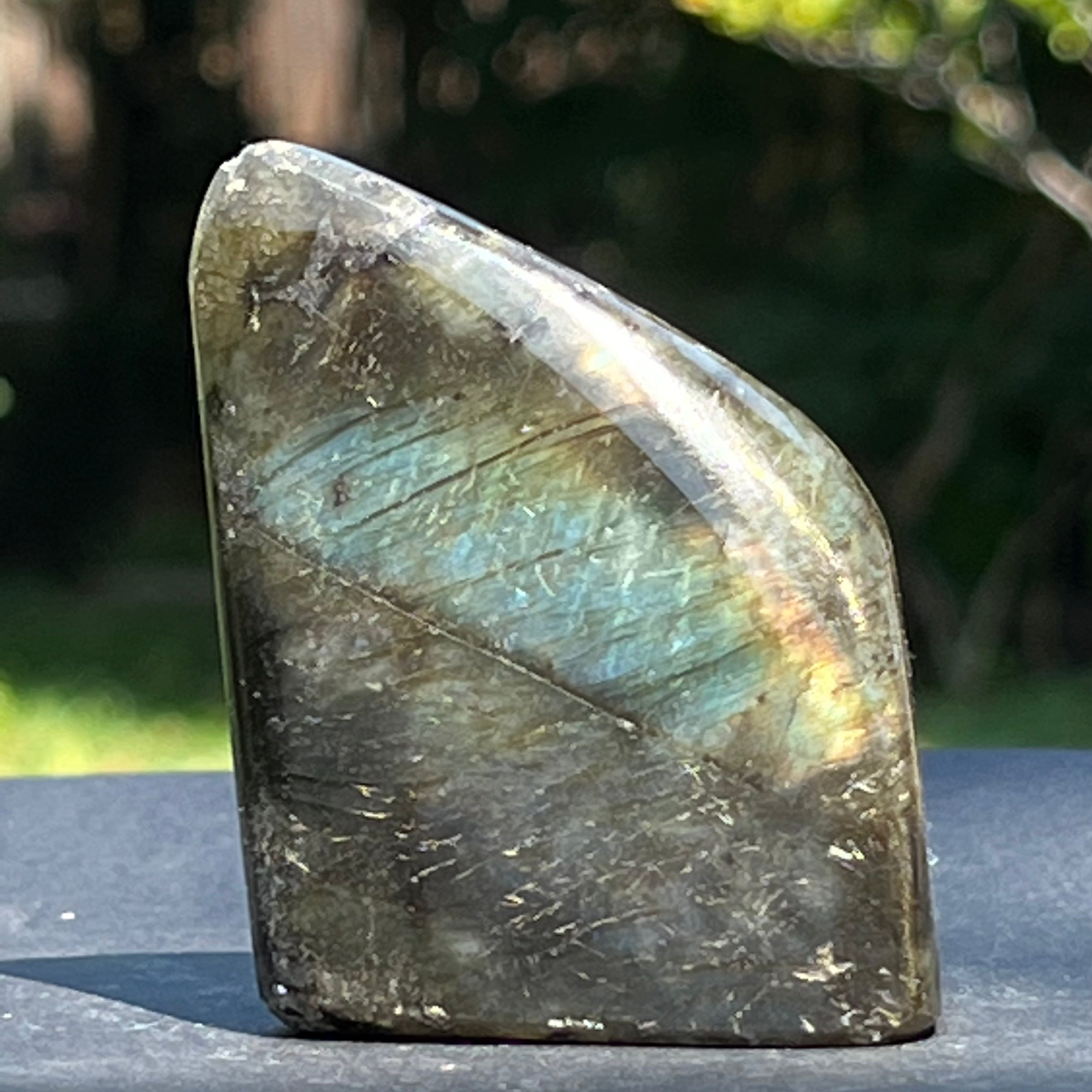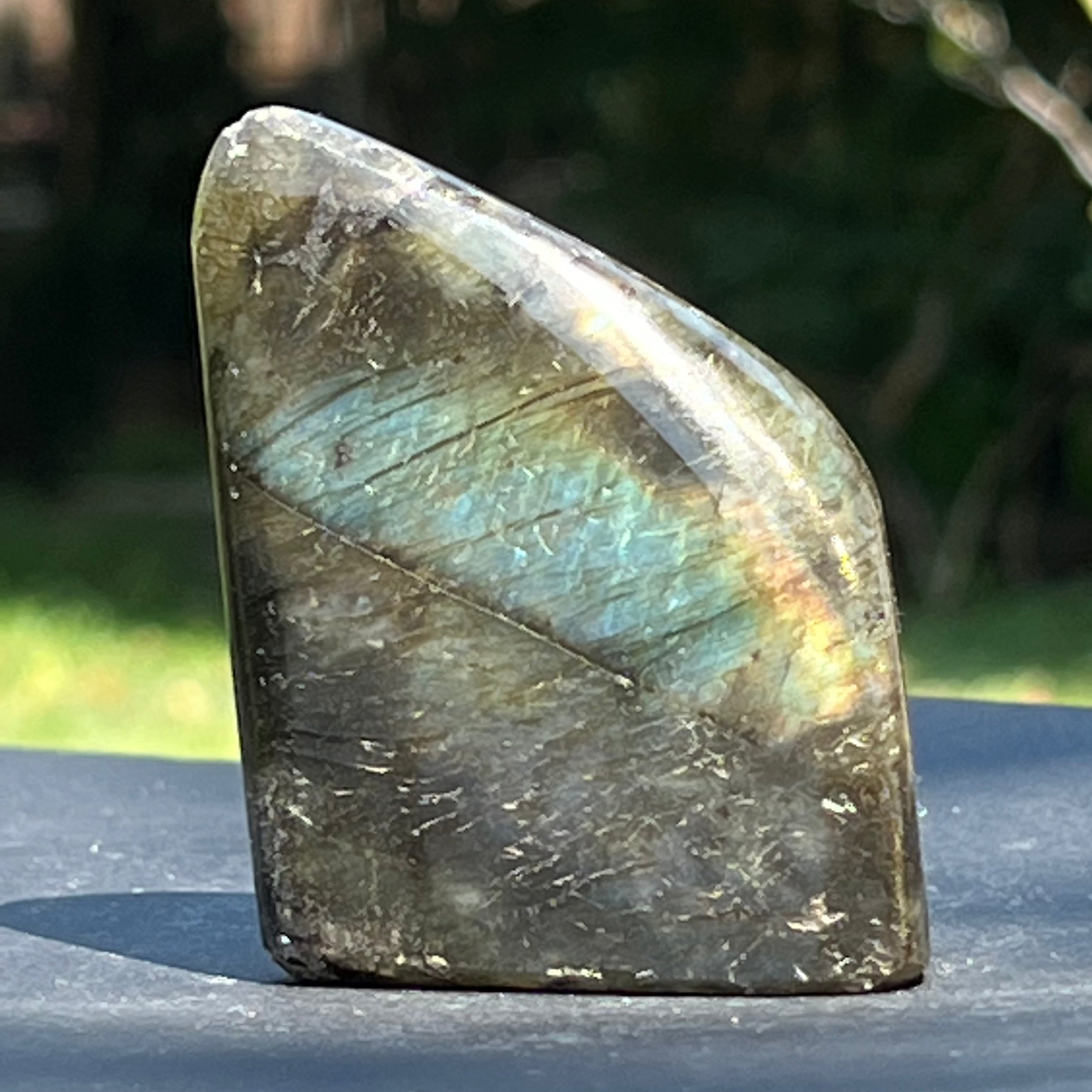 Лабрадоритът е полускъпоценен камък с цветови схеми, които се променят в зависимост от ъгъла на гледане.
