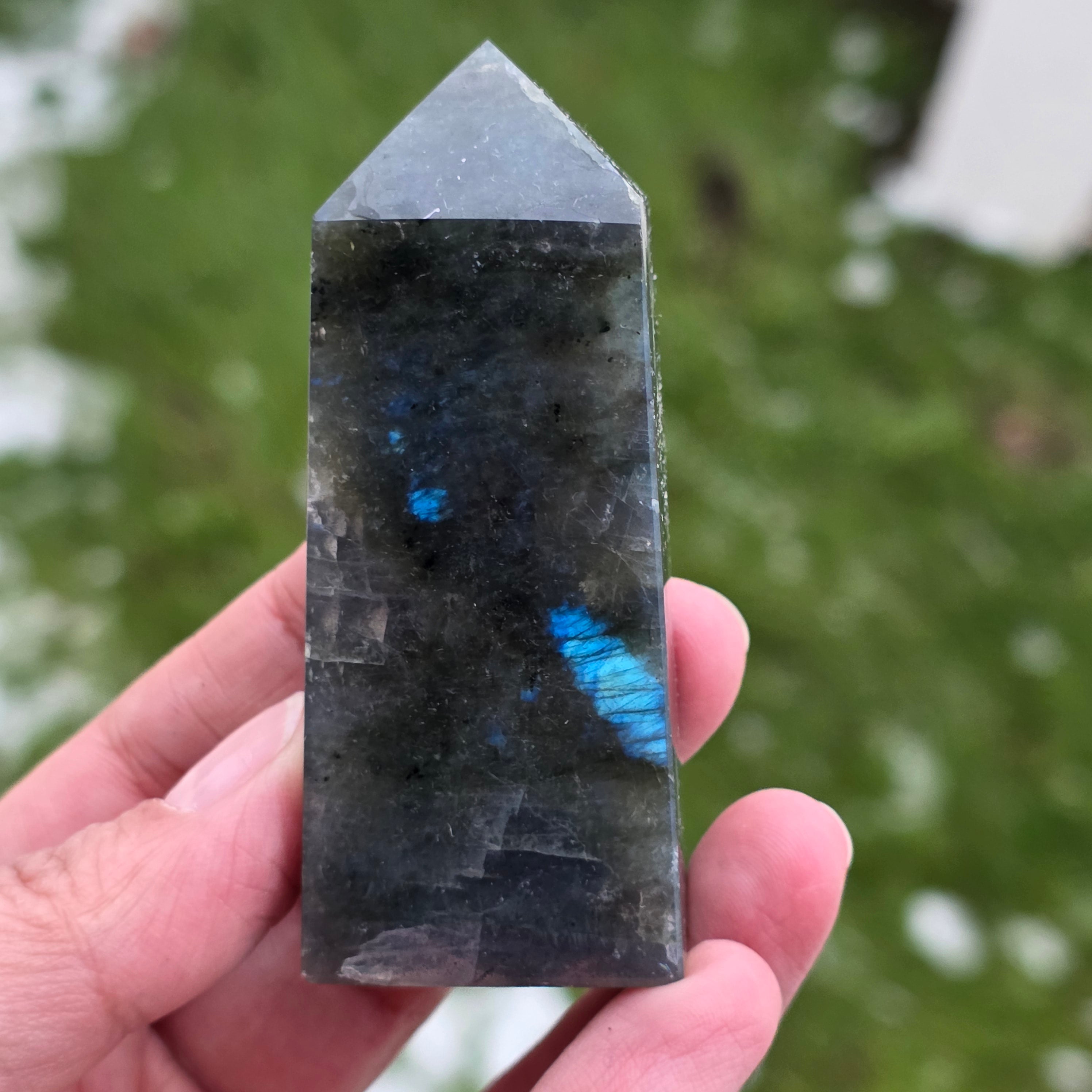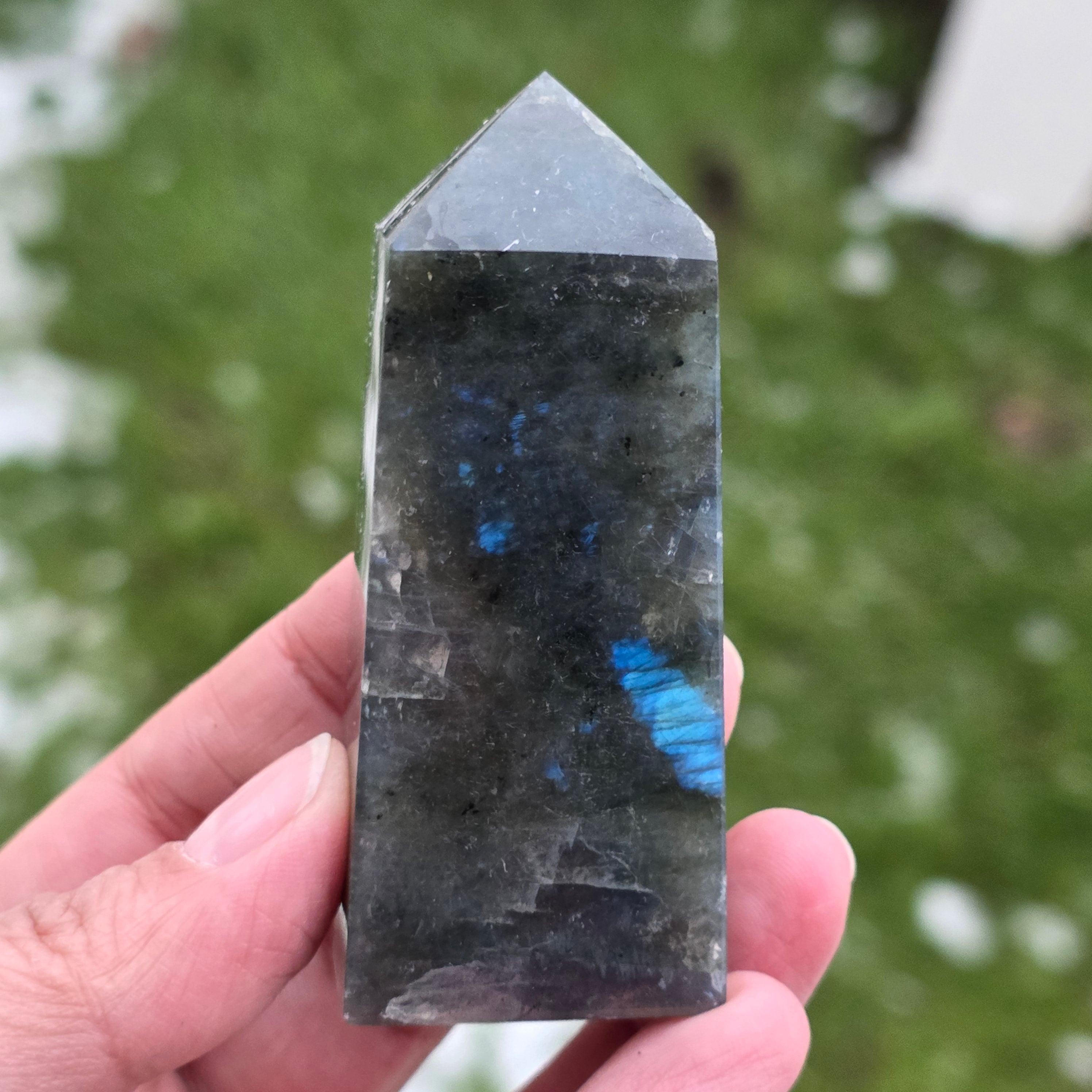Лабрадоритът се счита за камък на ясновидството и интуицията, той е съществен камък в колекцията. Тя действа като защитен щит, помага ни да си спомним колко сме силни.