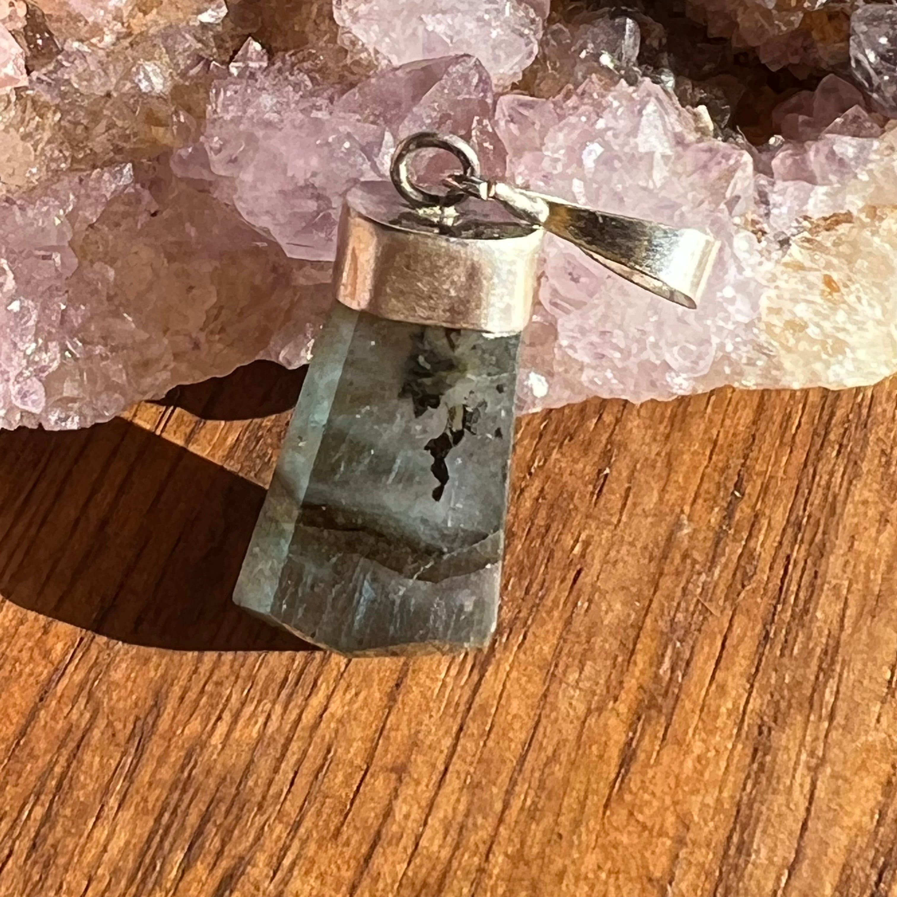 Лабрадоритов сребърен медальон M8