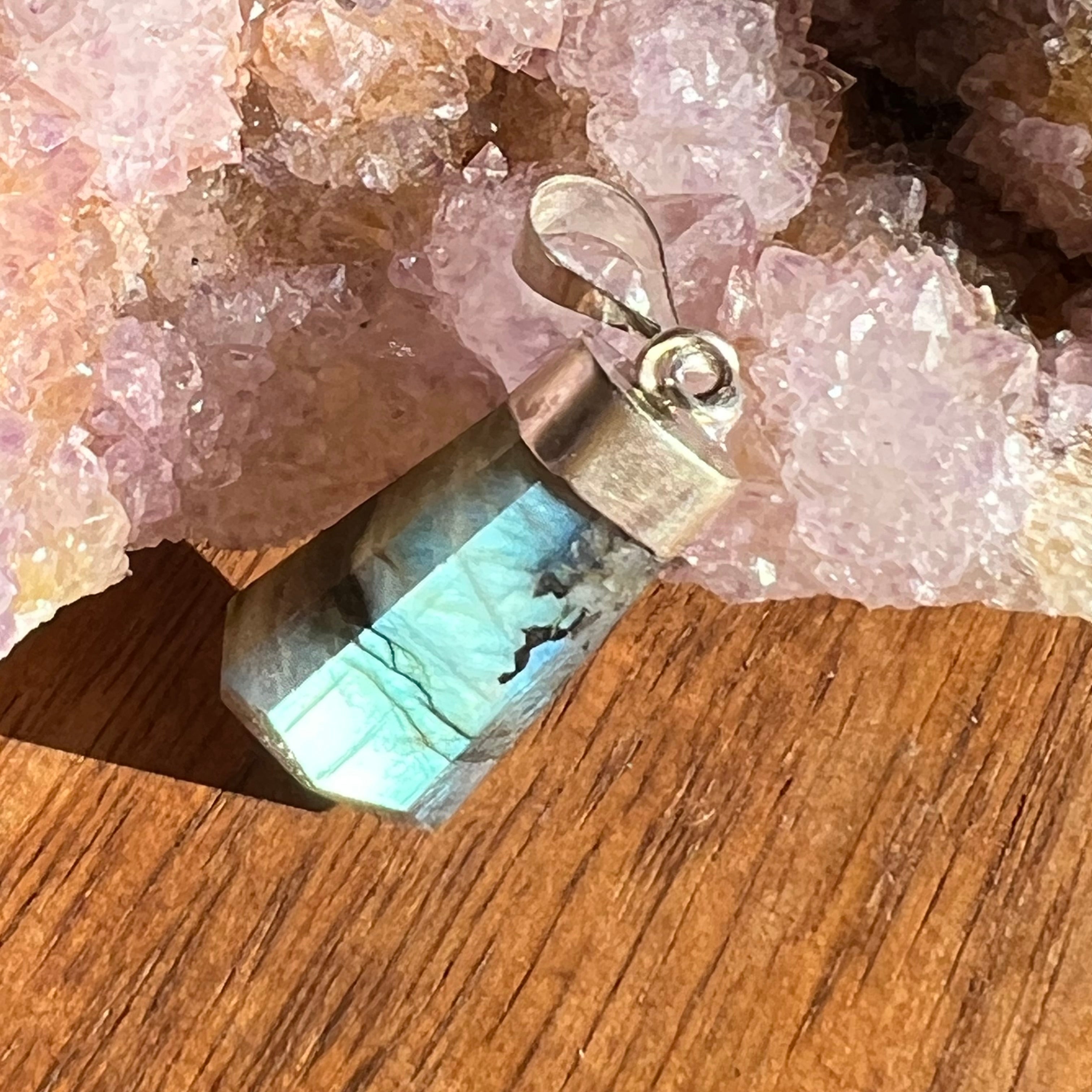 Лабрадоритът се счита за камък на ясновидството и интуицията, той е съществен камък в колекцията. Тя действа като защитен щит, помага ни да си спомним колко сме силни.