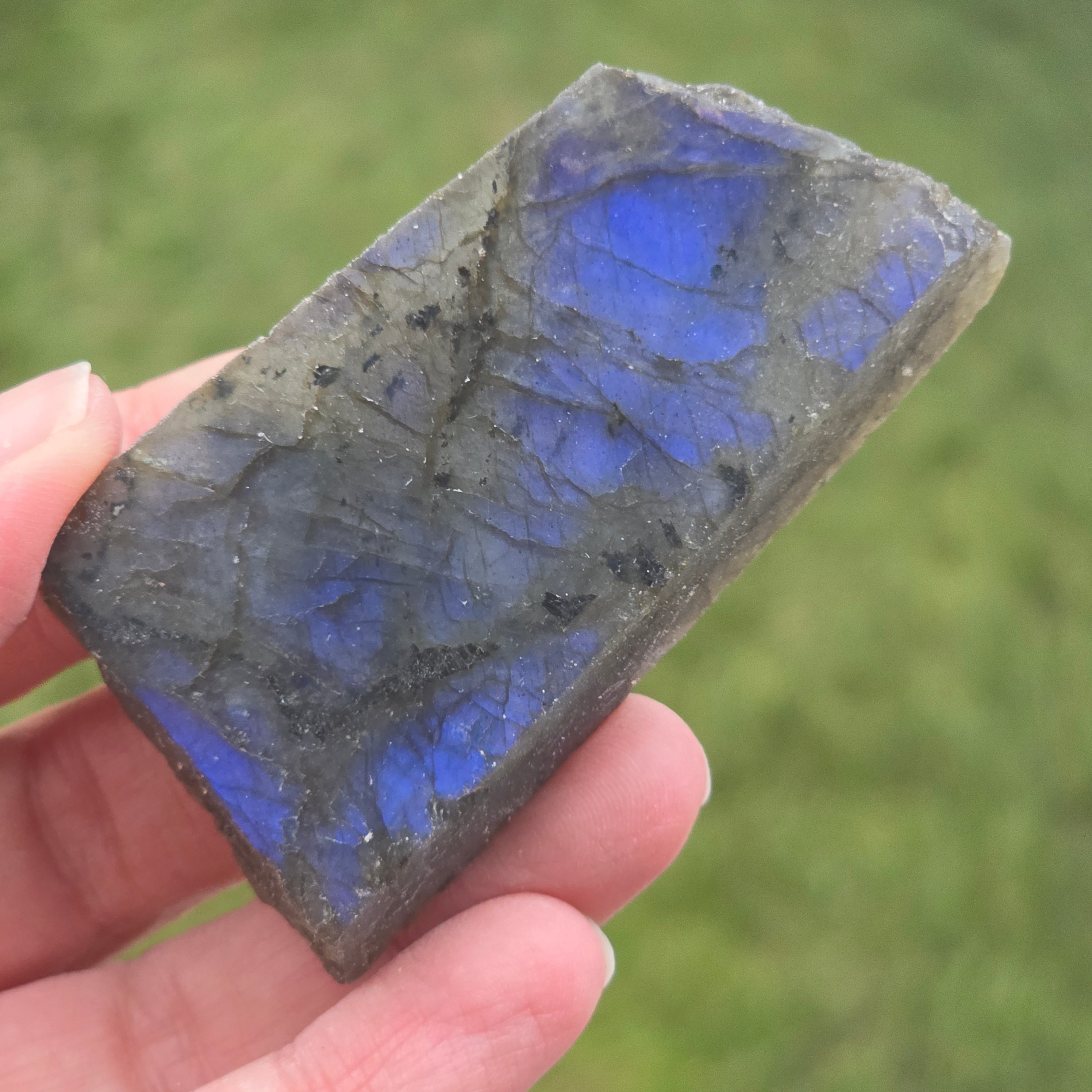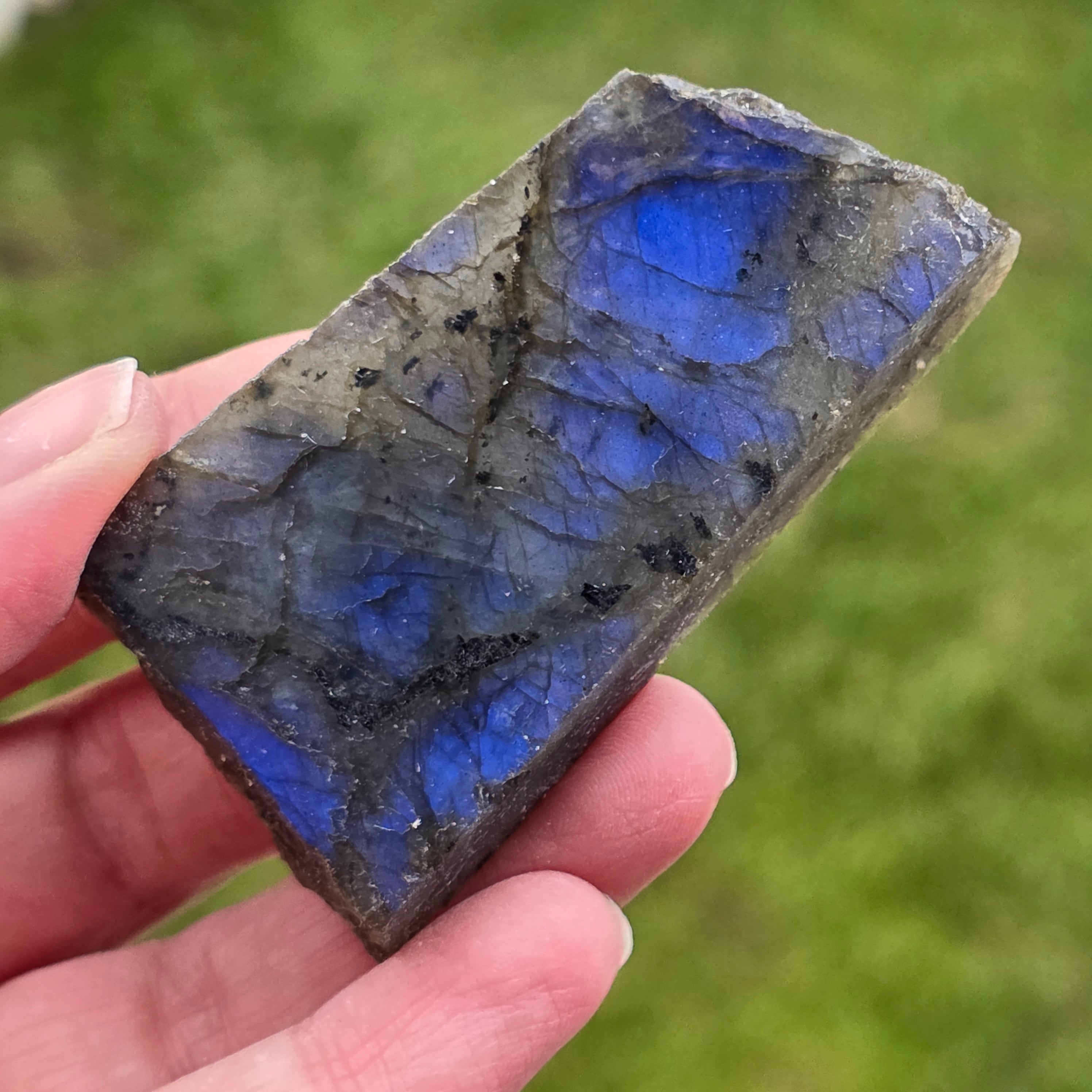 Лабрадорит, необработен камък, полиран от едната страна m17