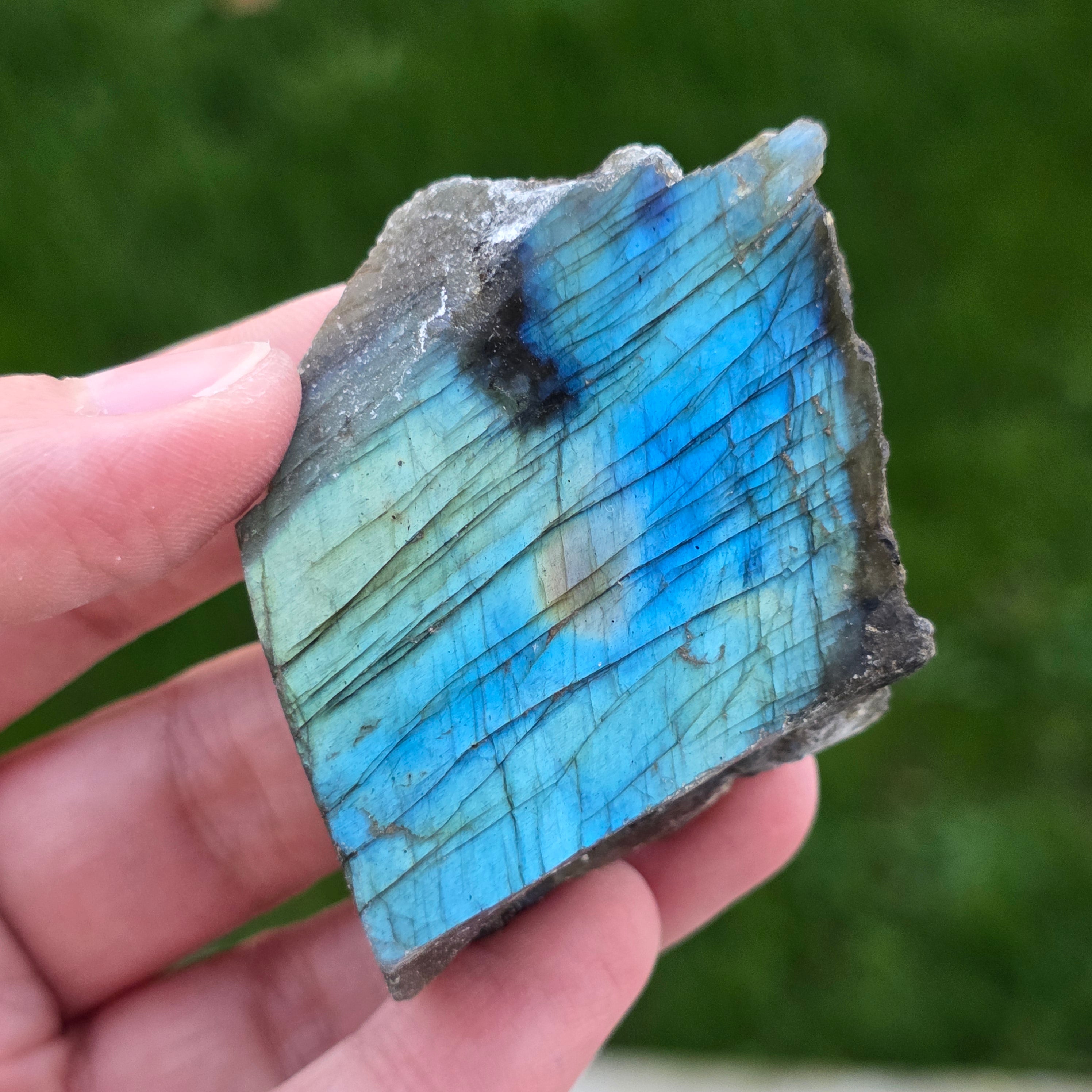 Лабрадорит, необработен камък, полиран от едната страна m9