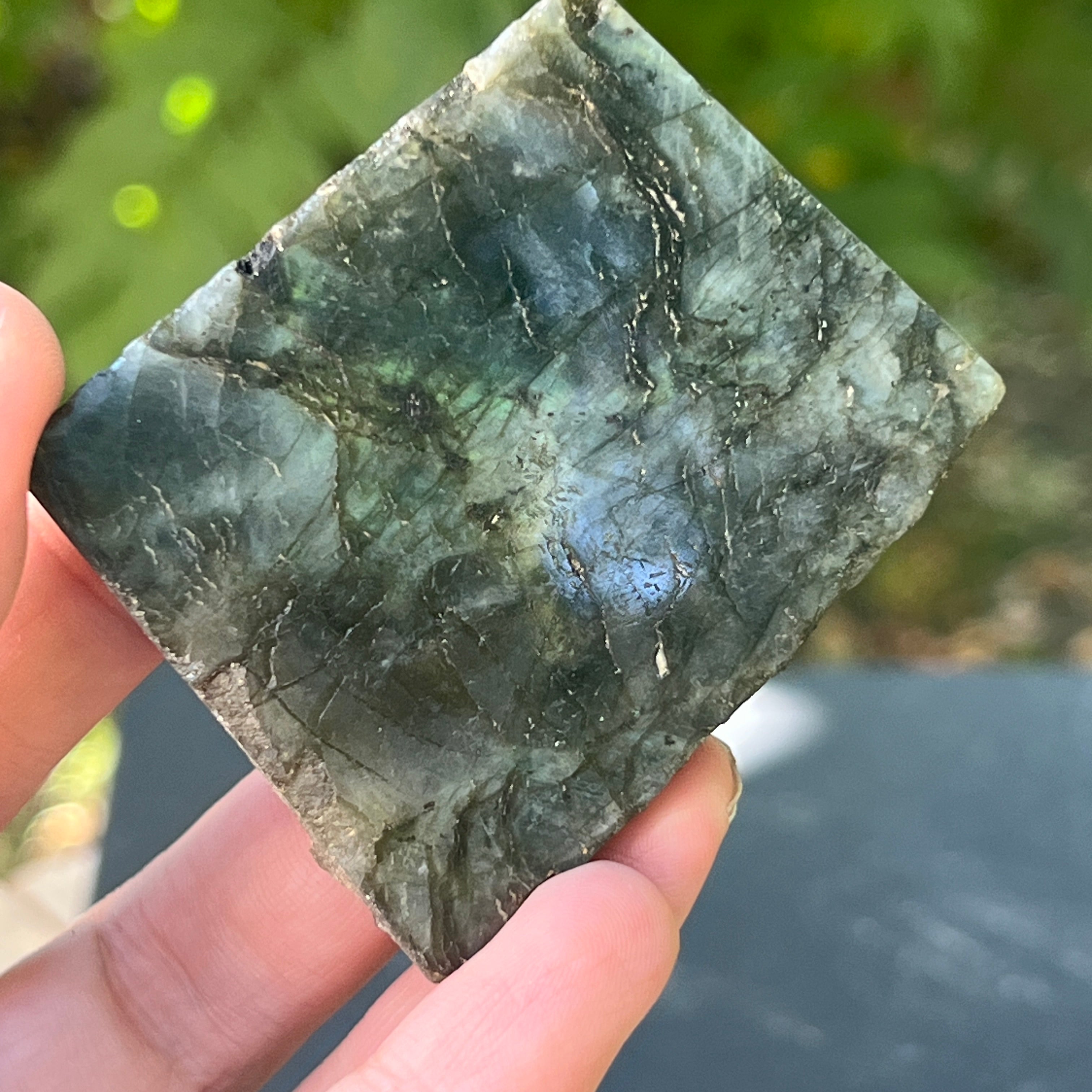 Лабрадорит, полиран груб камък от едната страна M12