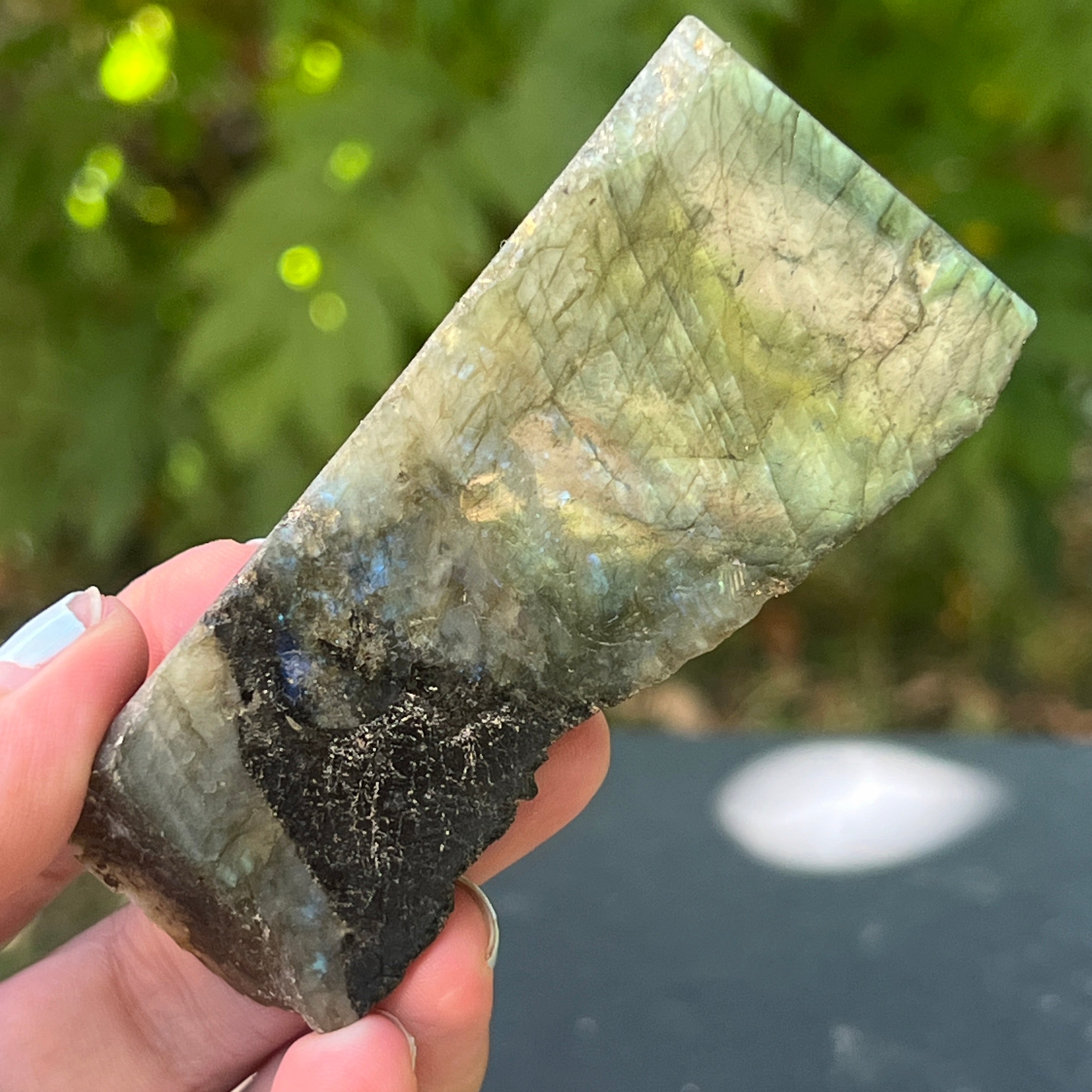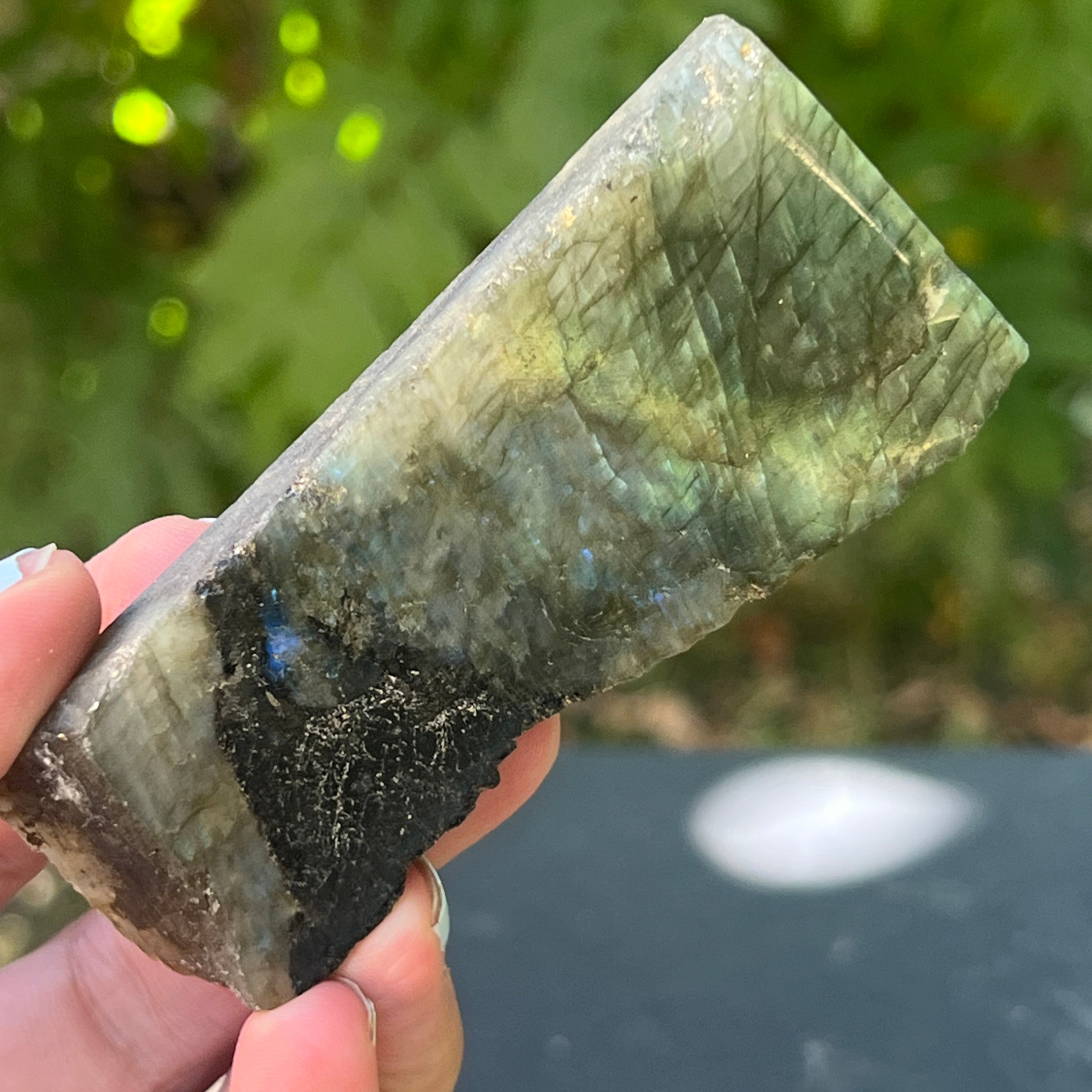 Ревюта – Лабрадорит полиран груб камък от едната страна m8