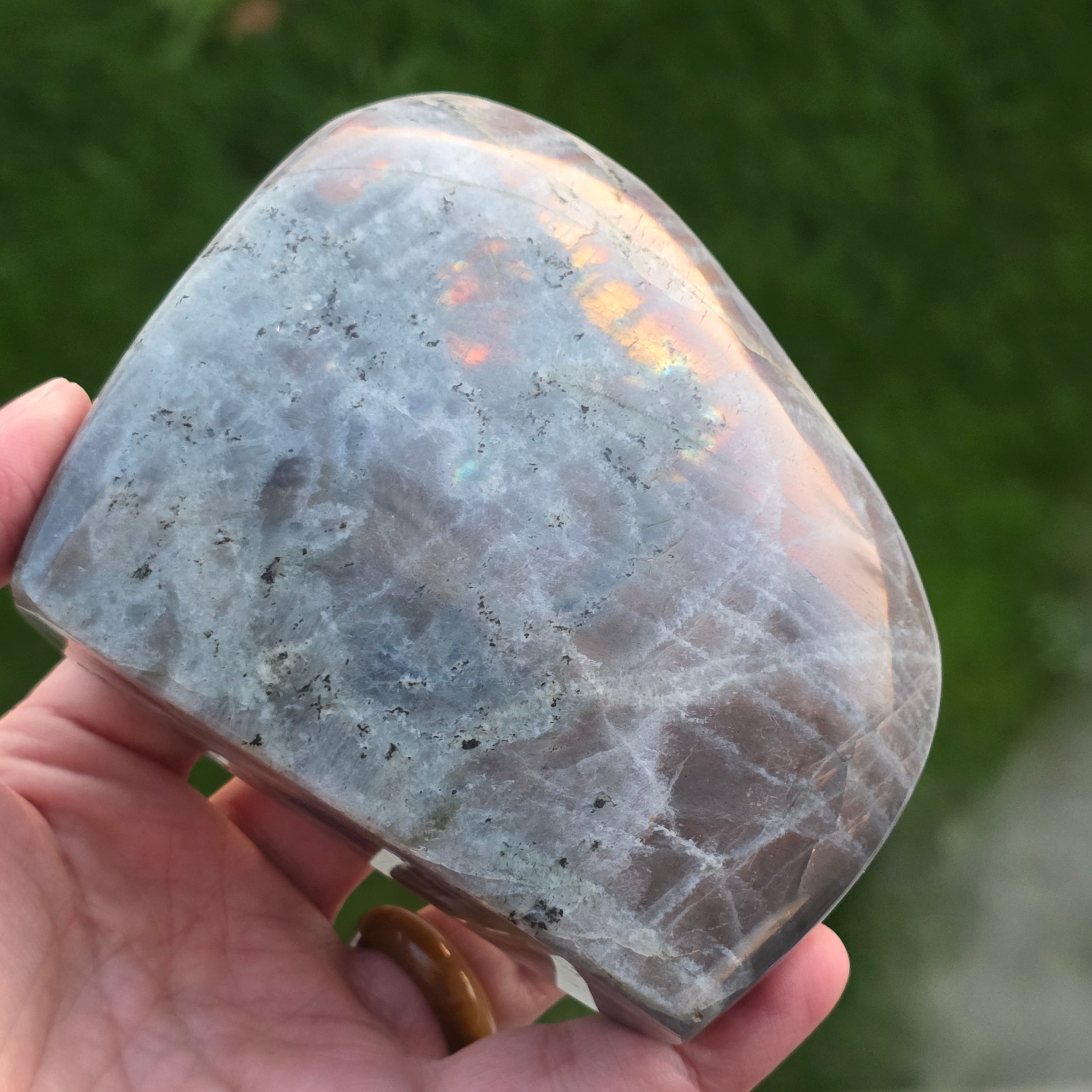 Лабрадоритът се счита за камък на ясновидството и интуицията, той е незаменим камък в колекцията. Това действа като защитен щит, помага ни да си спомним колко сме силни.