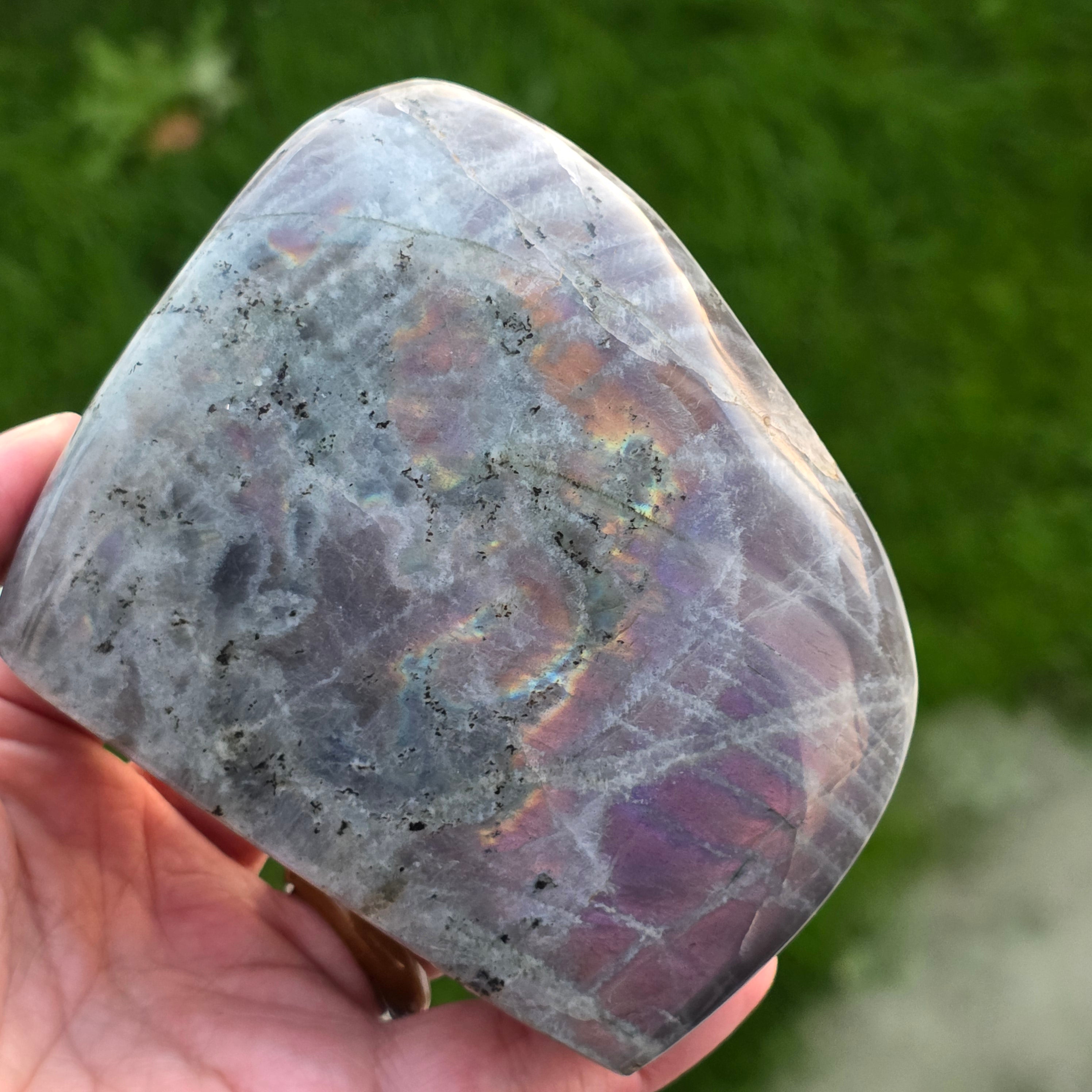 Лабрадоритът е полускъпоценен камък с игра на цветове, които се променят в зависимост от ъгъла на гледане.