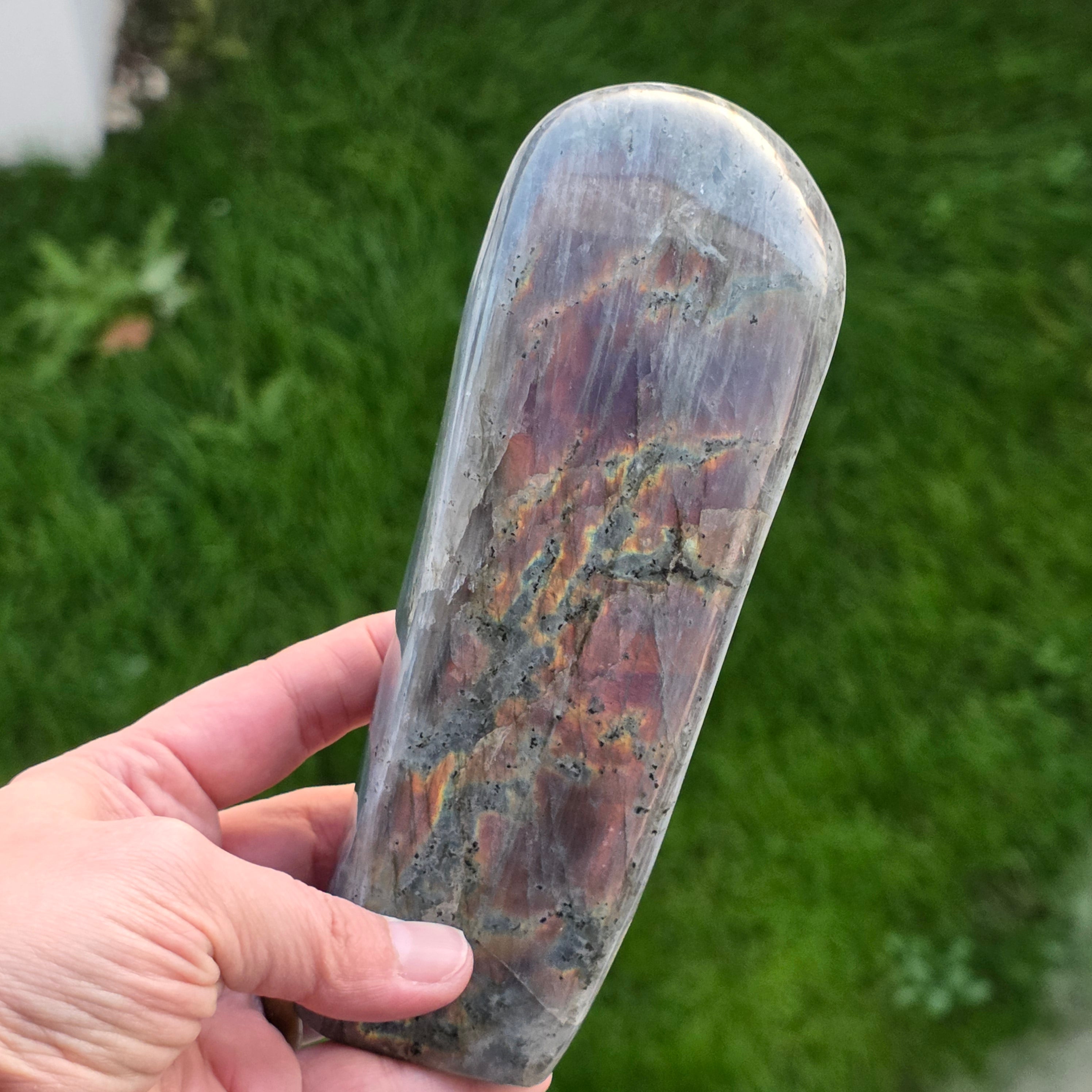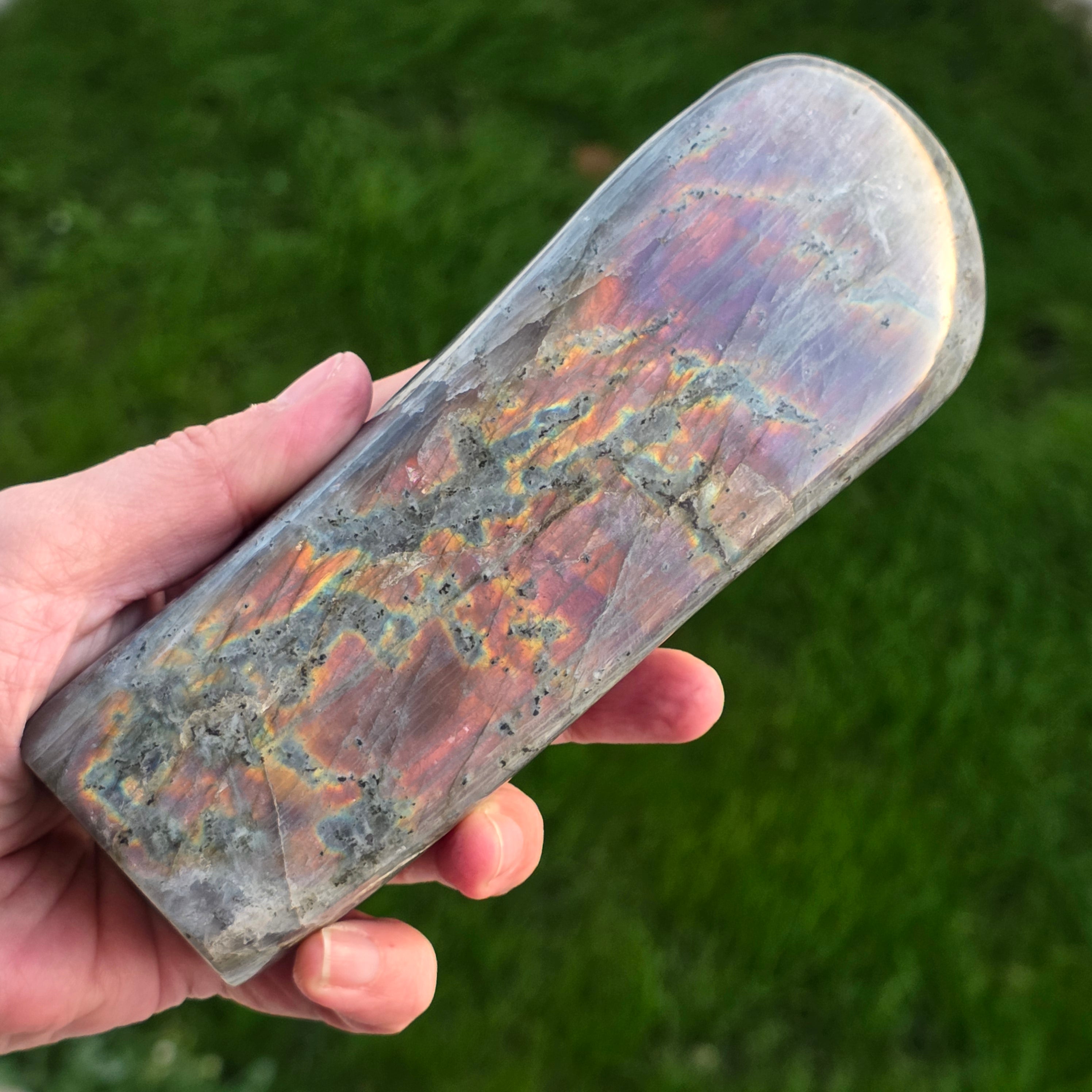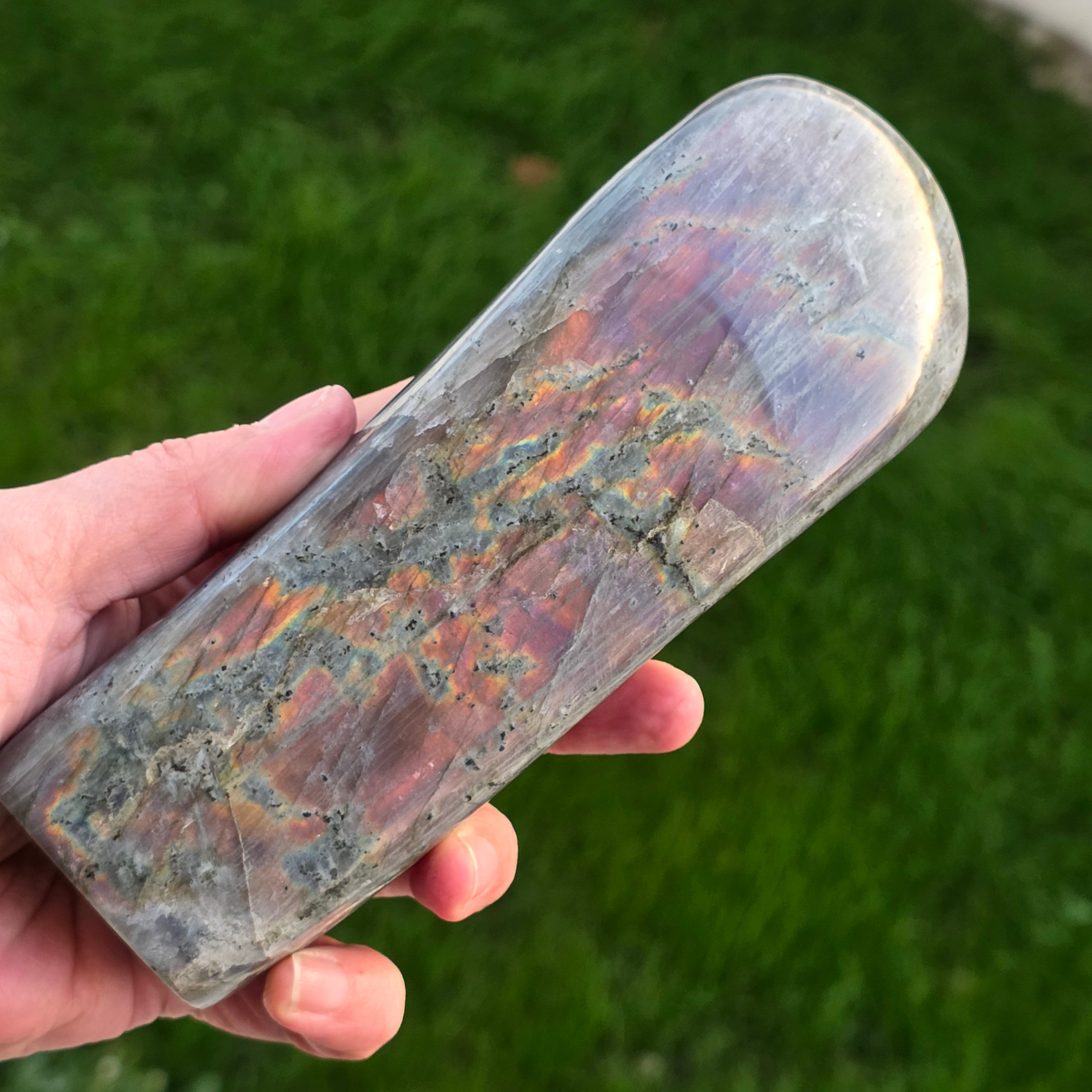Лабрадоритът се счита за камък на ясновидството и интуицията, той е незаменим камък в колекцията. Това действа като защитен щит, помага ни да си спомним колко сме силни.