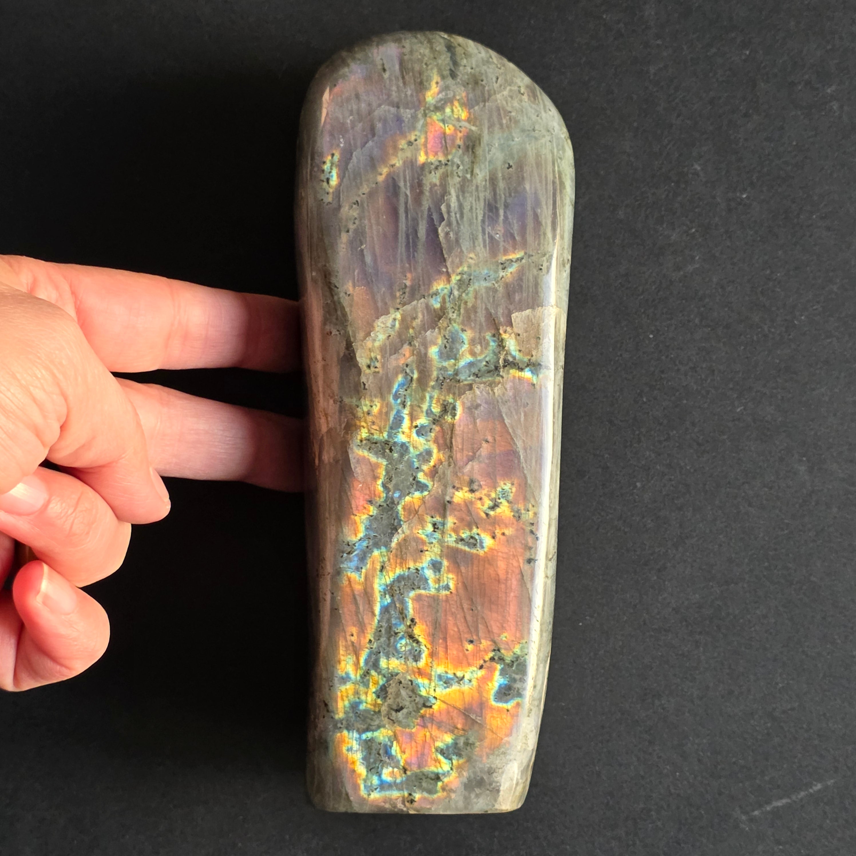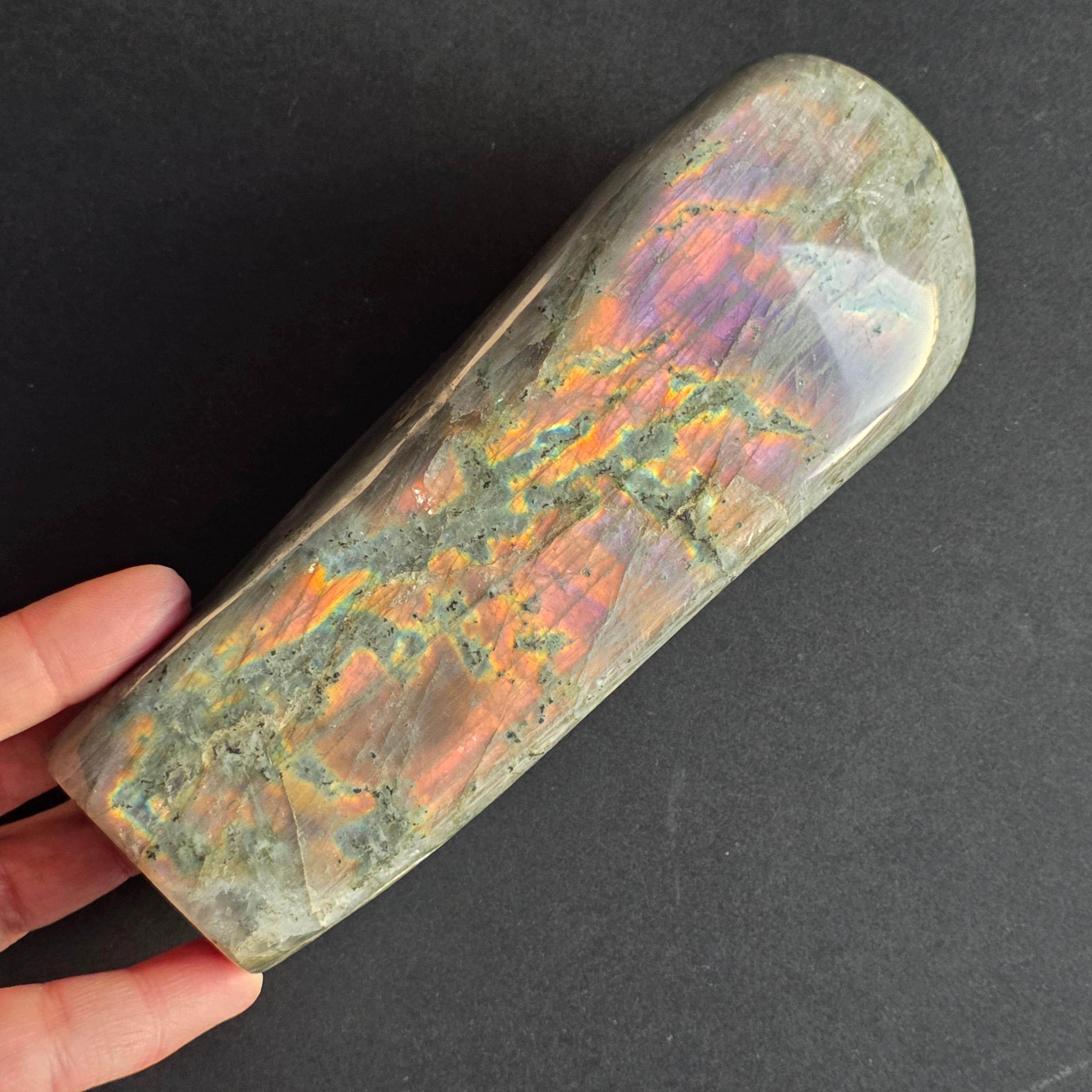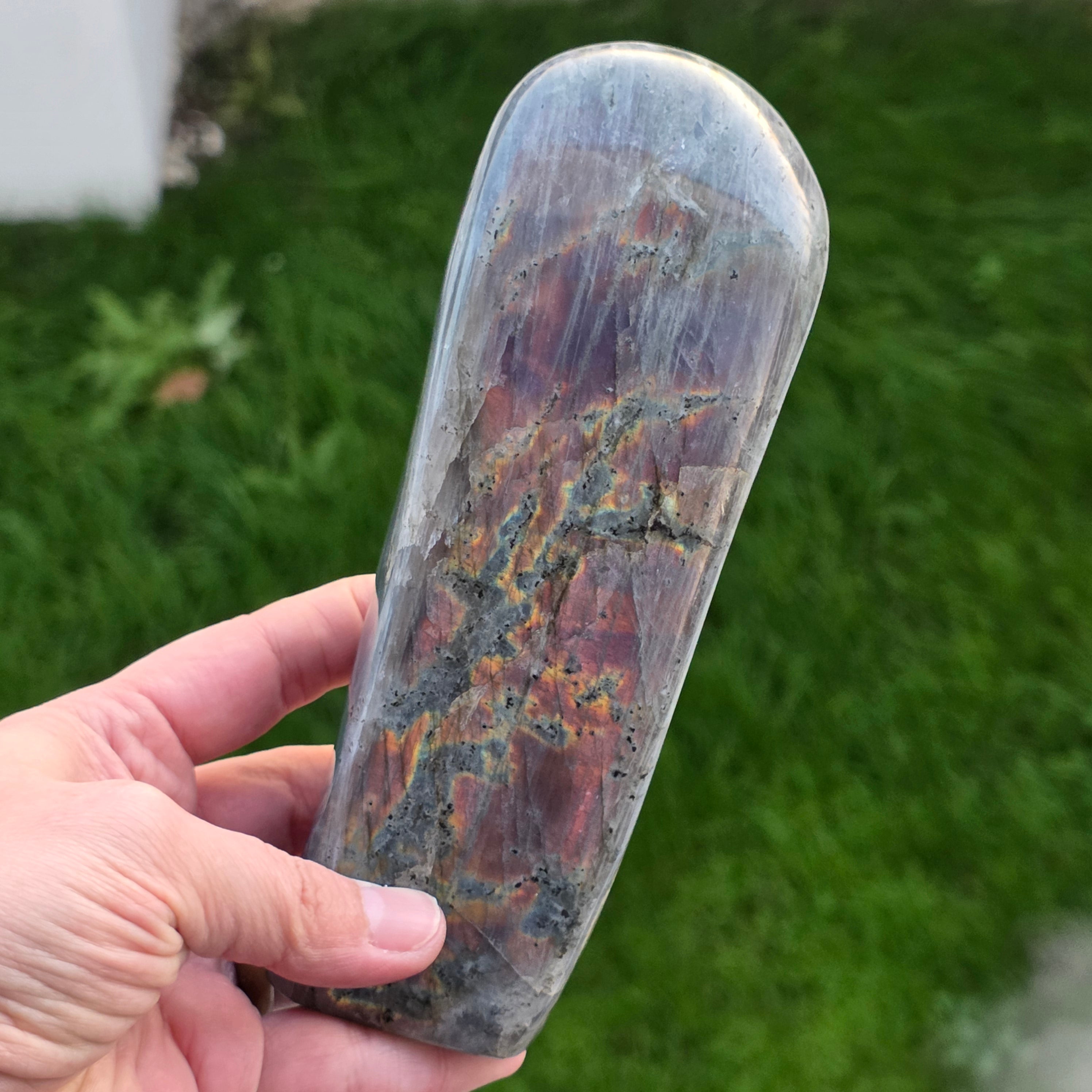 Лабрадоритът се счита за камък на ясновидството и интуицията, той е незаменим камък в колекцията. Това действа като защитен щит, помага ни да си спомним колко сме силни.