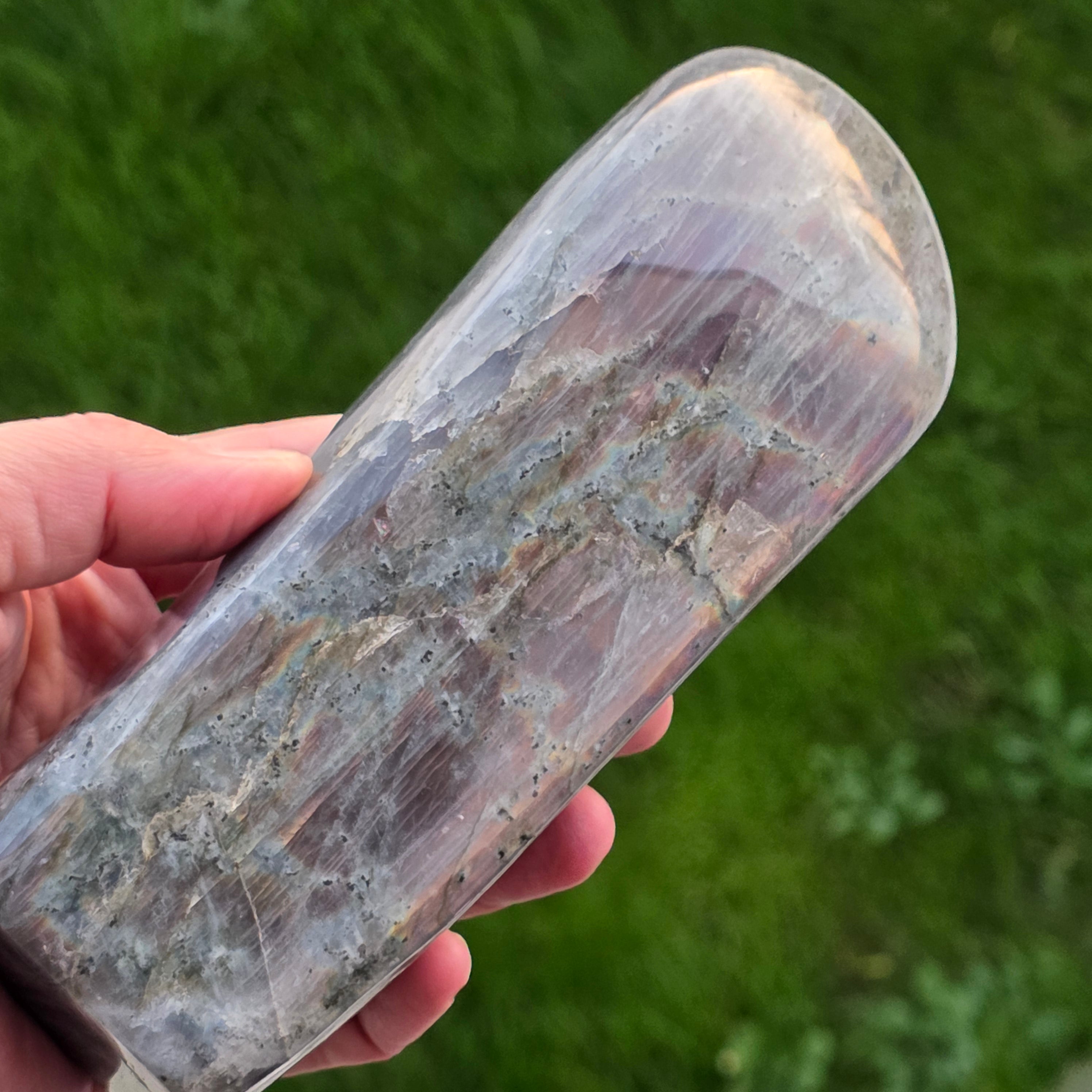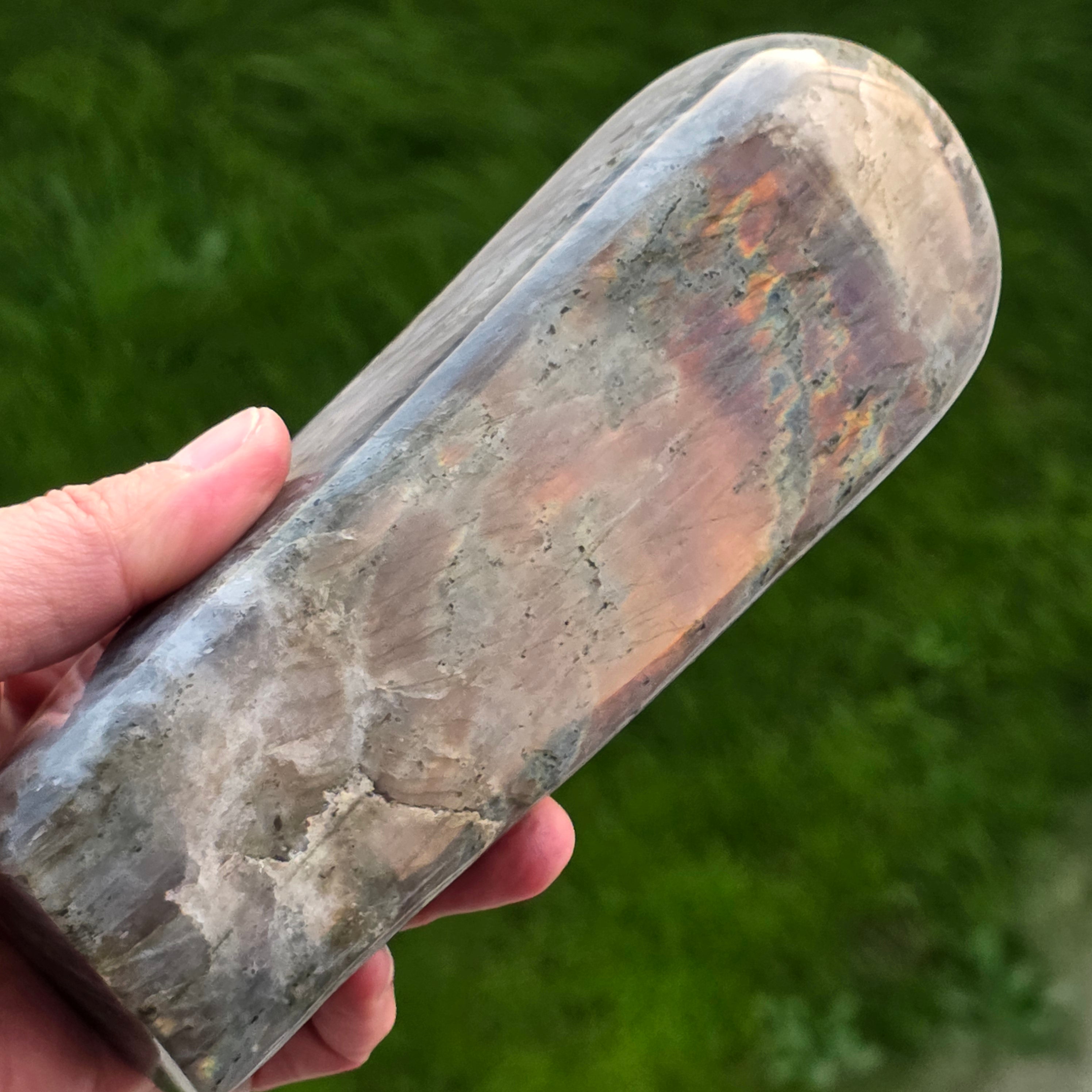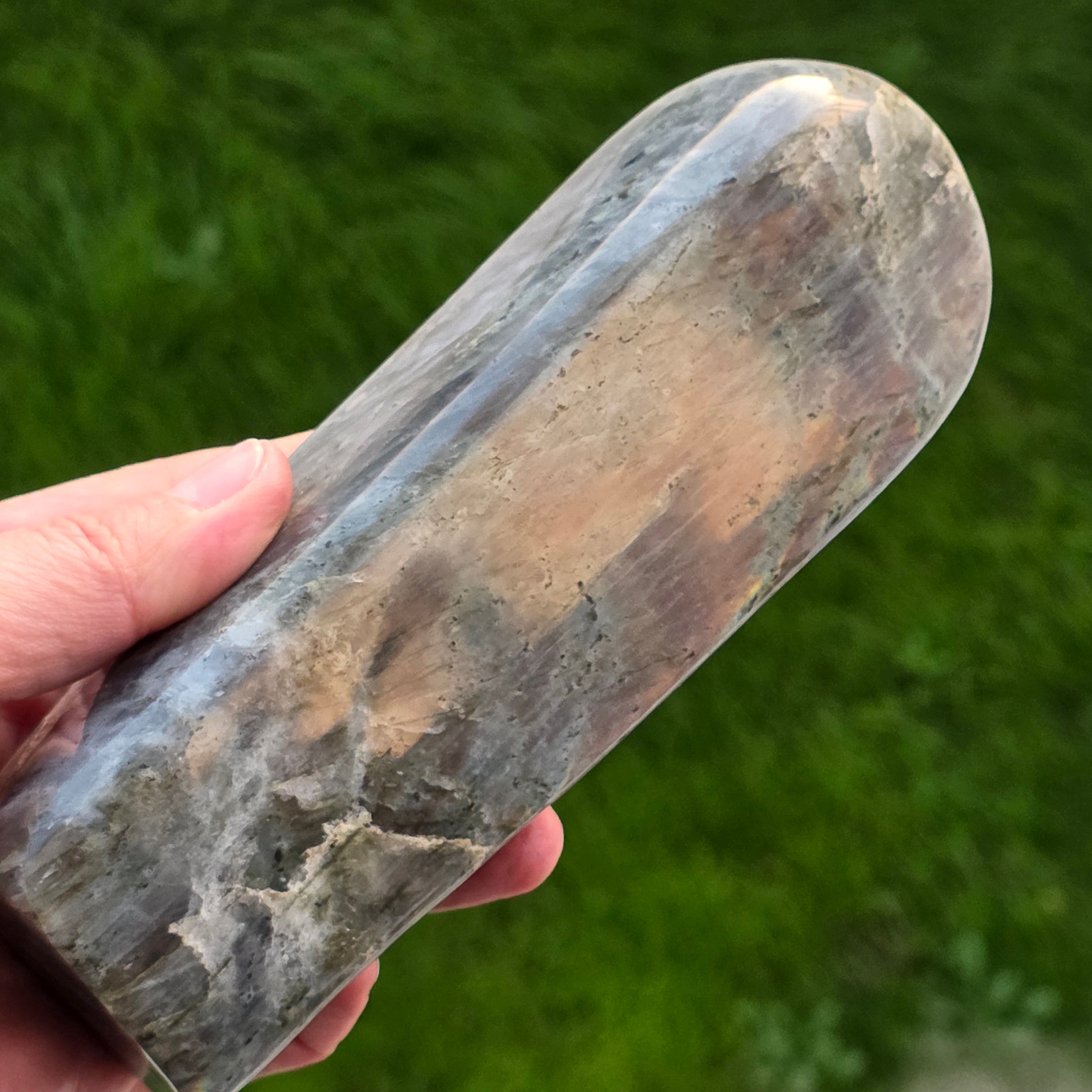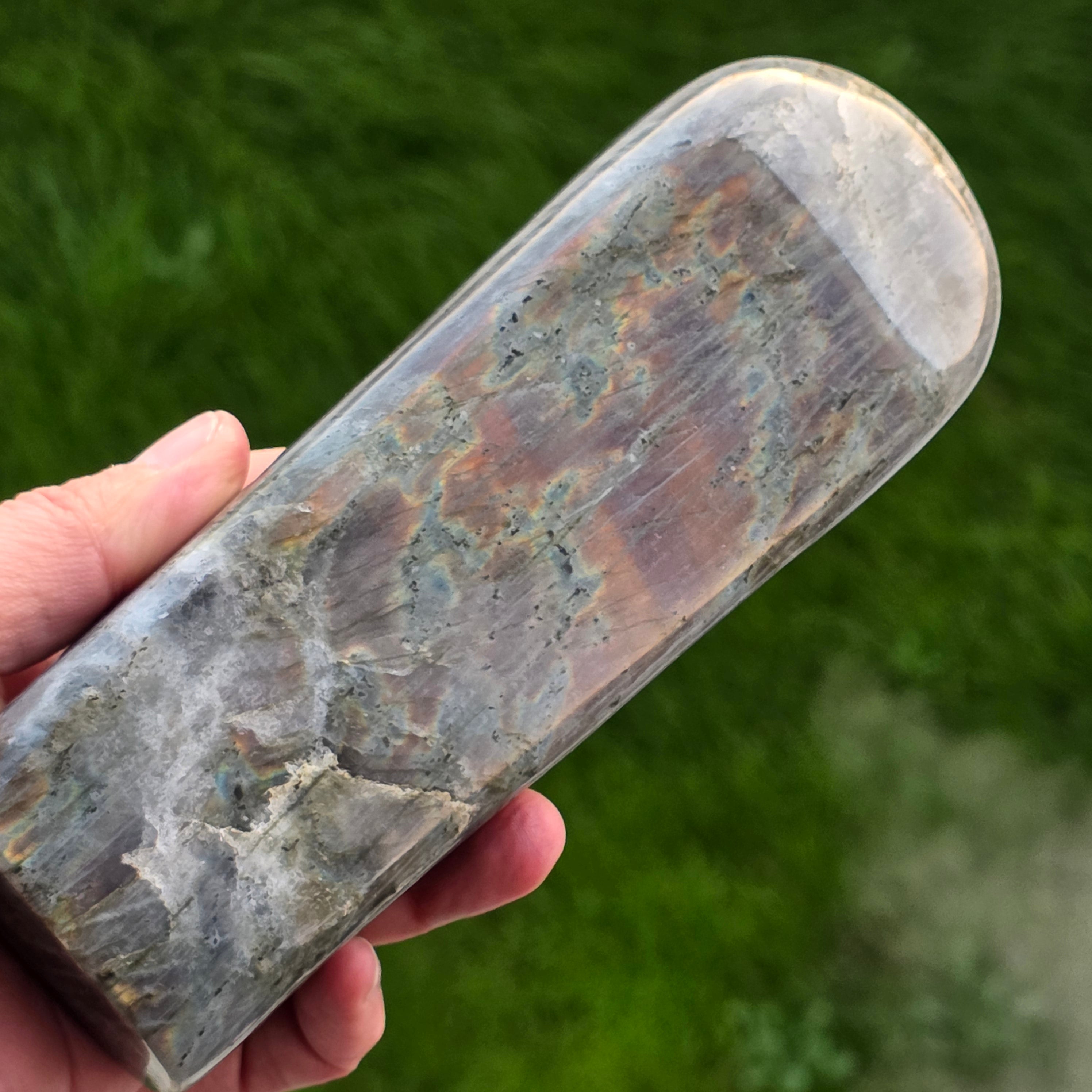 Лабрадоритът е полускъпоценен камък с игра на цветове, които се променят в зависимост от ъгъла на гледане.