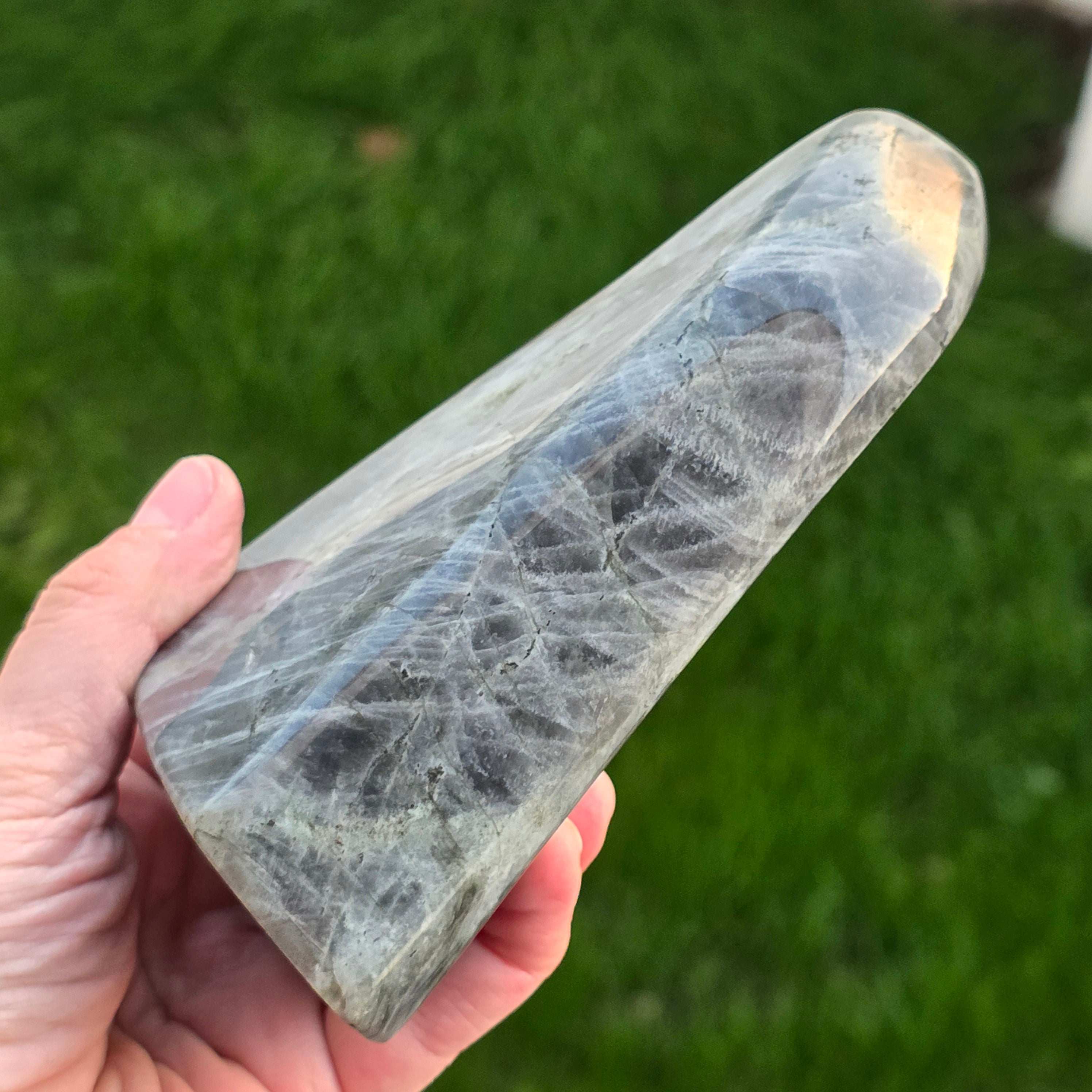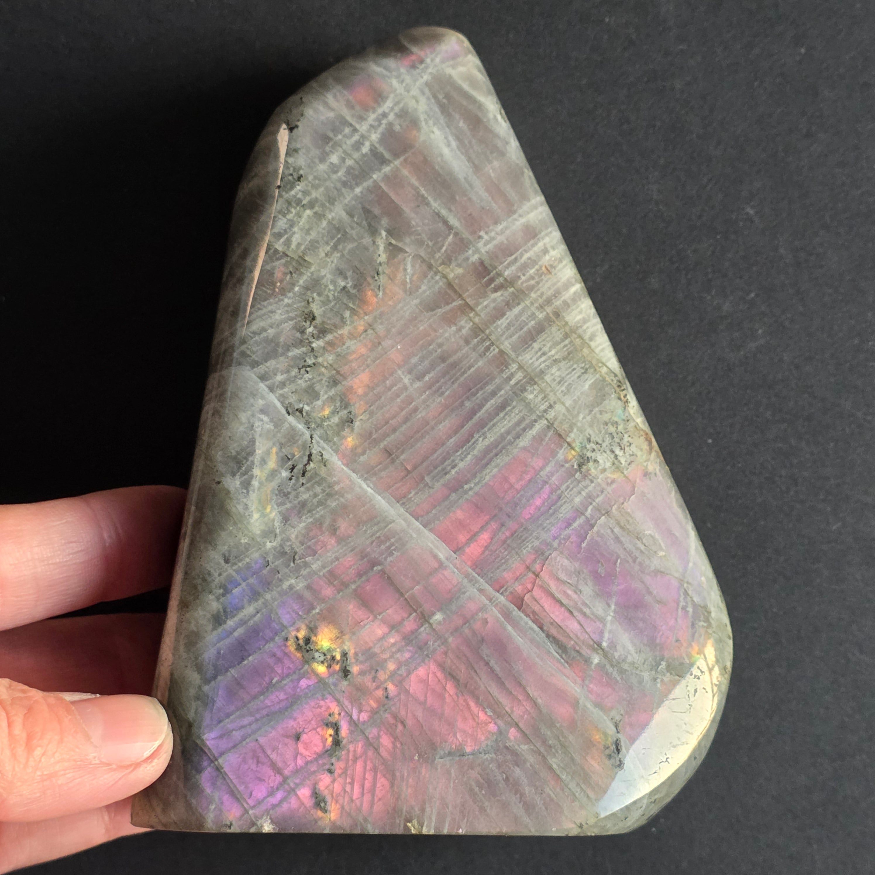 Лабрадоритът се счита за камък на ясновидството и интуицията, той е незаменим камък в колекцията. Това действа като защитен щит, помага ни да си спомним колко сме силни.
