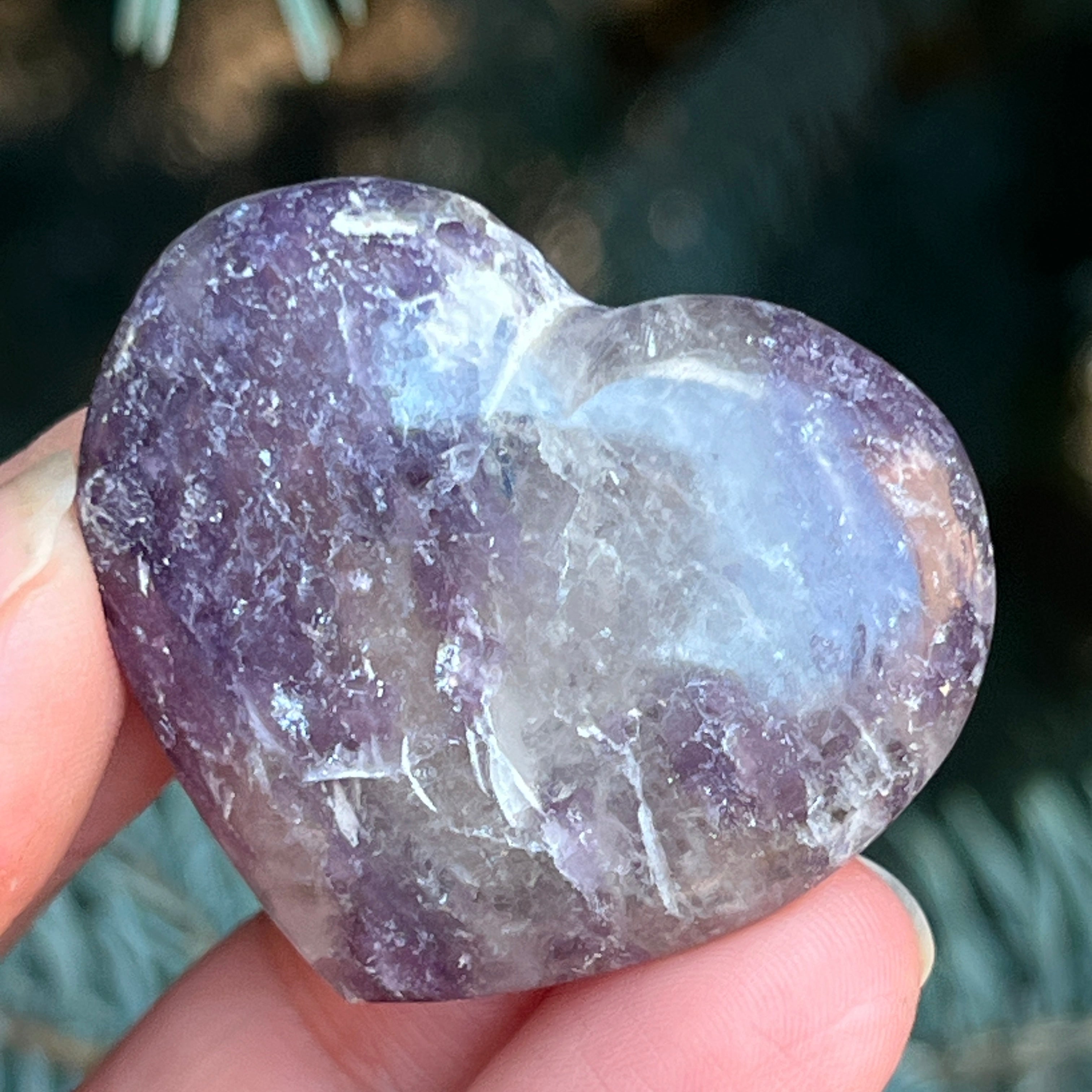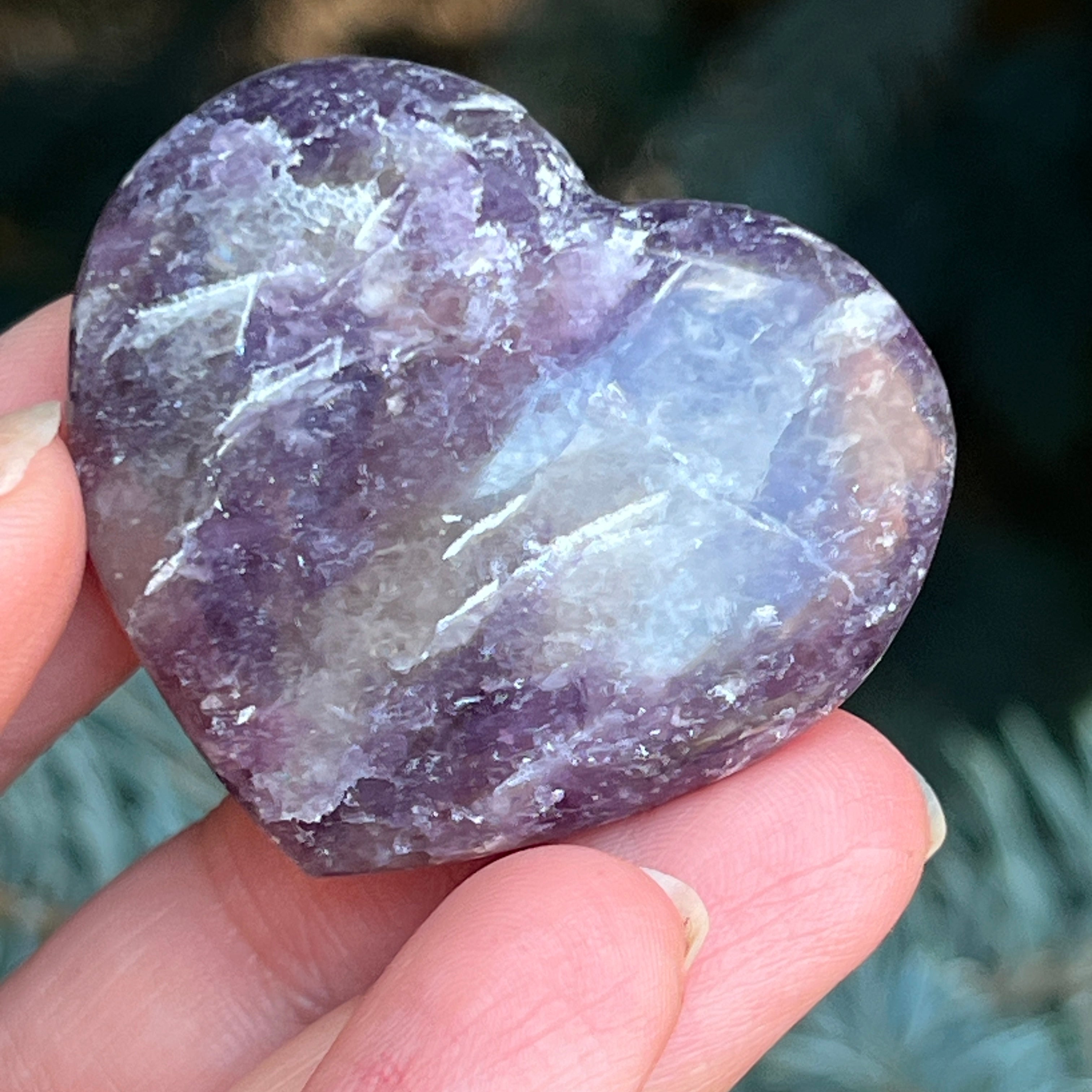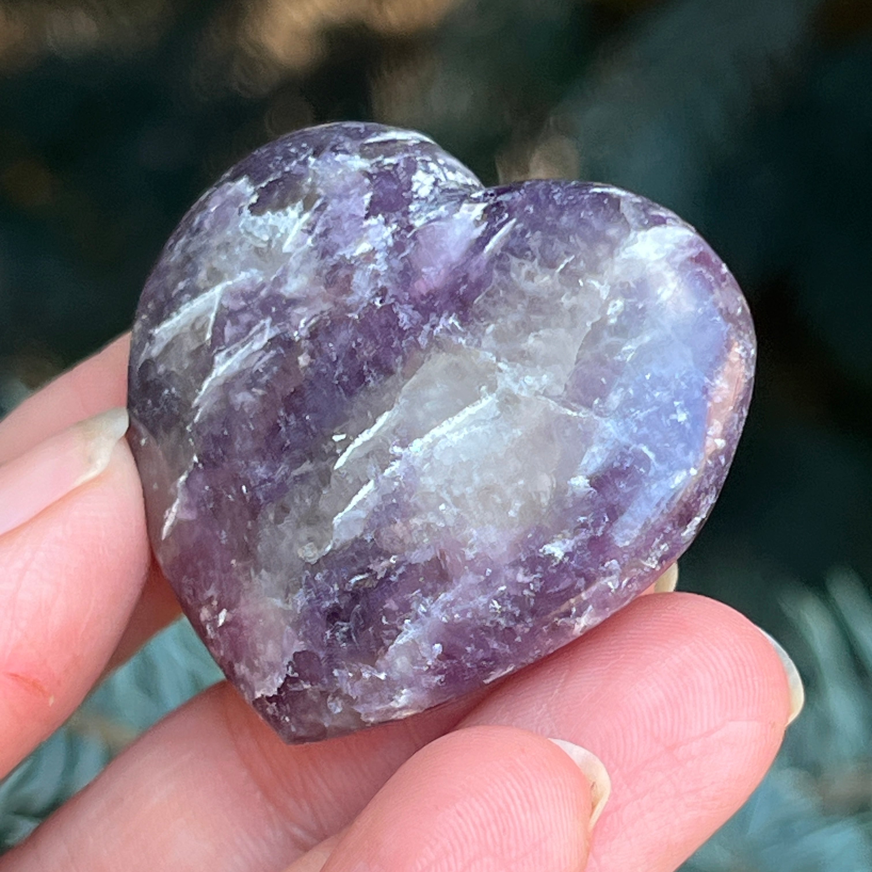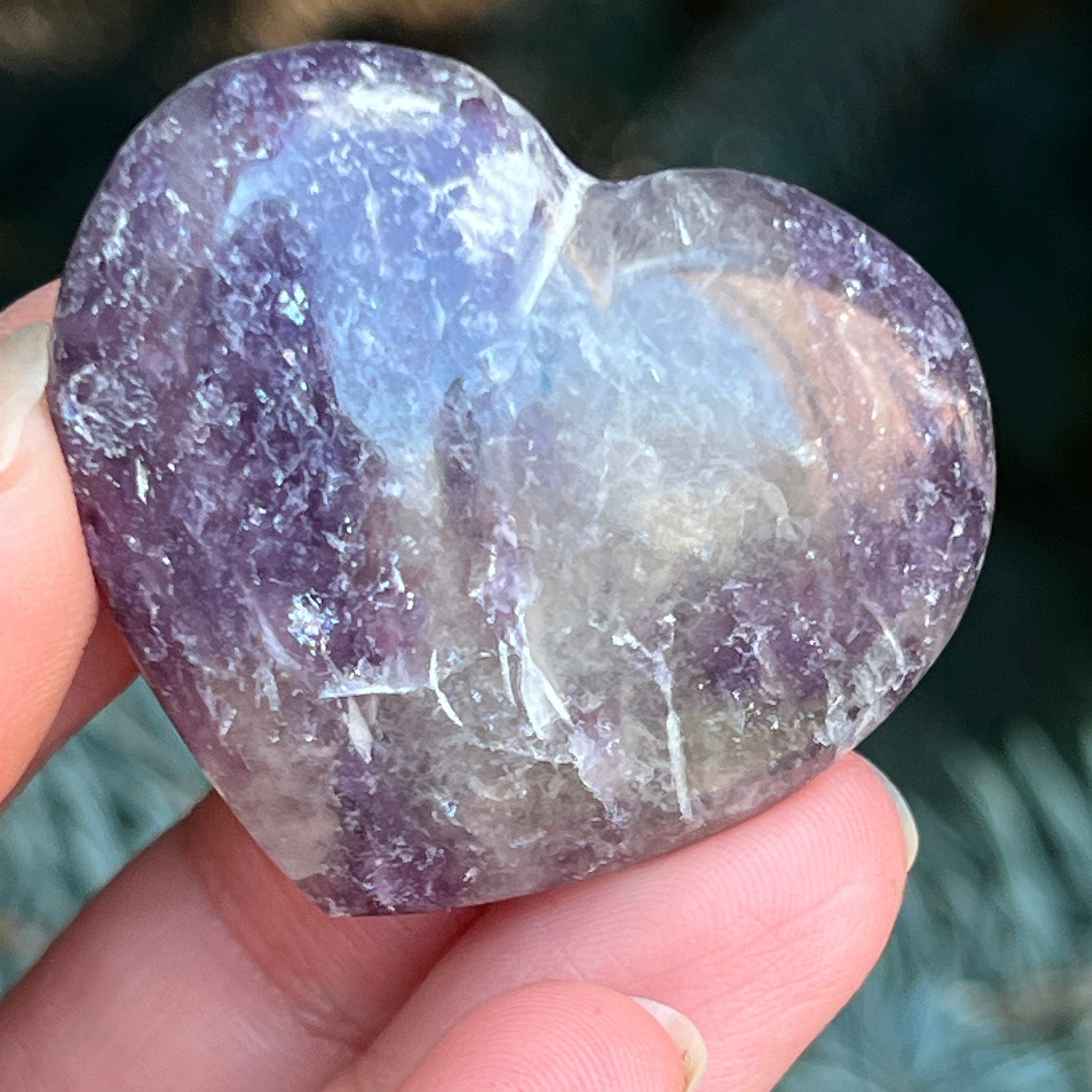 Лепидолитът благоприятства безусловната любов, състраданието и емоционалното изцеление, като улеснява откриването и пречистването на сърцето от отрицателни емоции, като болка, тъга или обиди.