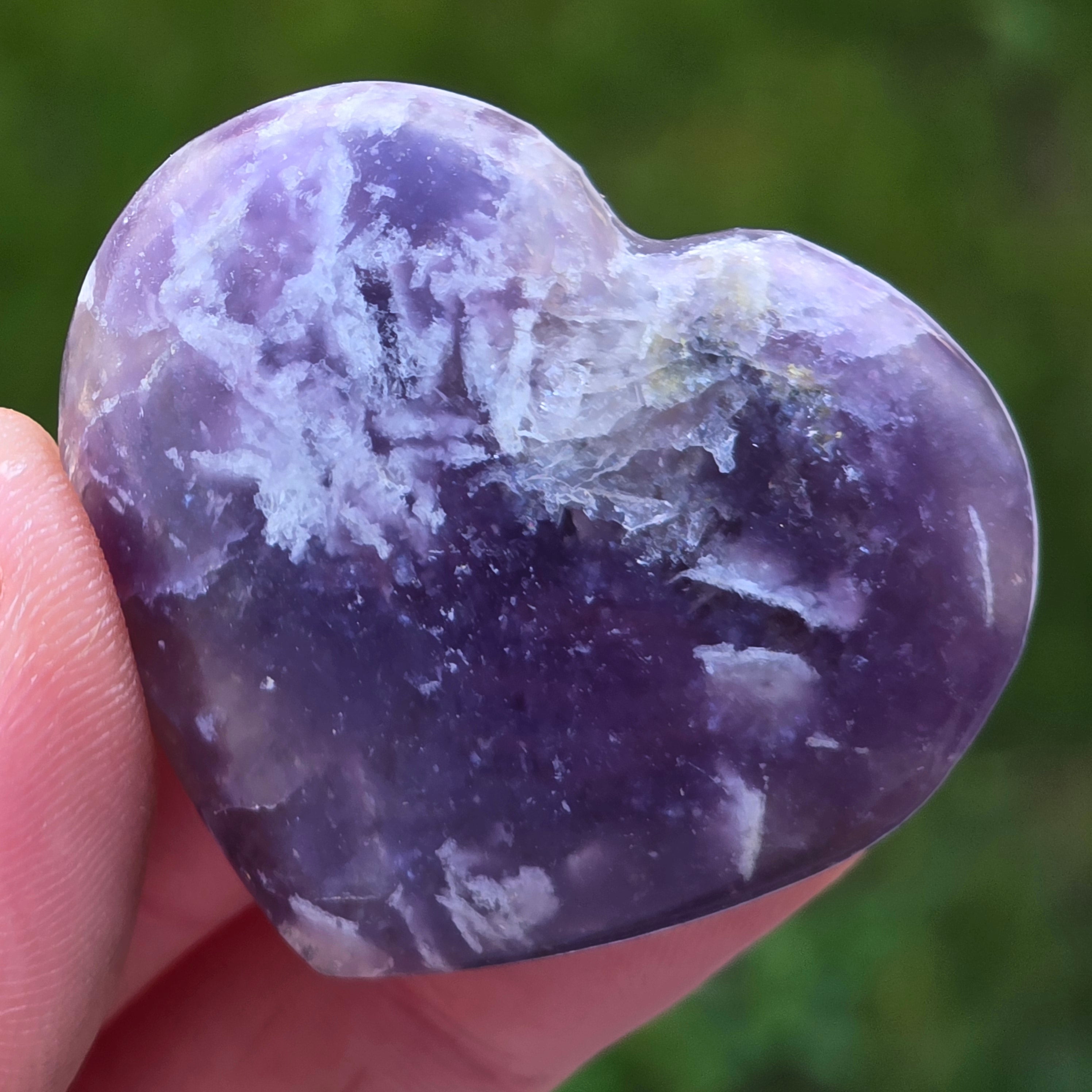 Лепидолитът благоприятства безусловната любов, състраданието и емоционалното изцеление, като улеснява отварянето и прочистването на сърцето от негативни емоции, като болка, тъга или обиди.