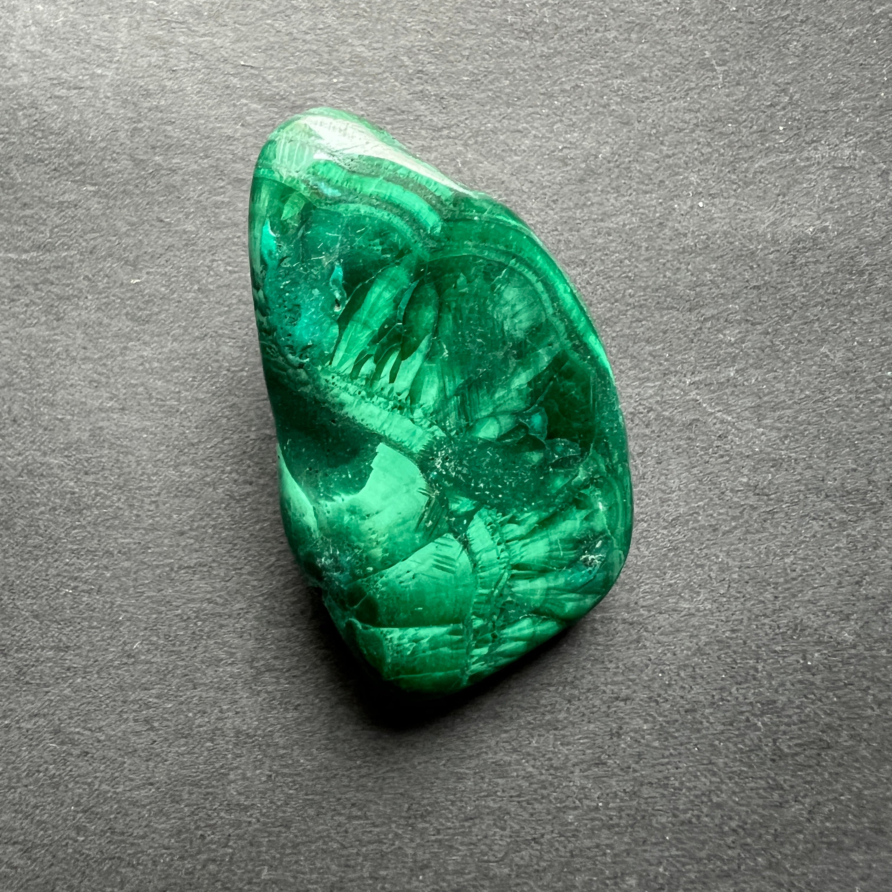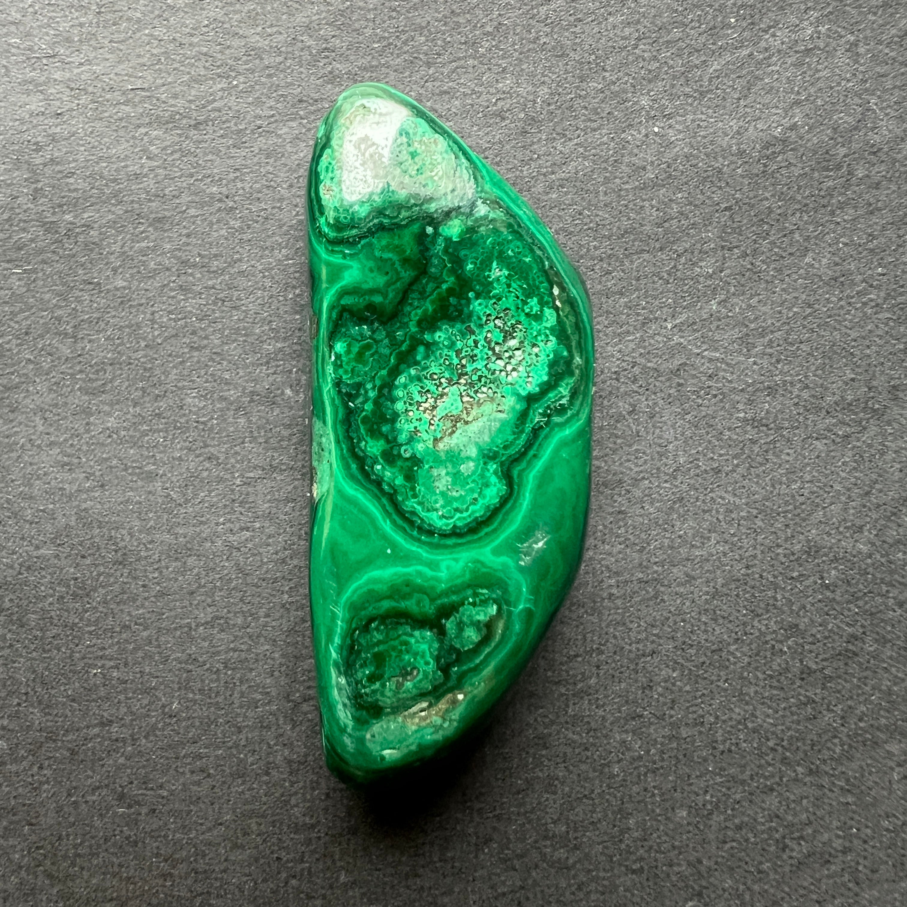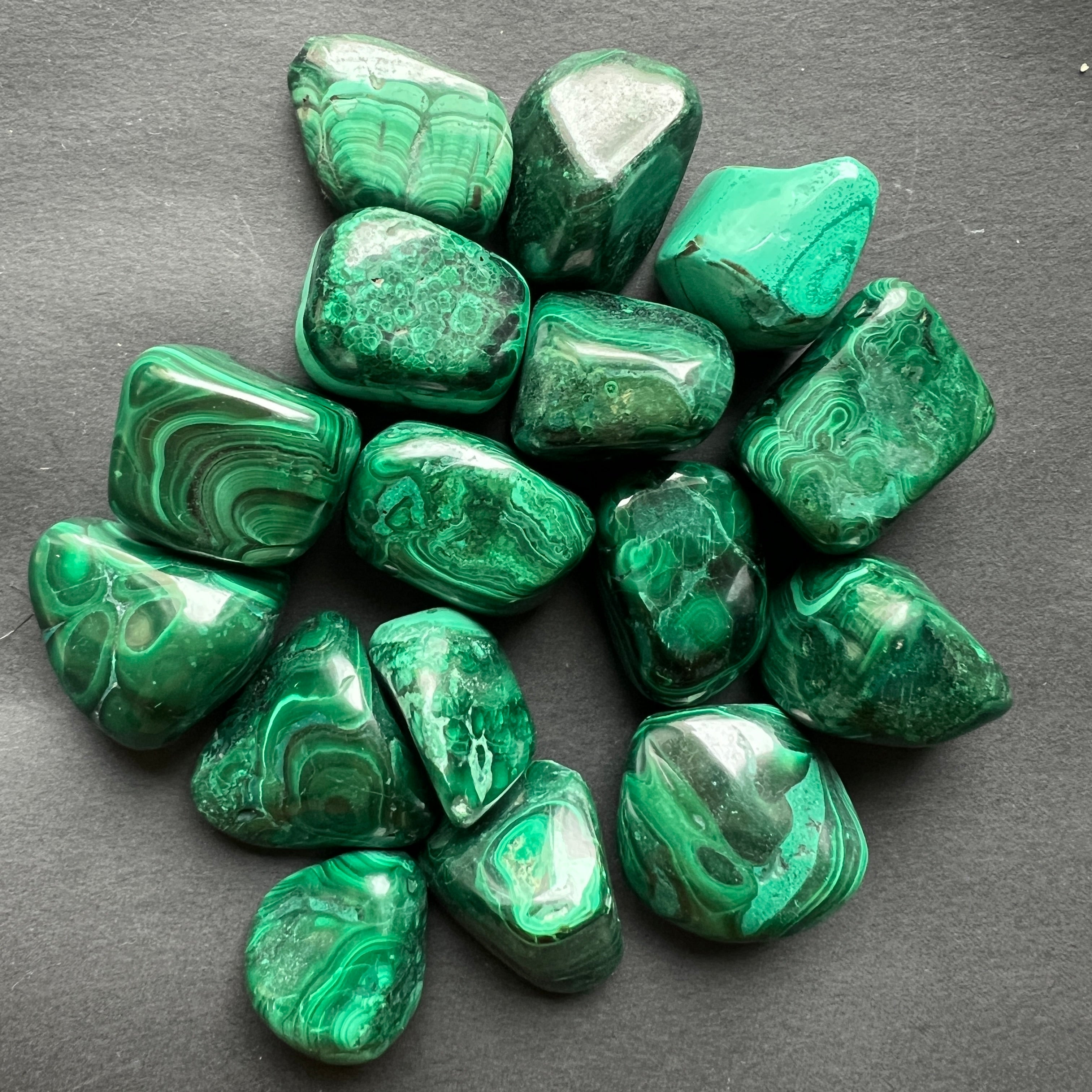 Малахитов мини конго валцован камък, размери между 2.5 - 5 см. Моля, изберете желания размер. Цената се отнася за едно парче.