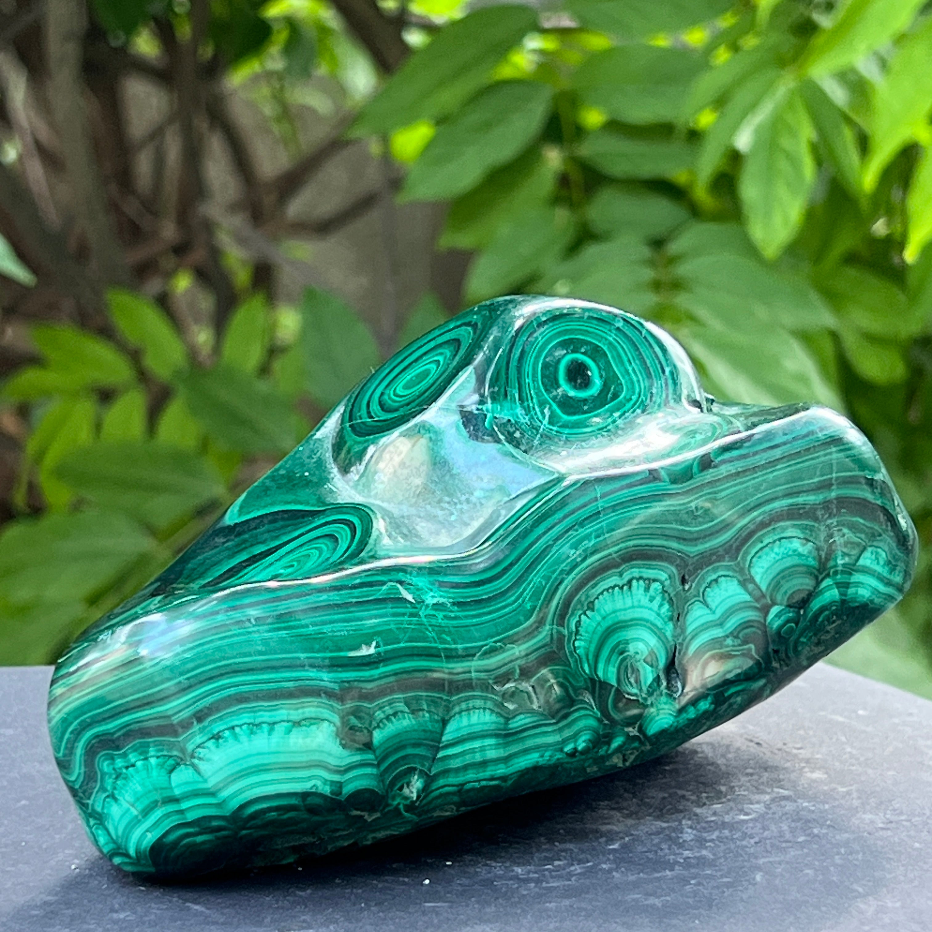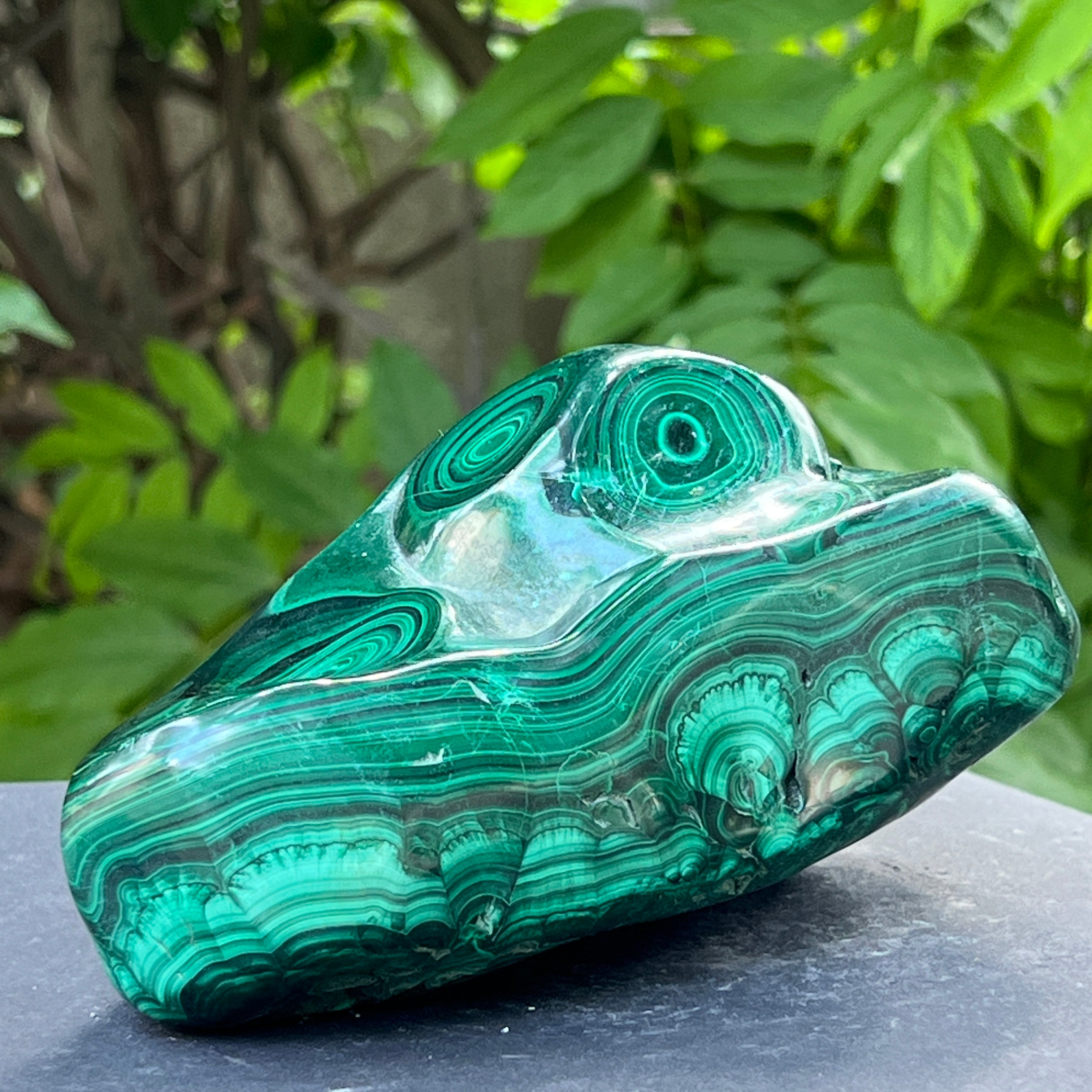 Малахитът е полускъпоценен камък, особено свързан със сърдечната чакра, позволявайки на енергиите да протичат свободно през тази чакра. Малахитът може да помогне за излекуване на емоционална травма и постигане на емоционален баланс.