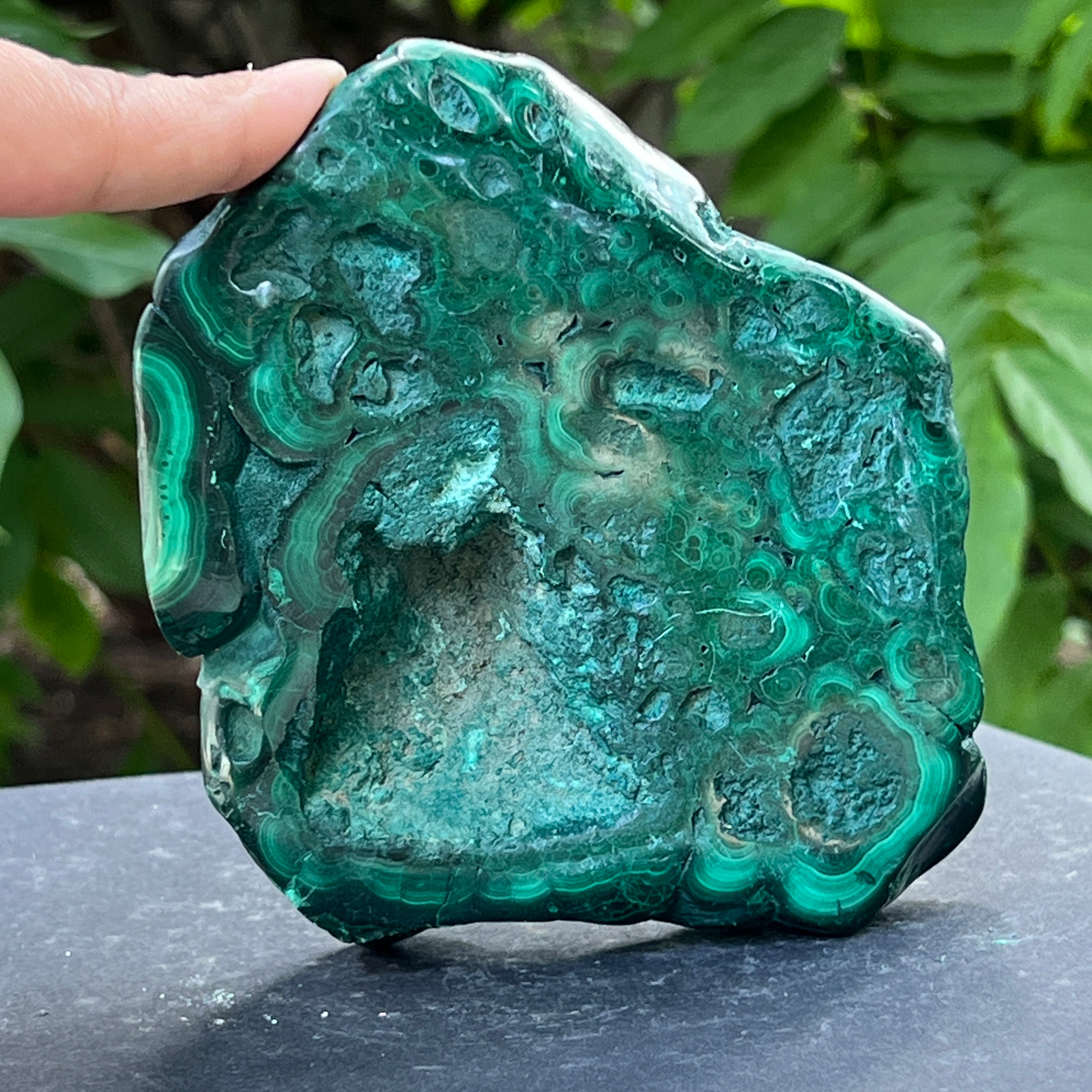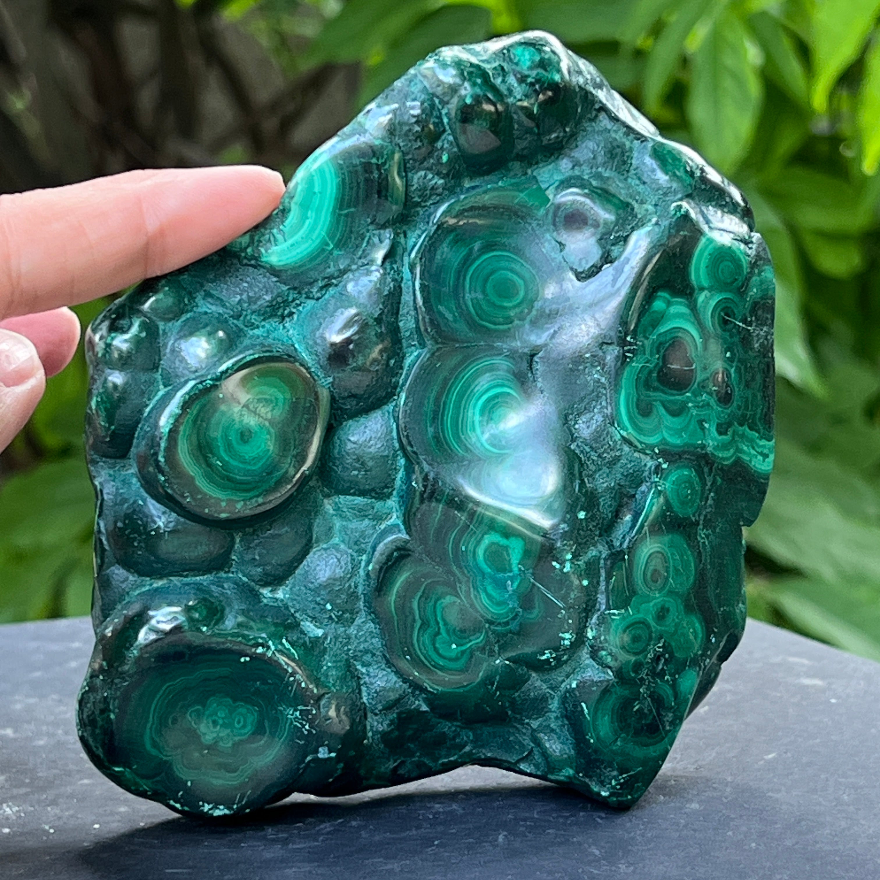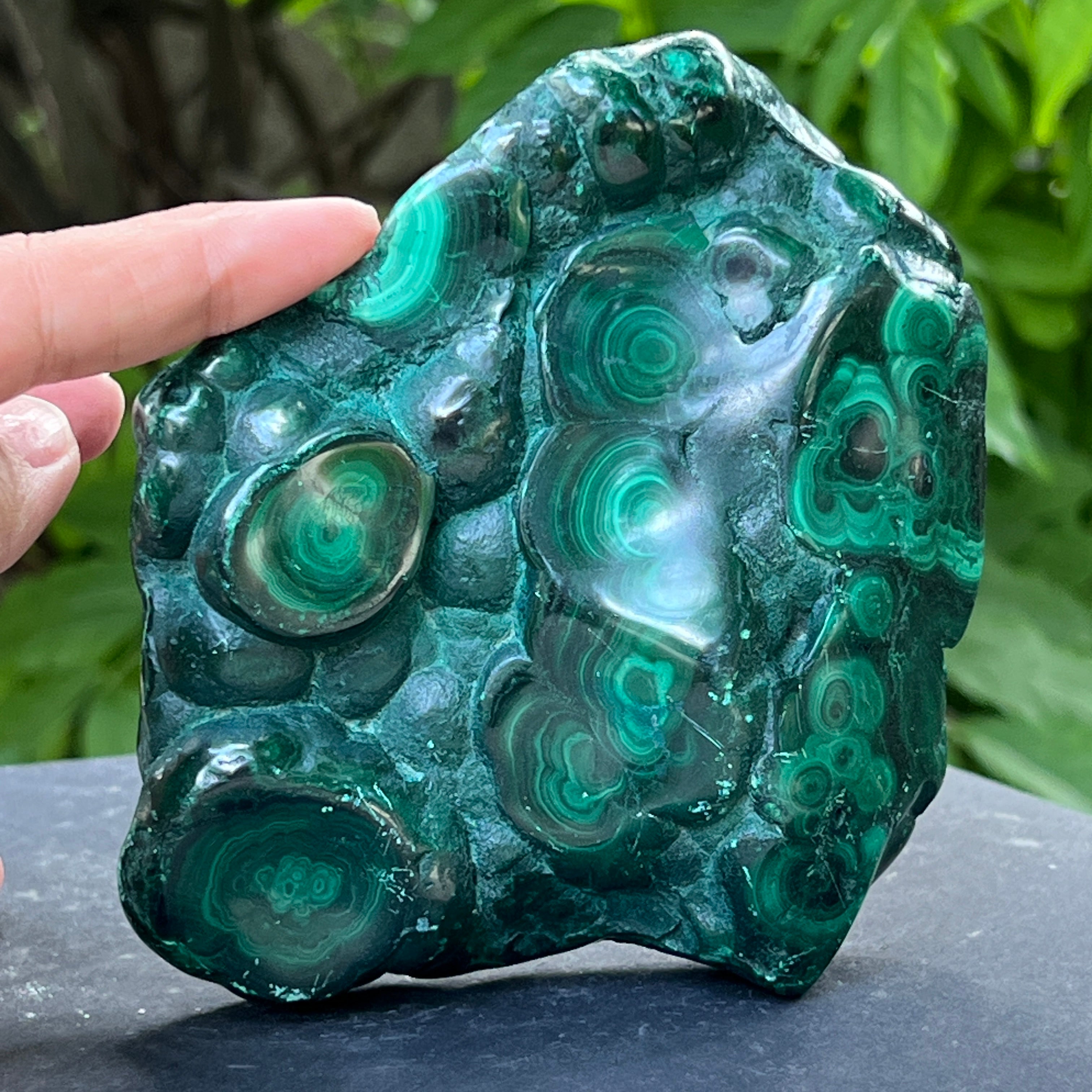 Малахитът е полускъпоценен камък, особено свързан със сърдечната чакра, позволявайки на енергиите да протичат свободно през тази чакра. Малахитът може да помогне за излекуване на емоционална травма и постигане на емоционален баланс.