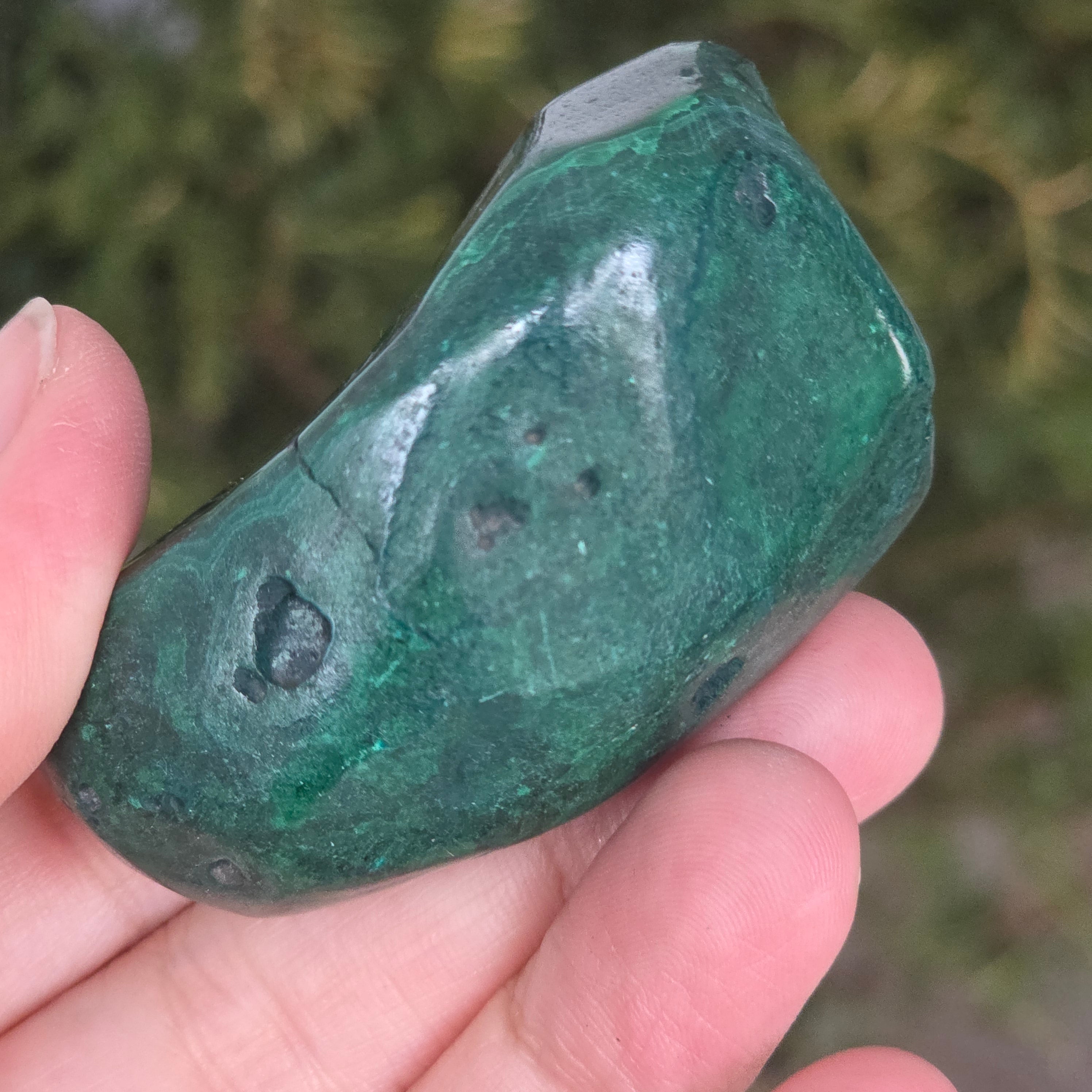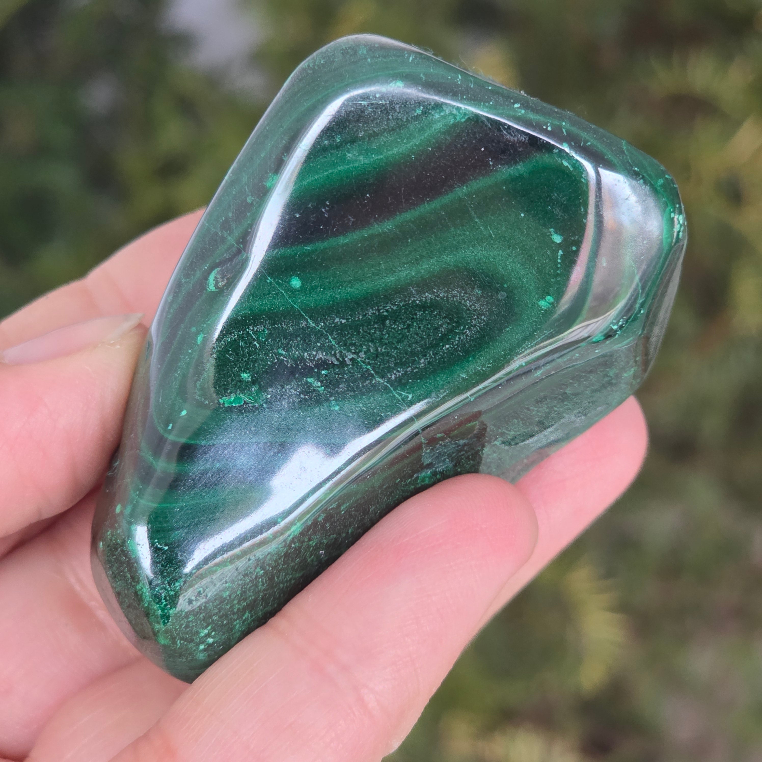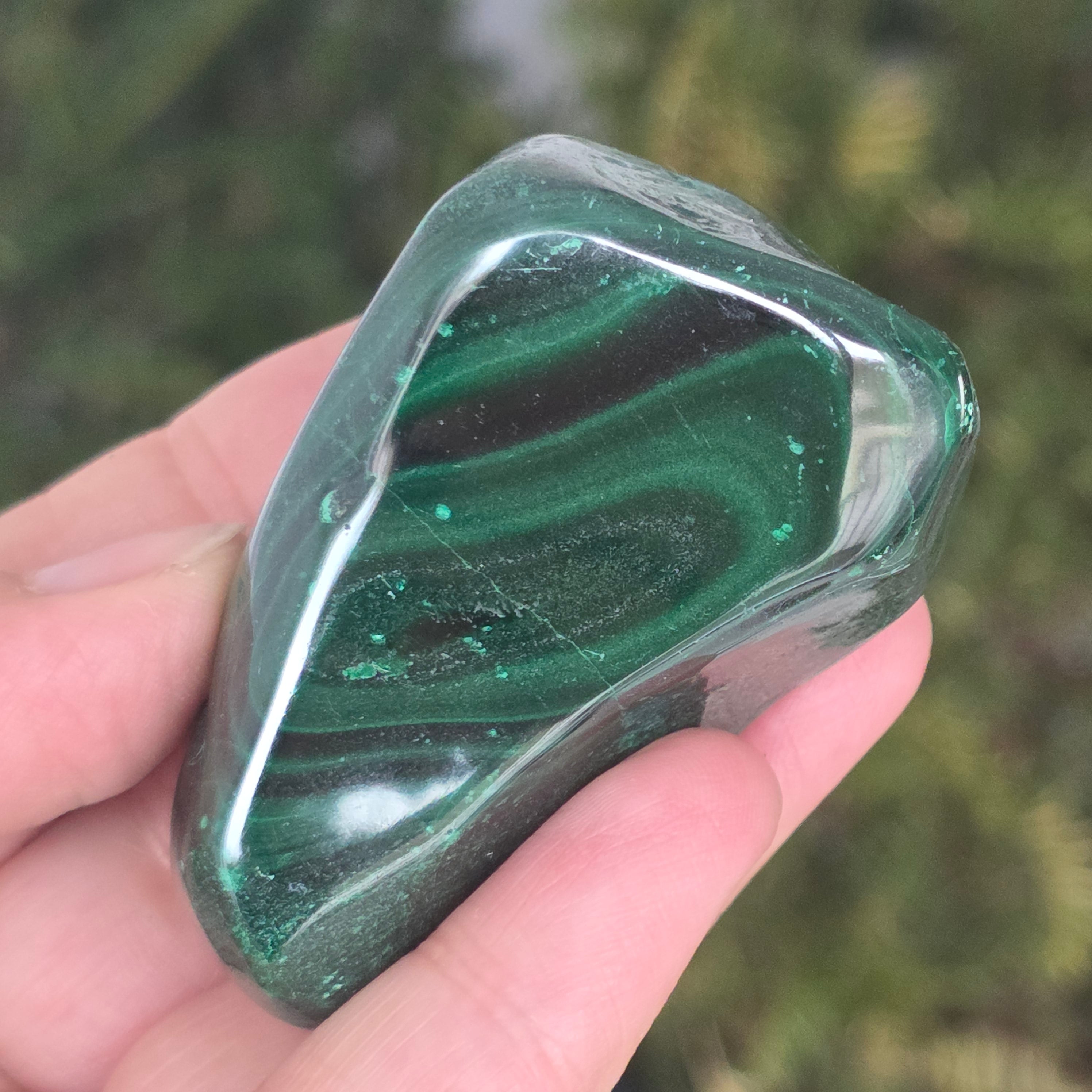 Малахитът е полускъпоценен камък, особено свързан със сърдечната чакра, позволявайки на енергиите да протичат свободно през тази чакра. Малахитът може да помогне за излекуване на емоционална травма и постигане на емоционален баланс.
