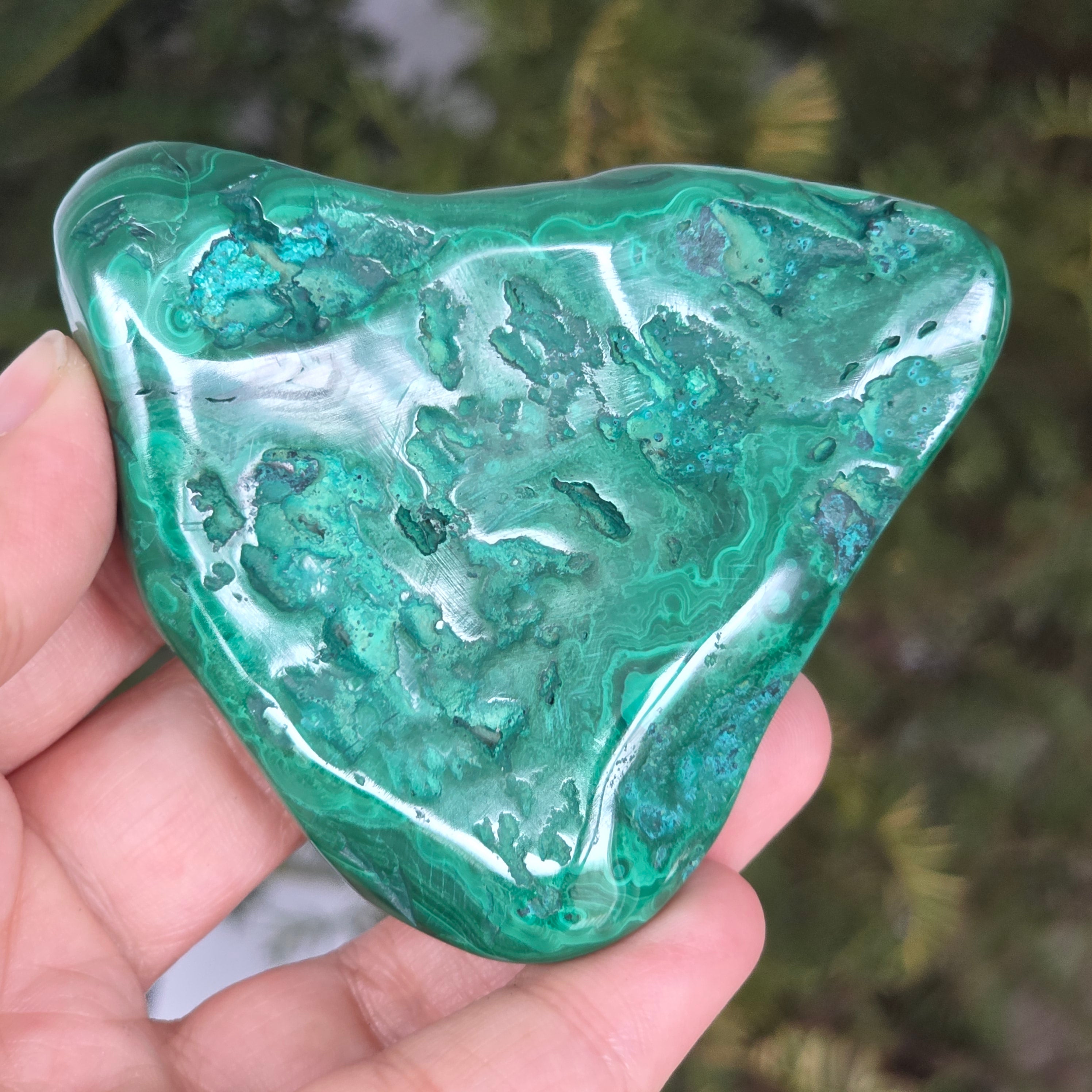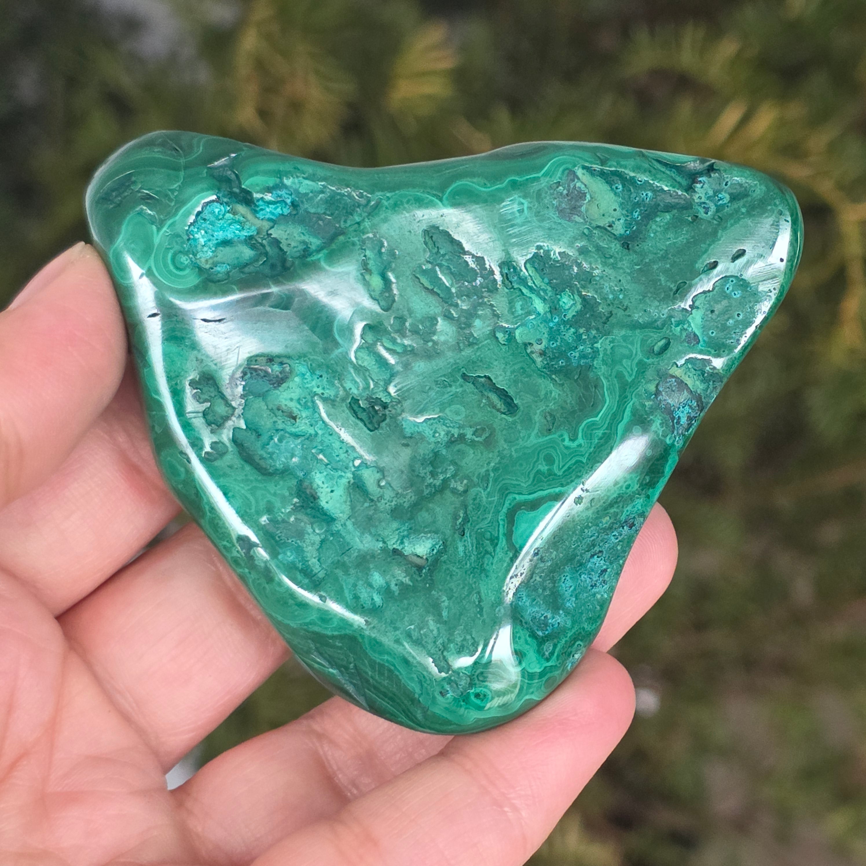 Малахитът е полускъпоценен камък, особено свързан със сърдечната чакра, позволявайки на енергиите да протичат свободно през тази чакра. Малахитът може да помогне за излекуване на емоционална травма и постигане на емоционален баланс.