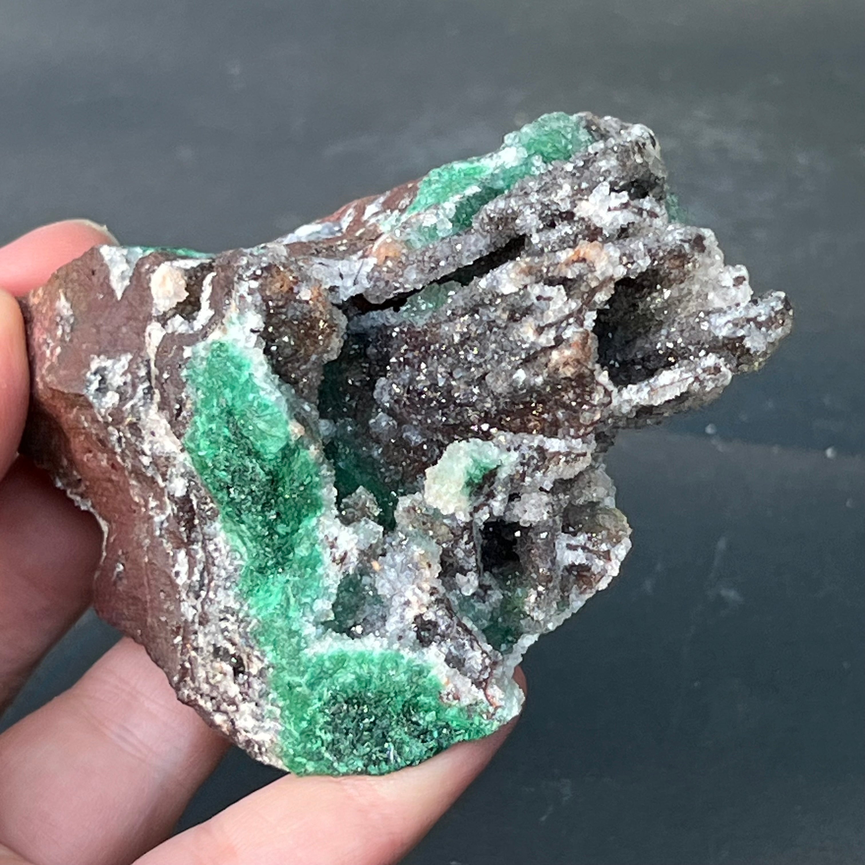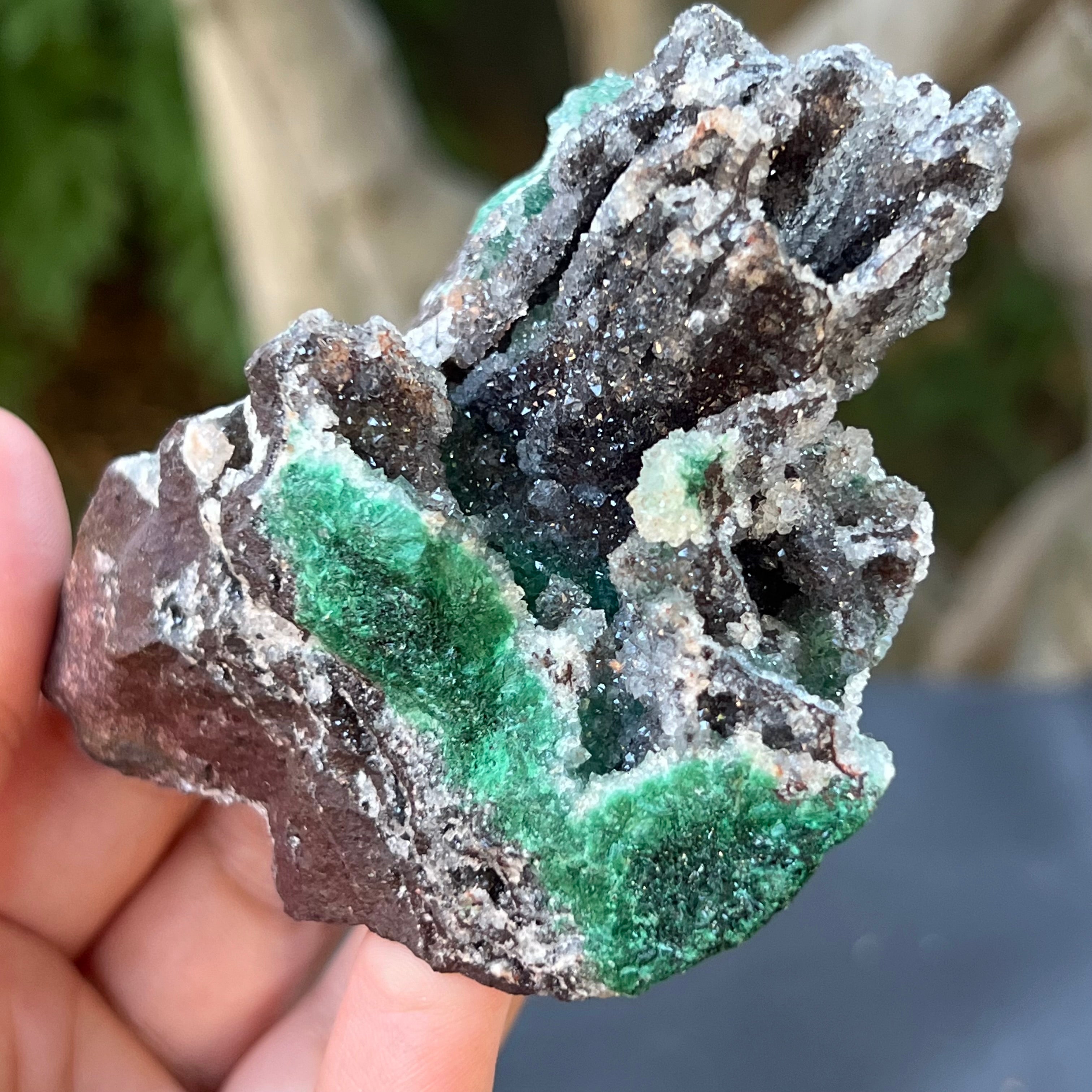 Малахит в кварцова матрица, мед от Конго модел 1, размер: 10*9*3,5 см