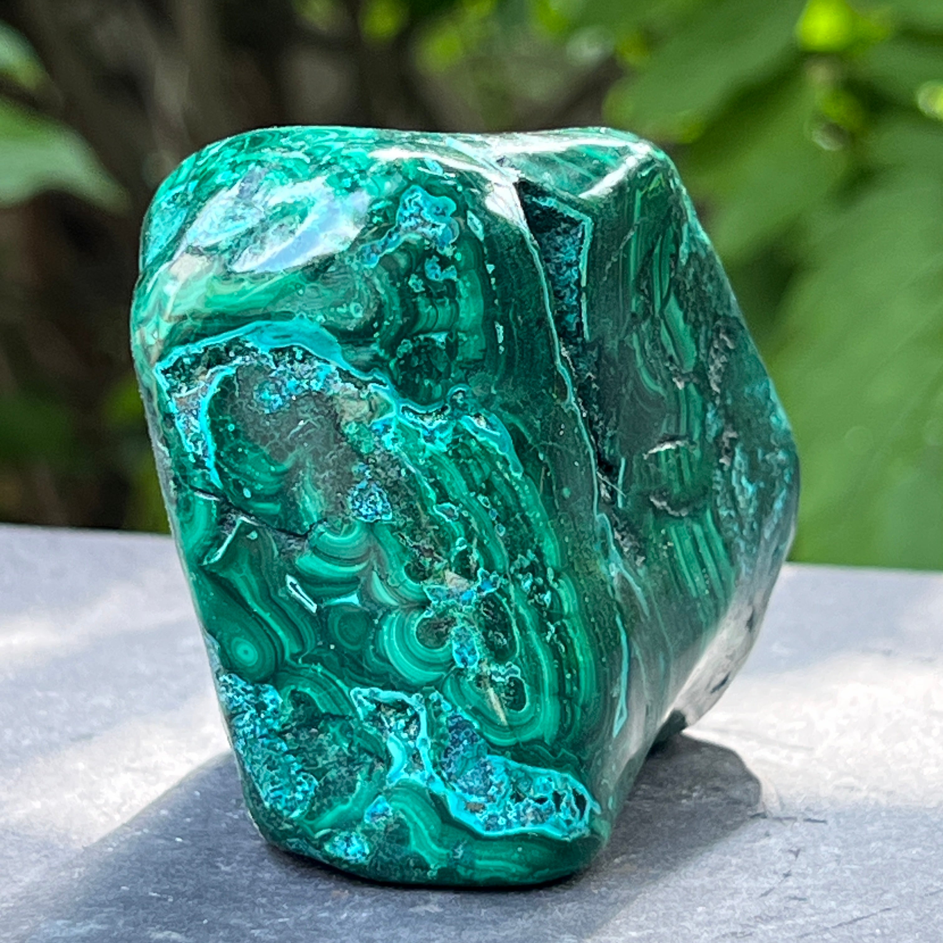 Малахитът е полускъпоценен камък, особено свързан със сърдечната чакра, позволявайки на енергиите да протичат свободно през тази чакра. Малахитът може да помогне за излекуване на емоционална травма и постигане на емоционален баланс.