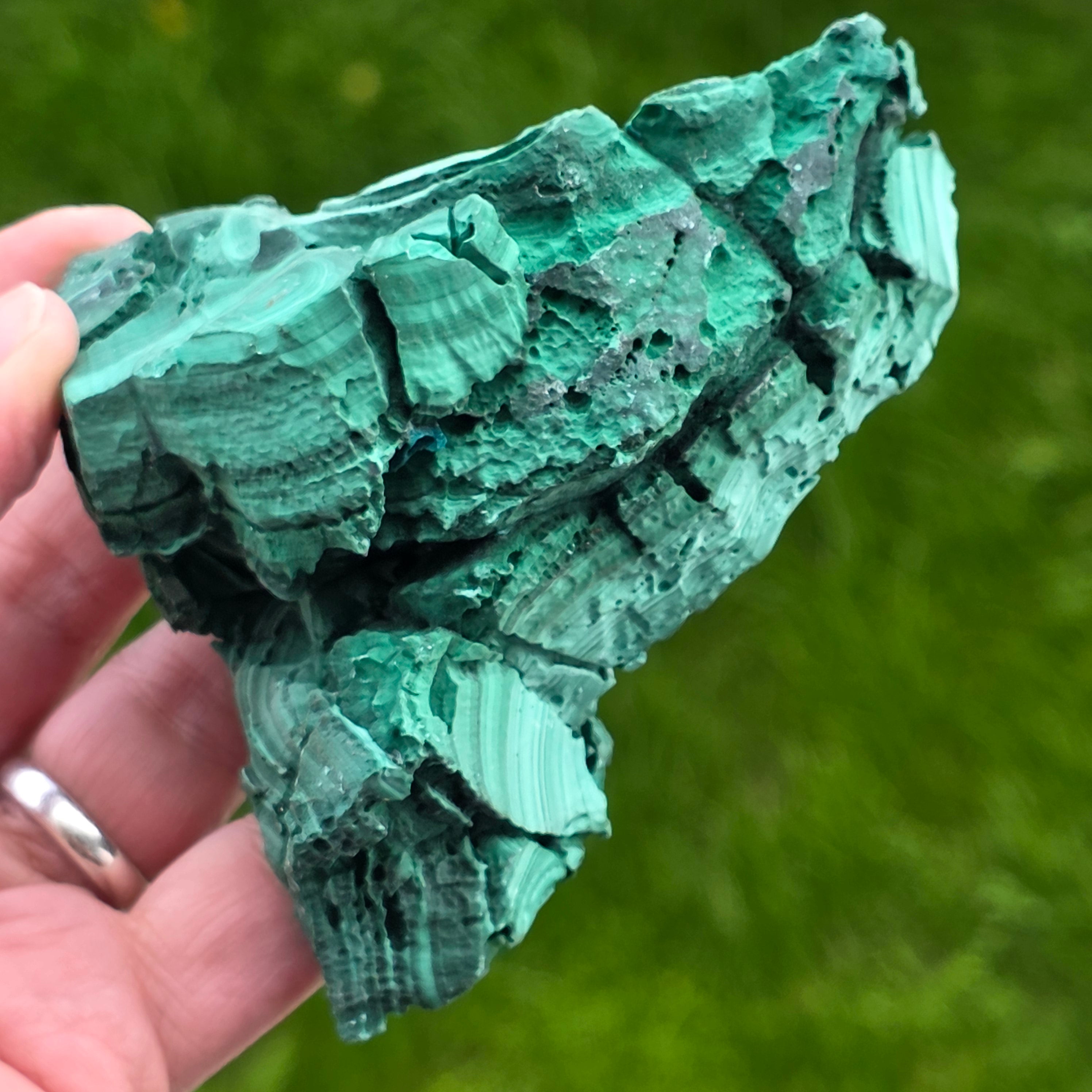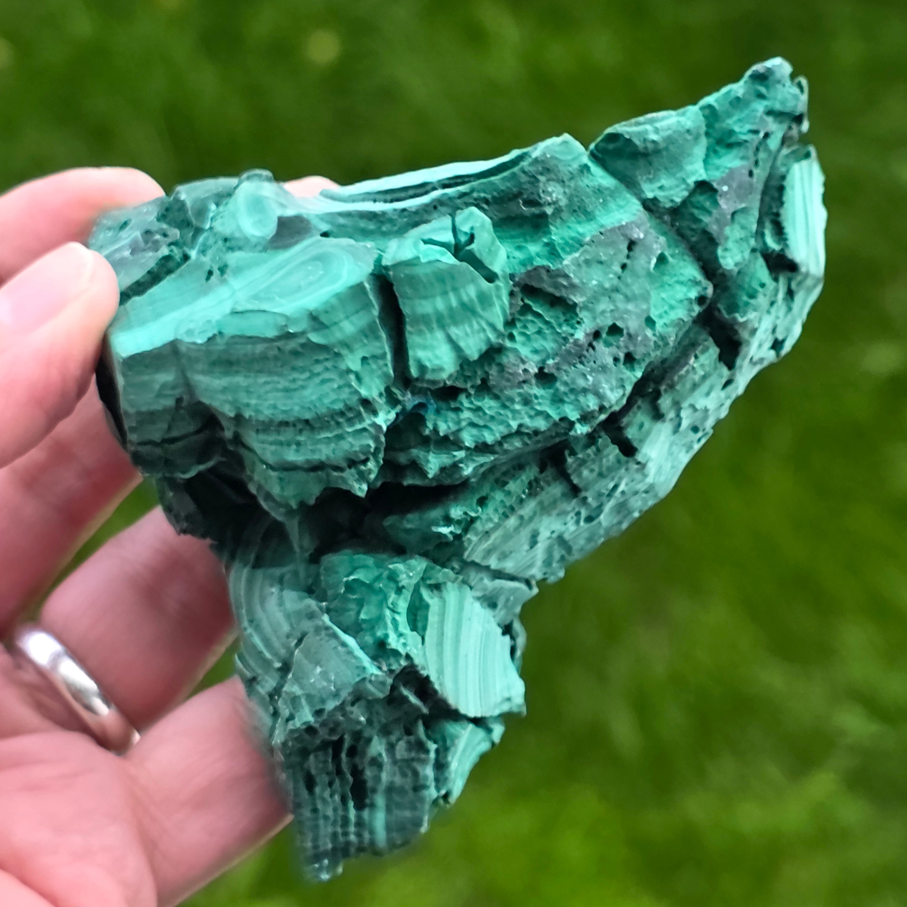 Малахитът е полускъпоценен камък, особено свързан със сърдечната чакра, позволявайки на енергиите да протичат свободно през тази чакра. Малахитът може да помогне за излекуване на емоционална травма и постигане на емоционален баланс.