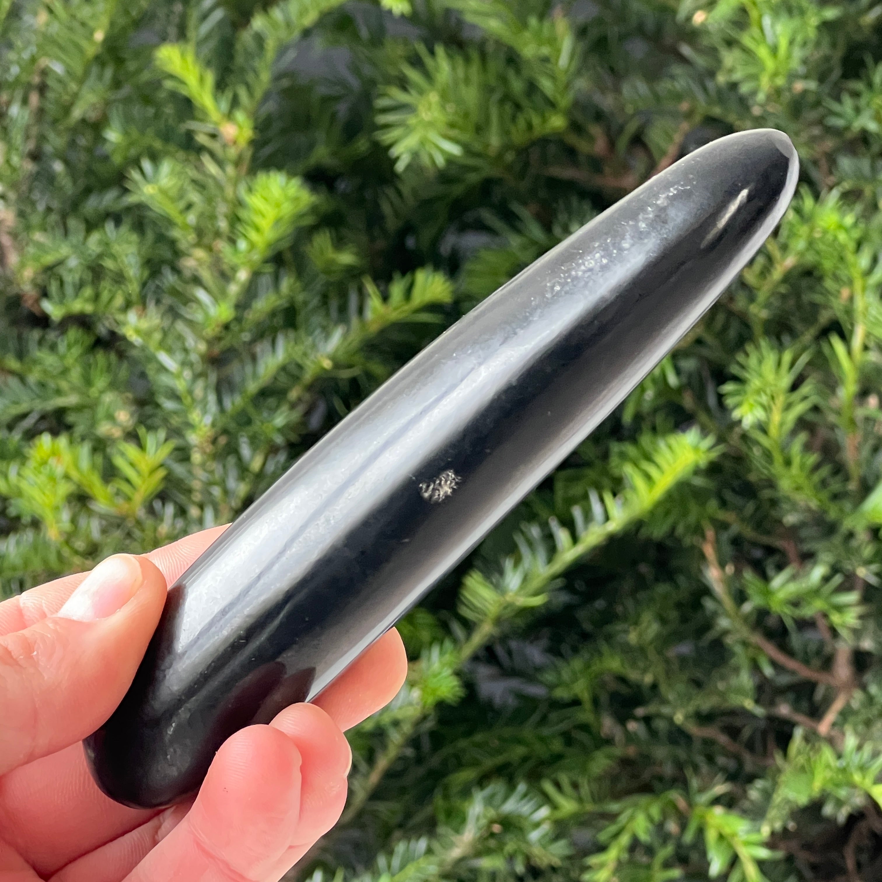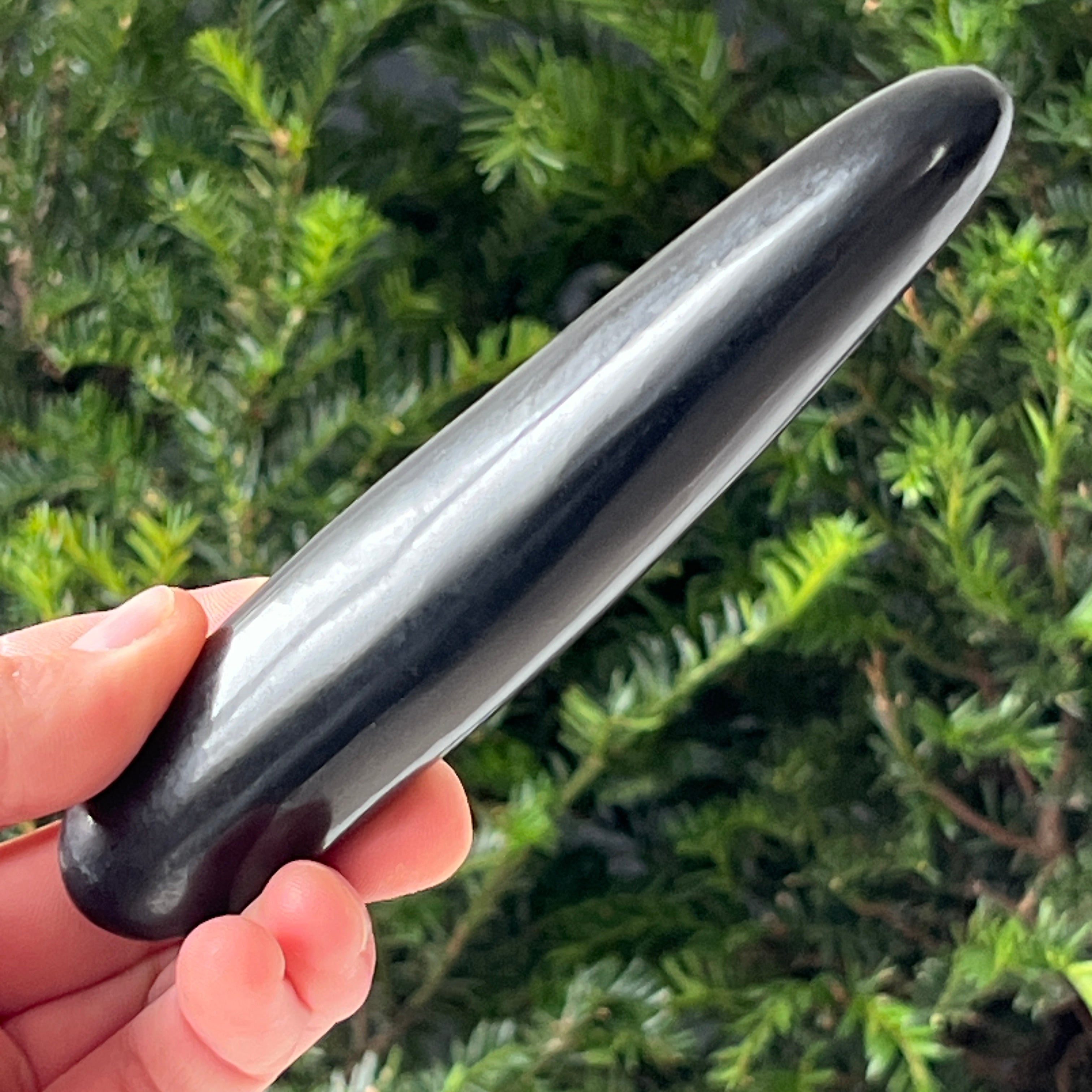 Тази масажна пръчка е изработена от висококачествен базалт, вулканична скала, ценена заради свойствата си да задържа топлината и гладката си текстура. Енергията на базалта подобрява общото изживяване по време на масаж.