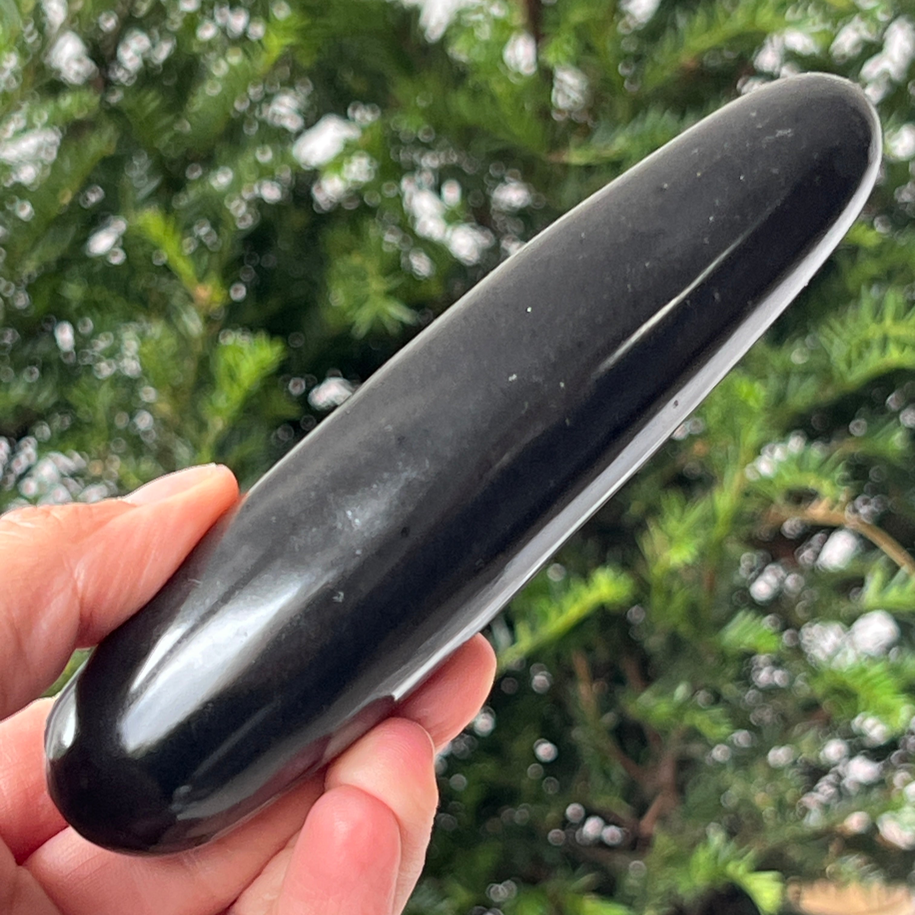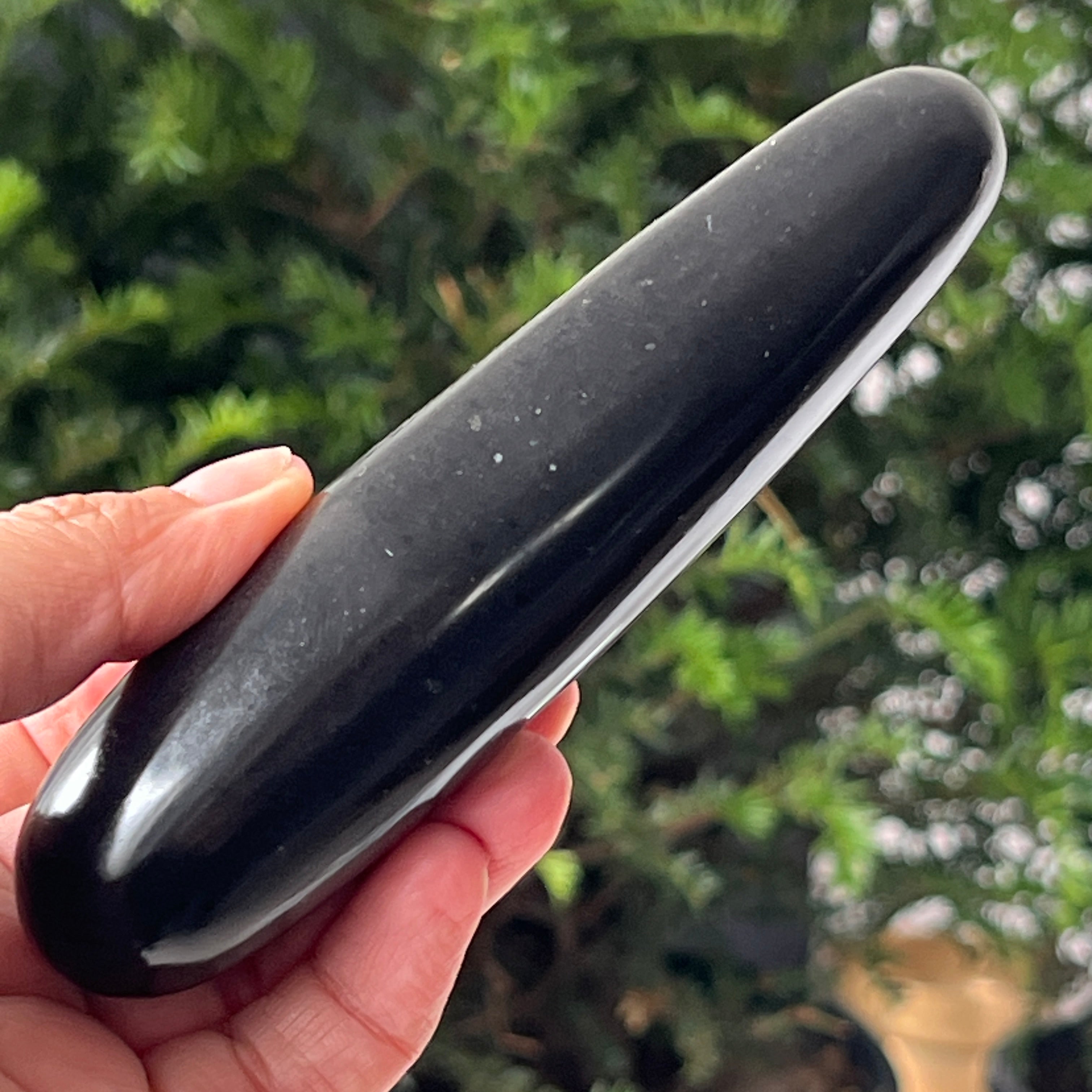 Тази масажна пръчка е изработена от висококачествен базалт, вулканична скала, ценена за способността си да задържа топлината и за гладката си текстура. Естествената енергия на базалта подобрява общото изживяване по време на масаж.