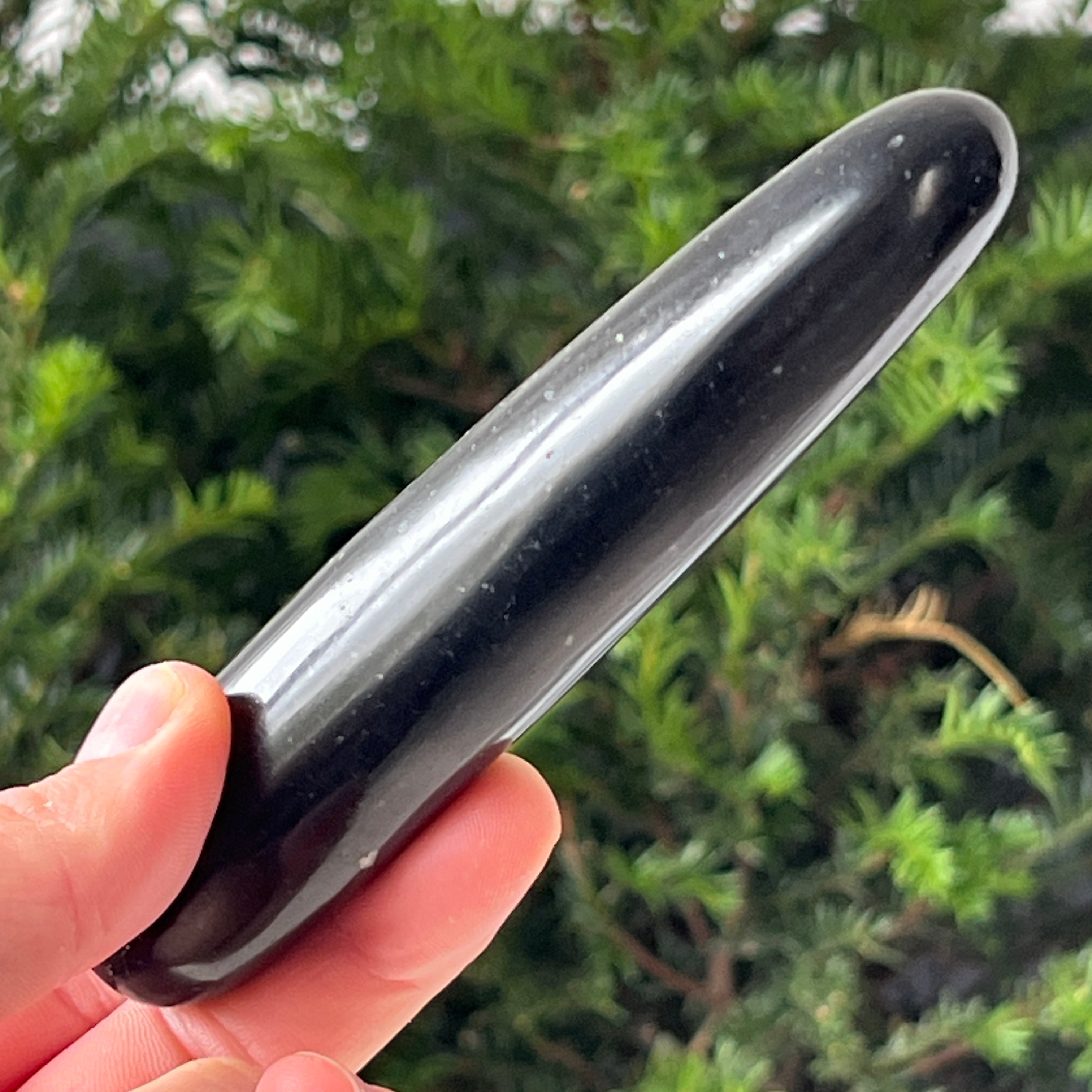 Тази масажна пръчка е изработена от висококачествен базалт, вулканична скала, ценена заради способността си да задържа топлината и за гладката си текстура. Енергията на базалта подобрява общото изживяване по време на масаж.