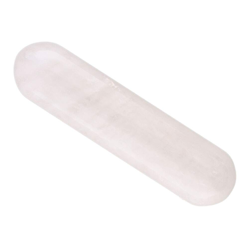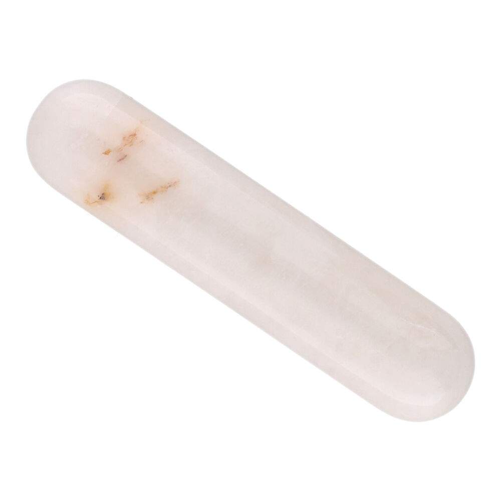 Масажната пръчка от млечен кварц е деликатен инструмент с кадифено бяло, което излъчва чистота и спокойствие.