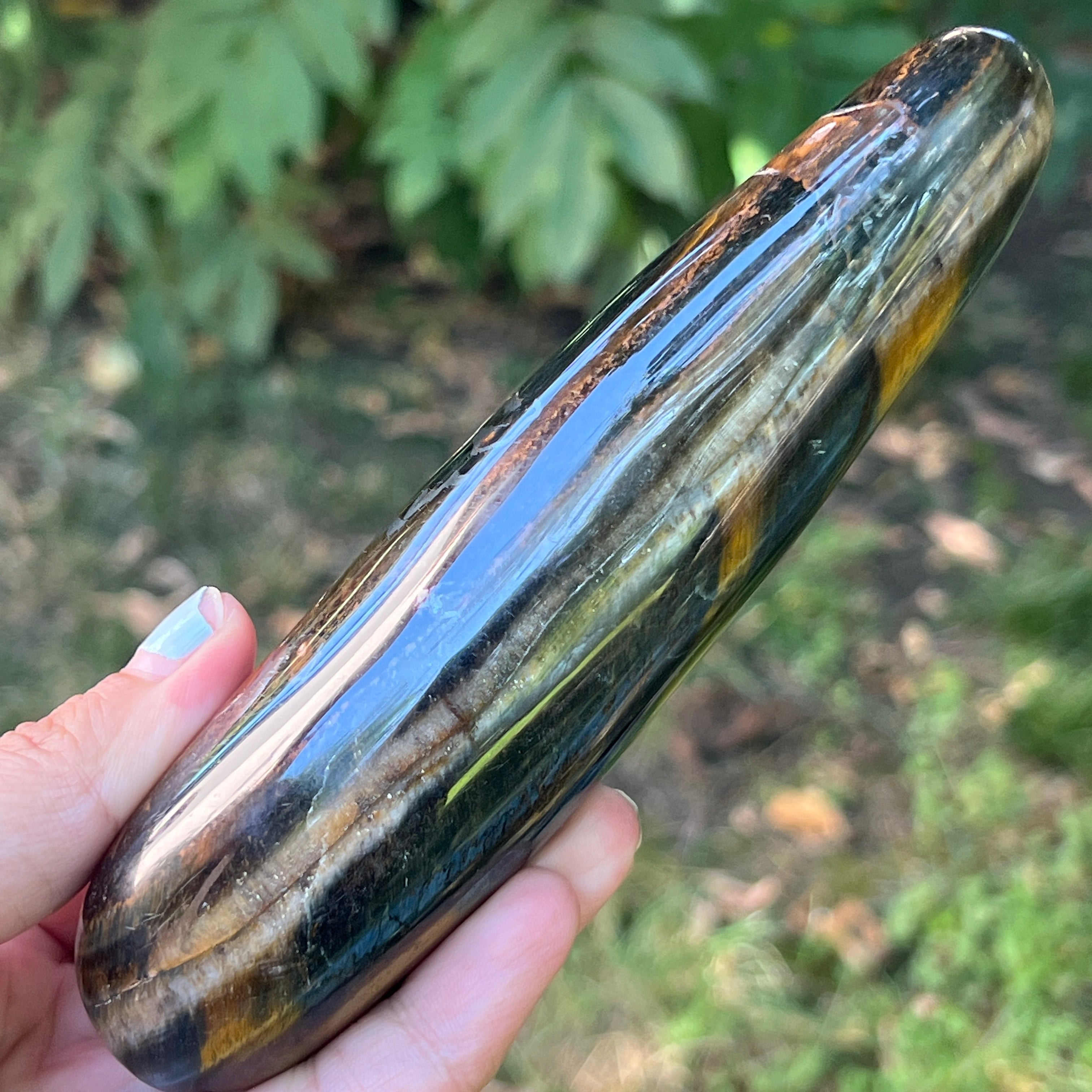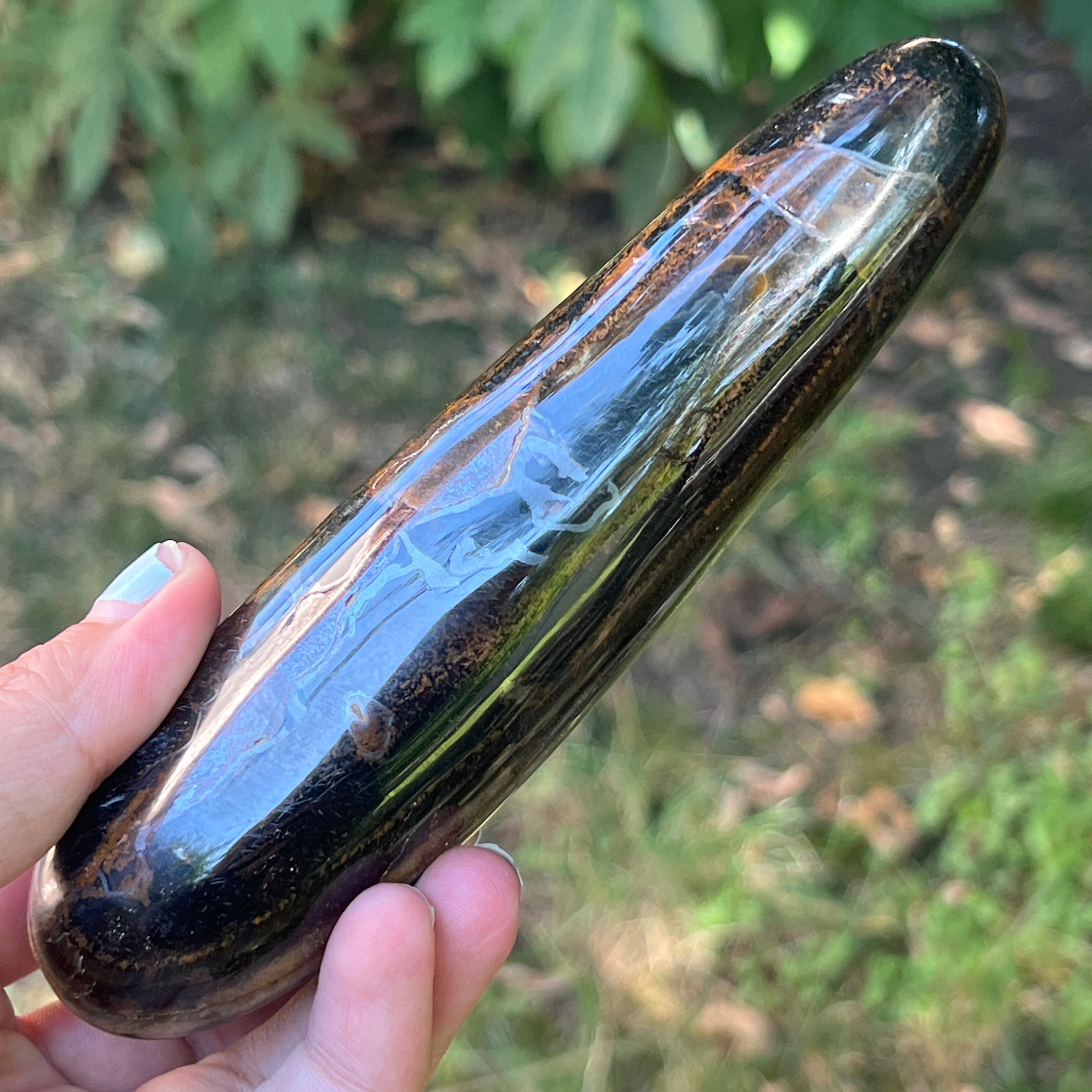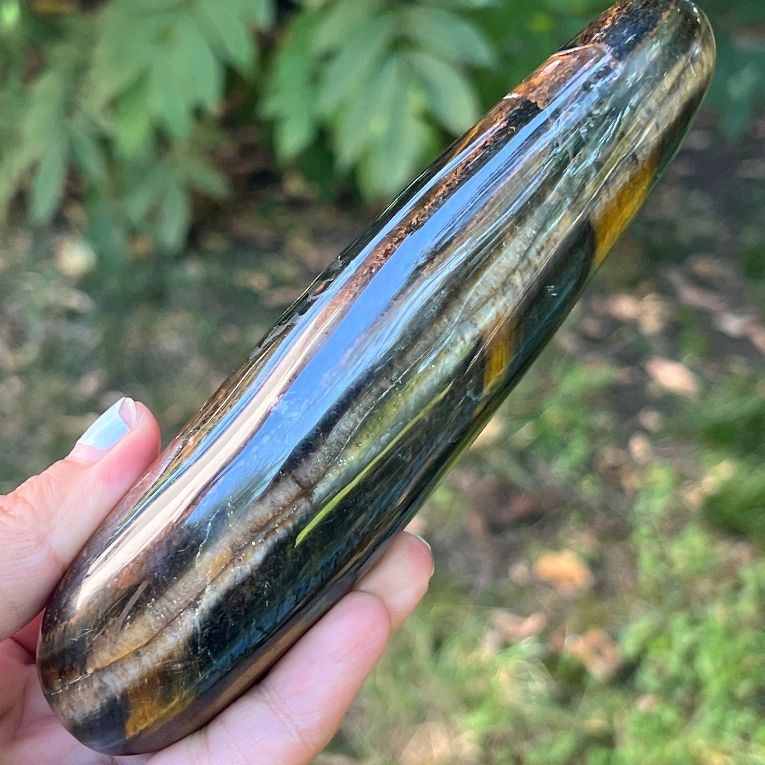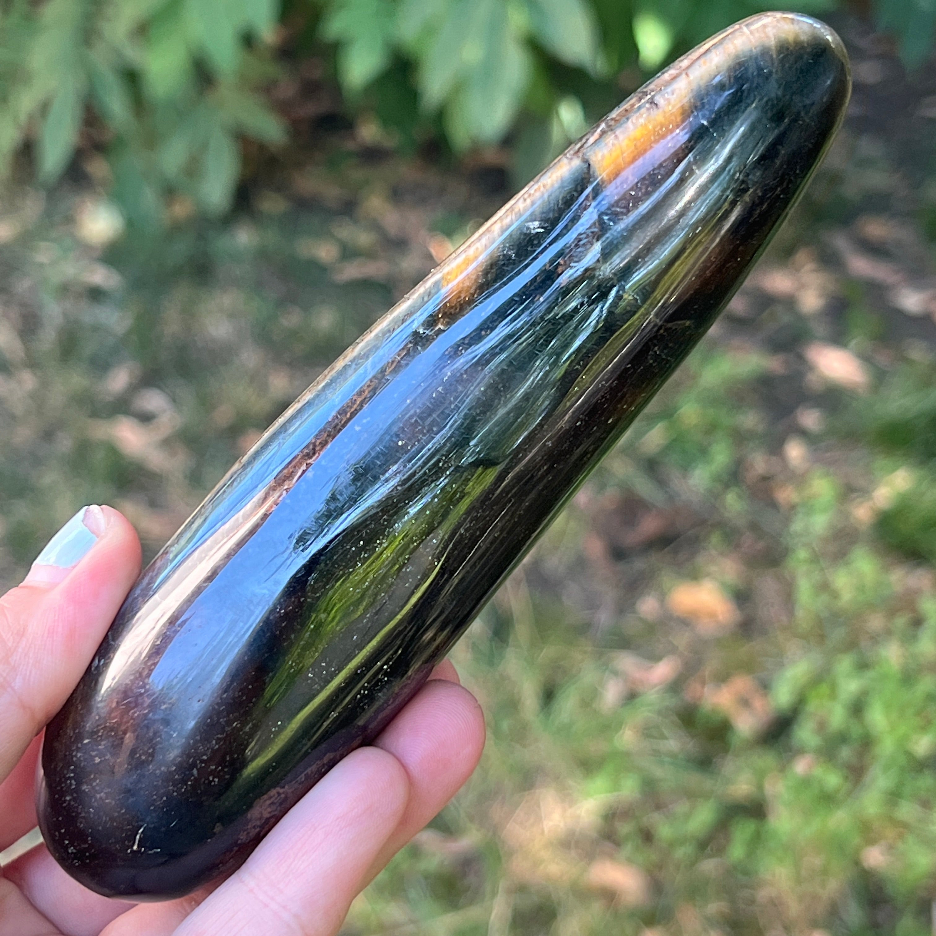 Тази масажна пръчица от тигрово око е уникален артикул, изсечен и полиран, за да канализира концентрираната енергия на Земята чрез ергономична форма, идеална за лечебни ритуали, енергиен масаж или дълбока релаксация.